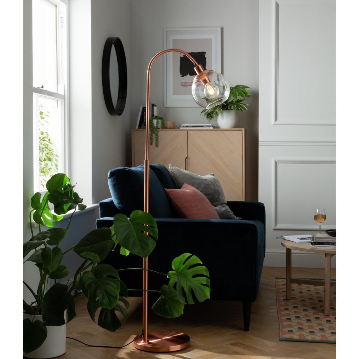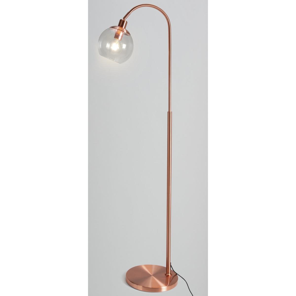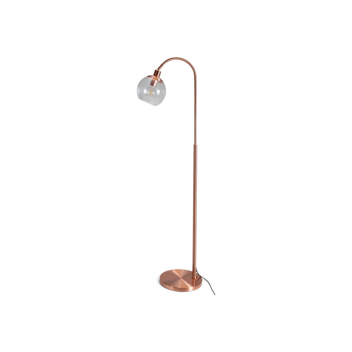 Go for a copper glow. Our floor lamp in rose gold and glass adds a touch of elegance to your lounge or dining room. The handsomely rounded bowl is great for showing off an Edison bulb. Ideal for lighting up a dark corner or reading nook. Style with modern decor for a splash of show-home glamour. Simple but striking.
