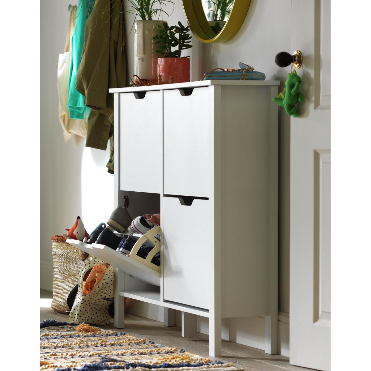 Don't let shoes walk all over you. Get those piles of shoes in your entrance way under control with our clever Compton Shoe Cab. From the outside it looks like modern, white storage unit, but pull down the recessed handles and inside is a genius cubby for shoes of all sizes. The ultimate decluttering piece that also saves you valuable floor space. Straight out of Compton. Pair this shoe cab with other members of the Compton Collection, all functional, stylish and ideal for busy households in need of organisation.