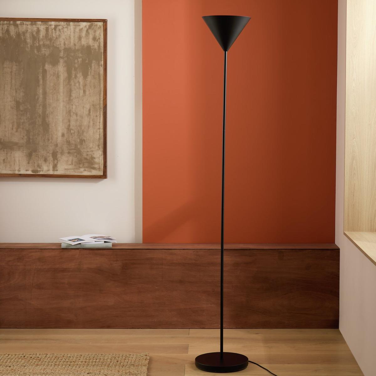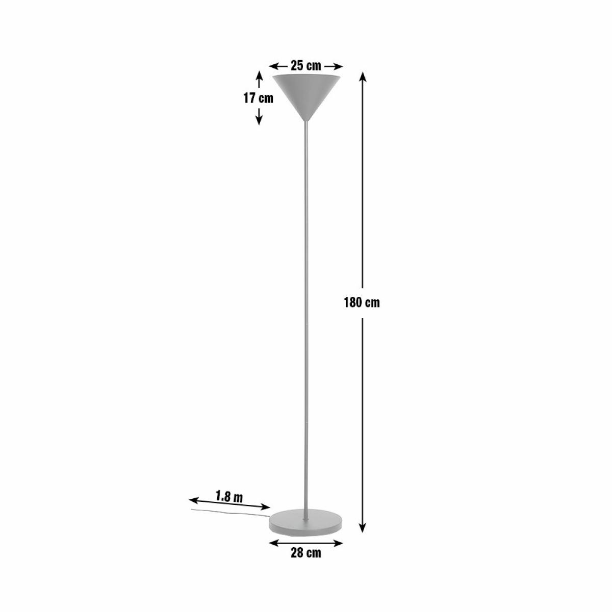 A contemporary alternative to traditional floor lamp designs, this black steel cone uplighter throws out a warm glow. A good-looking and easy way to cosy up dark corners or illuminate wider areas for a touch of mood-making drama. Dimensions: Size H180, W28, Diameter 28cm. Diameter of base 28cm. Shade size H17, D 25cm. Cord length 1.8m. Bulb Information: Bulb required 1 x globe E27 edison screw LED (not included). 10 watts. LED bulb only. General Information: Shade material: steel. Base material: steel. In-line switch. IP 20. Self-assembly. Product is mains powered plug in. This lighting product is a class 2 fitting. Weight 5kg. Manufacturer's 1 year guarantee.