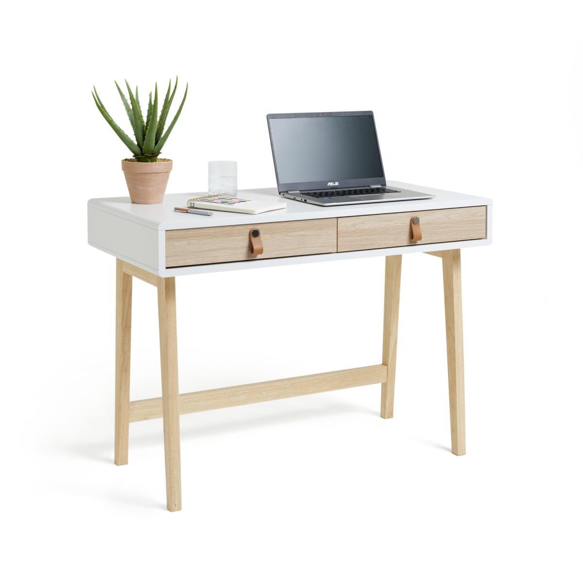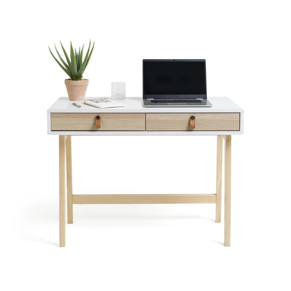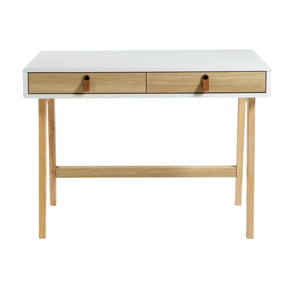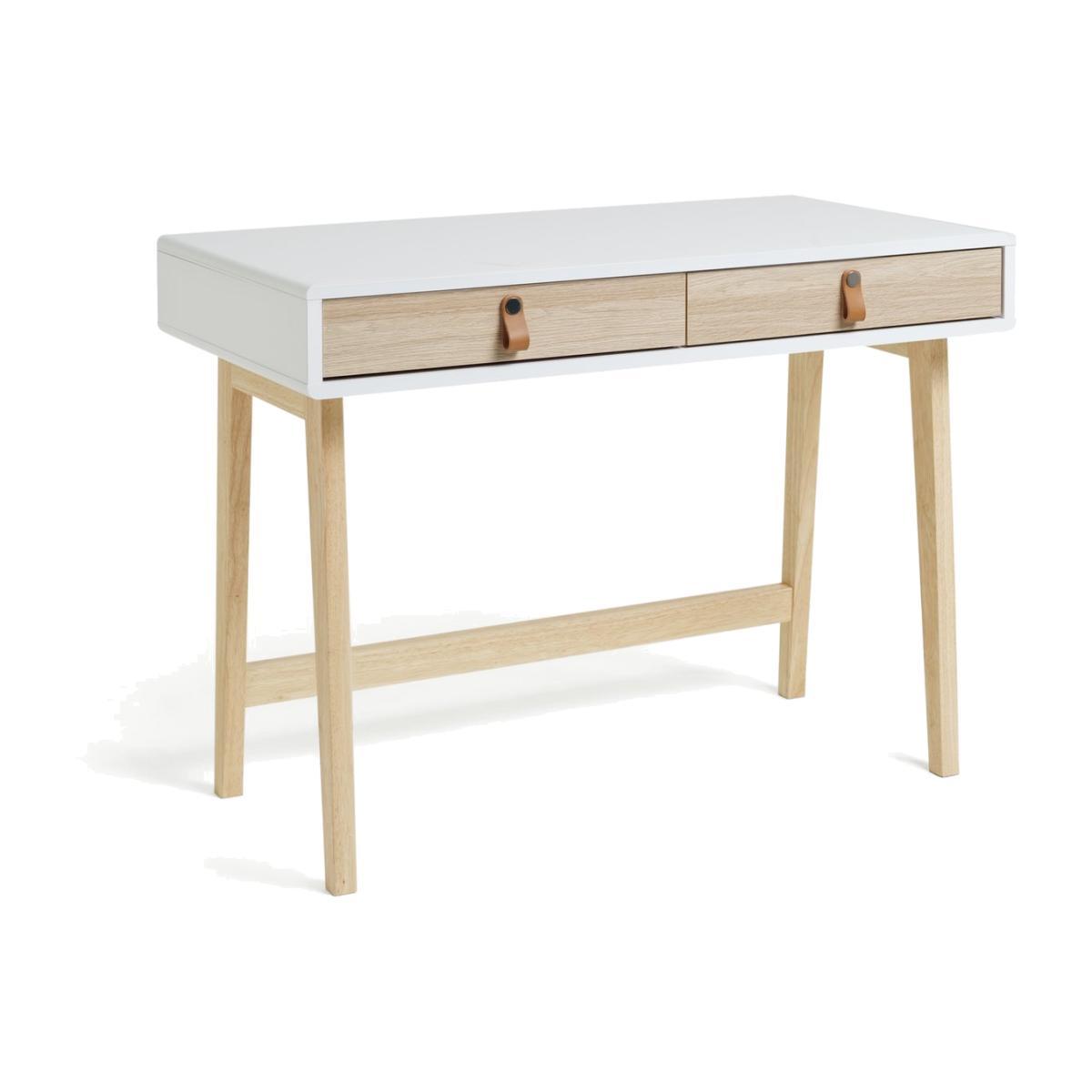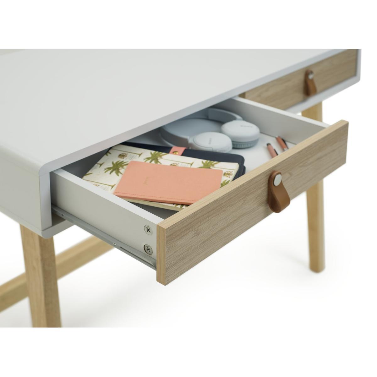 Scandi-fy your home office with our Copenhagen desk. With its slender, modern frame and two-tone oak effect and white finish it hits all the marks for cool, Nordic design. Real leather handles make it bang on trend for this season's natural look. 2 generous drawers keep stationery, chargers and all your other essentials neatly tucked away for a clean, organised workspace.