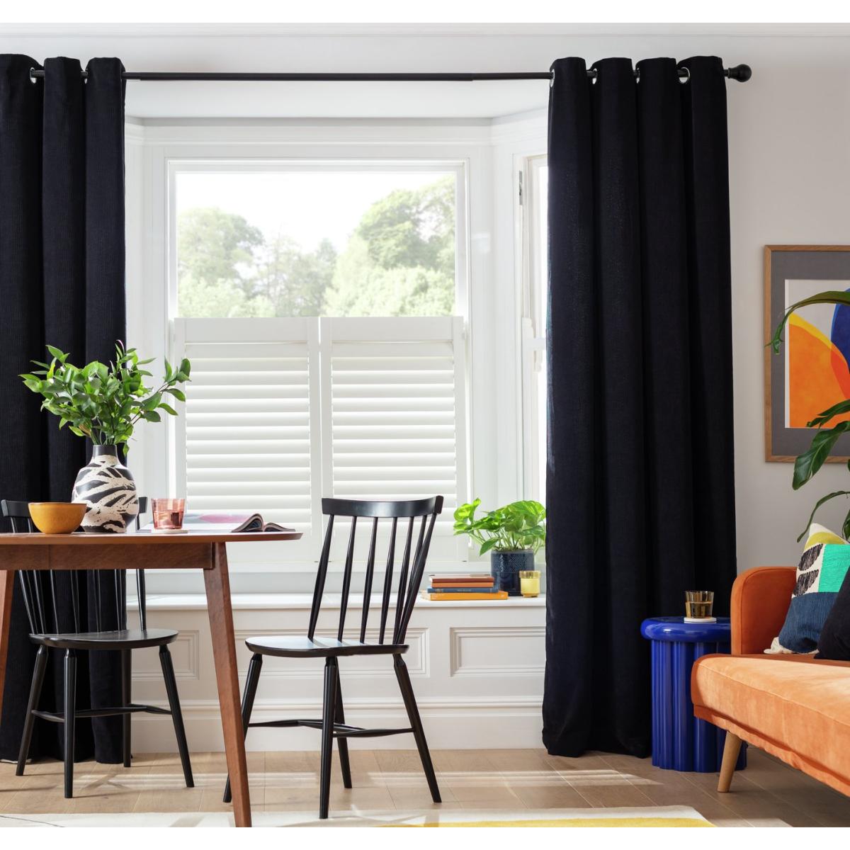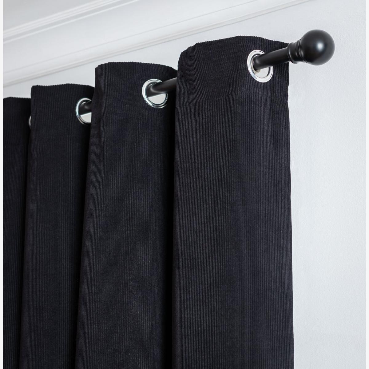 Cool classic comeback. With its versatile, laidback style, corduroy is once again on-trend. And these fully lined black corduroy curtains have an in-vogue vintage feel. Their thick ribbed texture muffles sound, stops draughts and provides complete privacy. Great for movie marathons or Sunday snoozes. No wonder they're in demand. Adding texture to your space, Cord is one of this season's must-have styles. Why not grab the cushions to match? Black Stripes Design. Silver Iron Eyelets. Features Fully lined. Made from 90% polyester and 10% polyamide. Lined. Lining made from 100% polyester. Dimensions Size 168cm (66 inches) wide by 229cm (90 inches) drop. Dimensions provided include header tape. Width refers to one curtain panel before hanging. Eyelet diameter: 4cm. General information Contains one pair of curtains. Suitable for curtain poles. Curtain pole not included. Dry clean only. General Information: We are excited to be welcoming some of our favourite HOME products into the Habitat range. Your product may arrive in Habitat or HOME packaging.