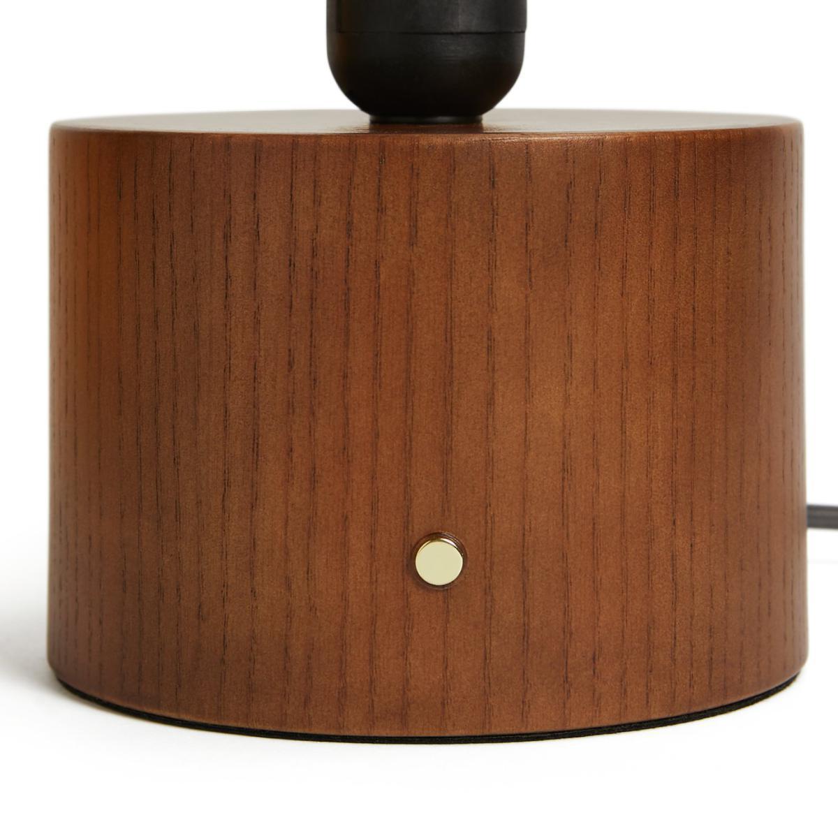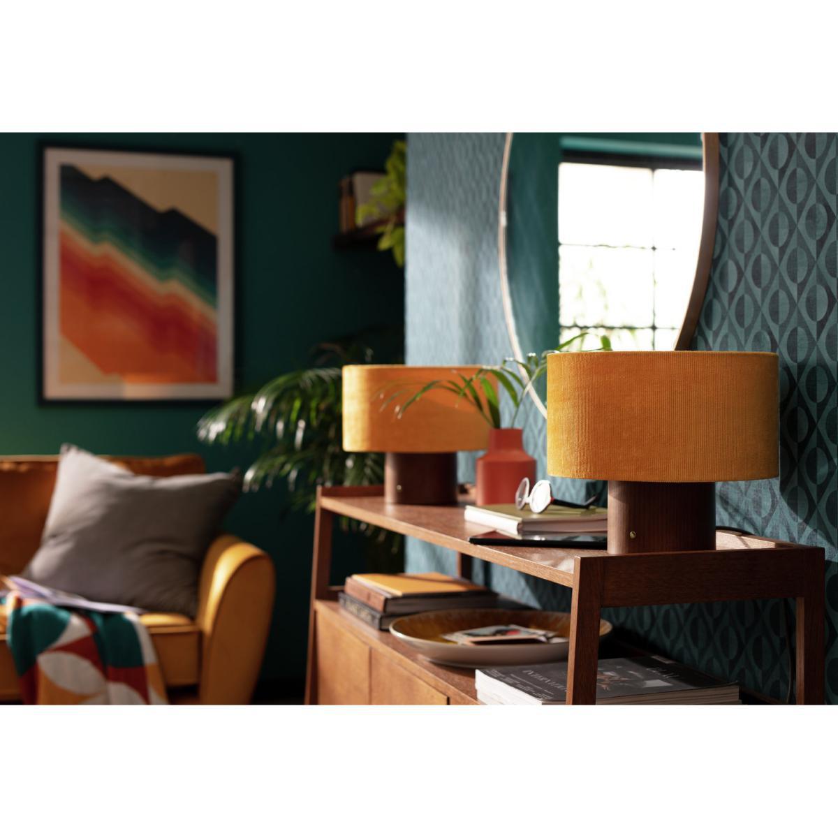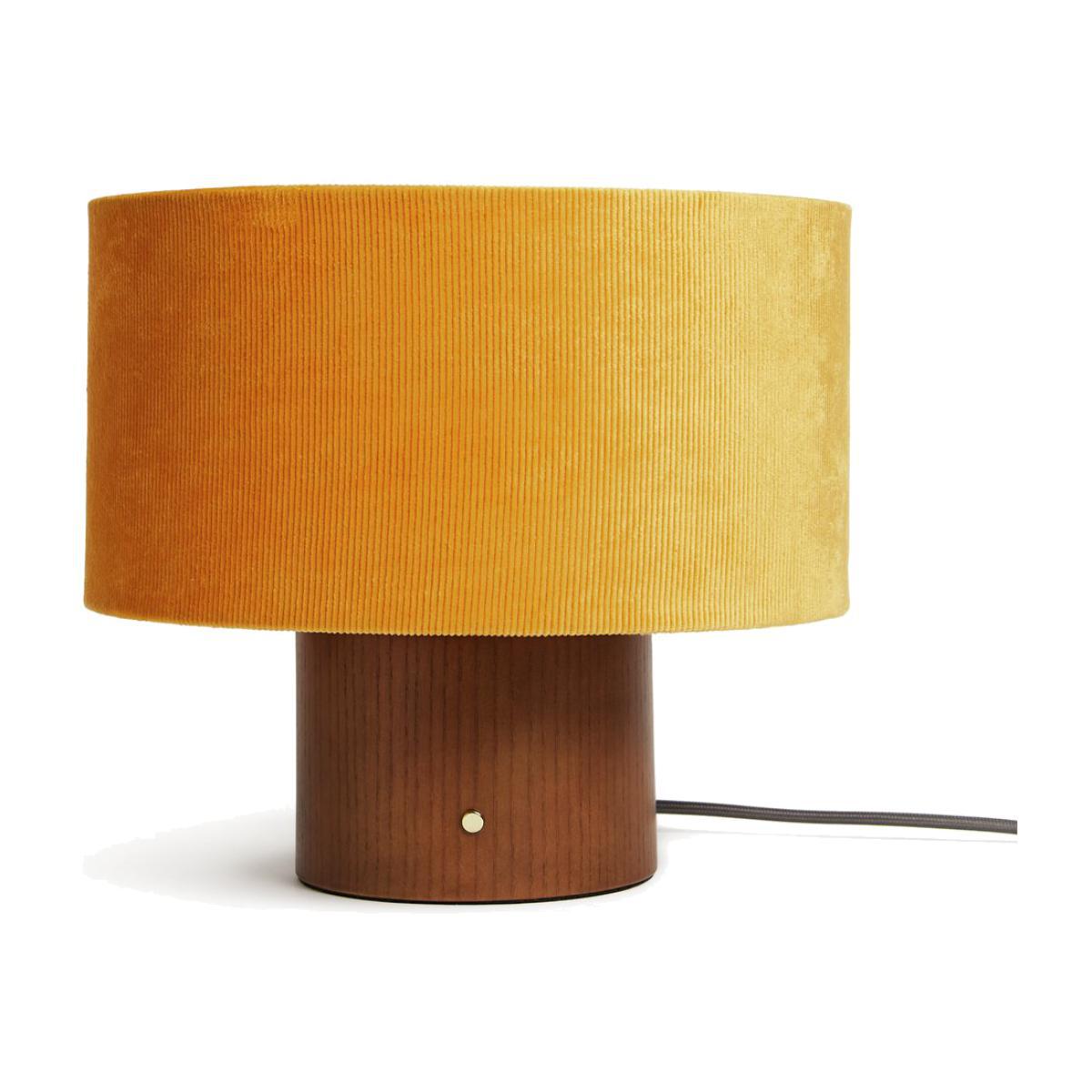 Ready for a light touch of contemporary cosiness? Say hello to our round, wooden table lamp. A rich walnut finish and mustard corduroy shade gives it a naturally nostalgic feel, yet it's conveniently modern. Just tap its ribbed base for an instant warm glow. Pop it in your lounge or bedroom and watch it shine. Upscale your space with more of our modern Mid-Century pieces. Setting the mood? Get the lighting just right with our collection of innovative designs. Dimensions: Overall size H26, Diameter 30cm. Shade size H15.5, D30cm. Diameter of base 14cm. Cord length 1.8m. Bulb Information: Bulbs required 1 x classic E27 edison screw eco halogen bulb(s) (not included). Recommended maximum wattage: 60 watts. General Information: Touch sensor switch - on/off. IP rating 20 - not suitable for bathroom use. Minimal assembly. Product is mains powered. Manufacturer's 1 year guarantee.
