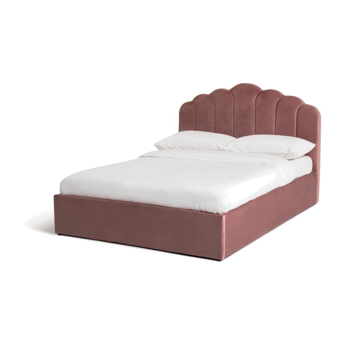 Cosy, chic and curvaceous. Our Corin ottoman bed frame is a glamorous way to make the most of your space. A beauty in dusky pink, its fan-shaped, upholstered headboard is so on-trend. Pair with pastel blinds and gold accessories for a high fashion look. Now for the clever bit. Thanks to a smart gas-assisted mechanism, it's easy to lift the base and tuck away extra bedding, towels or seasonal clothes. Plus, sprung wooden slats mean a great night's sleep, too. Sweet dreams. Need luxurious velvet and soft, silky sheets? Take a look at our selection. Keep things neat and tidy. Find more smart storage in our bedroom furniture collection. Part of the Corin collection. Upholstered frame. Base with sprung wooden slats. End lift. Ottoman: end opening. Storage capacity: 680 litres. Size W161, L217, H110.5cm. Height to top of siderail 31.5cm. 1.5cm clearance between floor and underside of bed. Weight 54kg. Maximum user weight 140kg. Self-assembly - 2 people recommended. Package Dimensions: Package 1 dimensions: H10, W150, D113cm. Package 1 weight: 15.5kg. Package 2 dimensions: H19.5, W199.5, D32.5cm. Package 2 weight: 26.5kg. Package 3 dimensions: H7, W194, D70cm. Package 3 weight: 18kg. General Information:We are excited to be welcoming some of our favourite HOME products into the Habitat range. Your product may arrive in Habitat or HOME packaging. Manufacturer's 1 year guarantee.