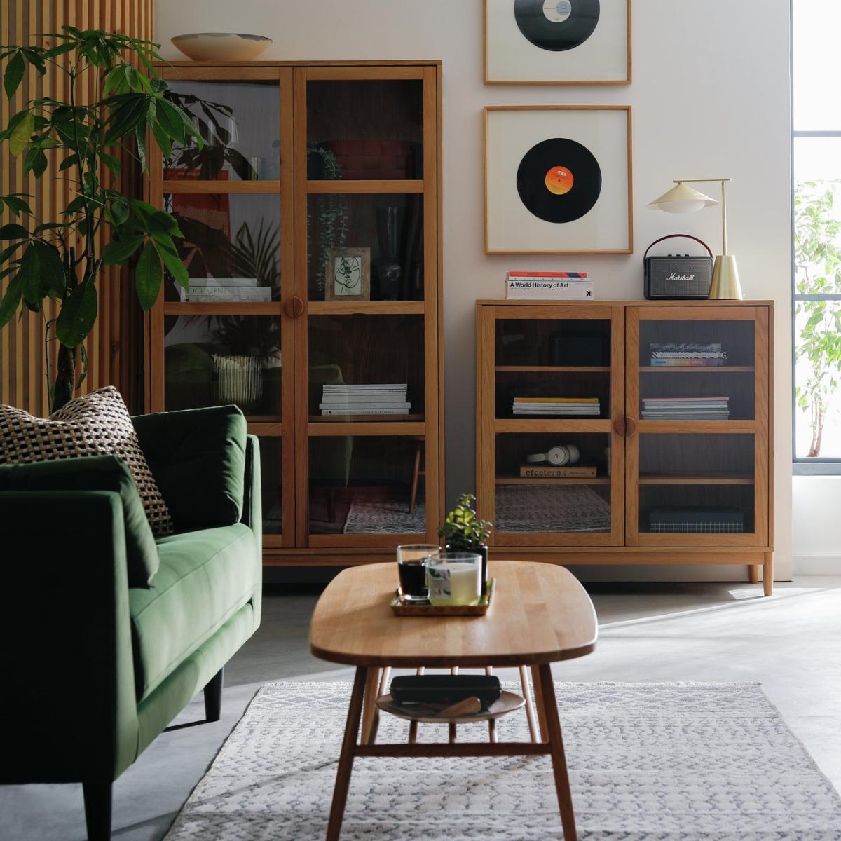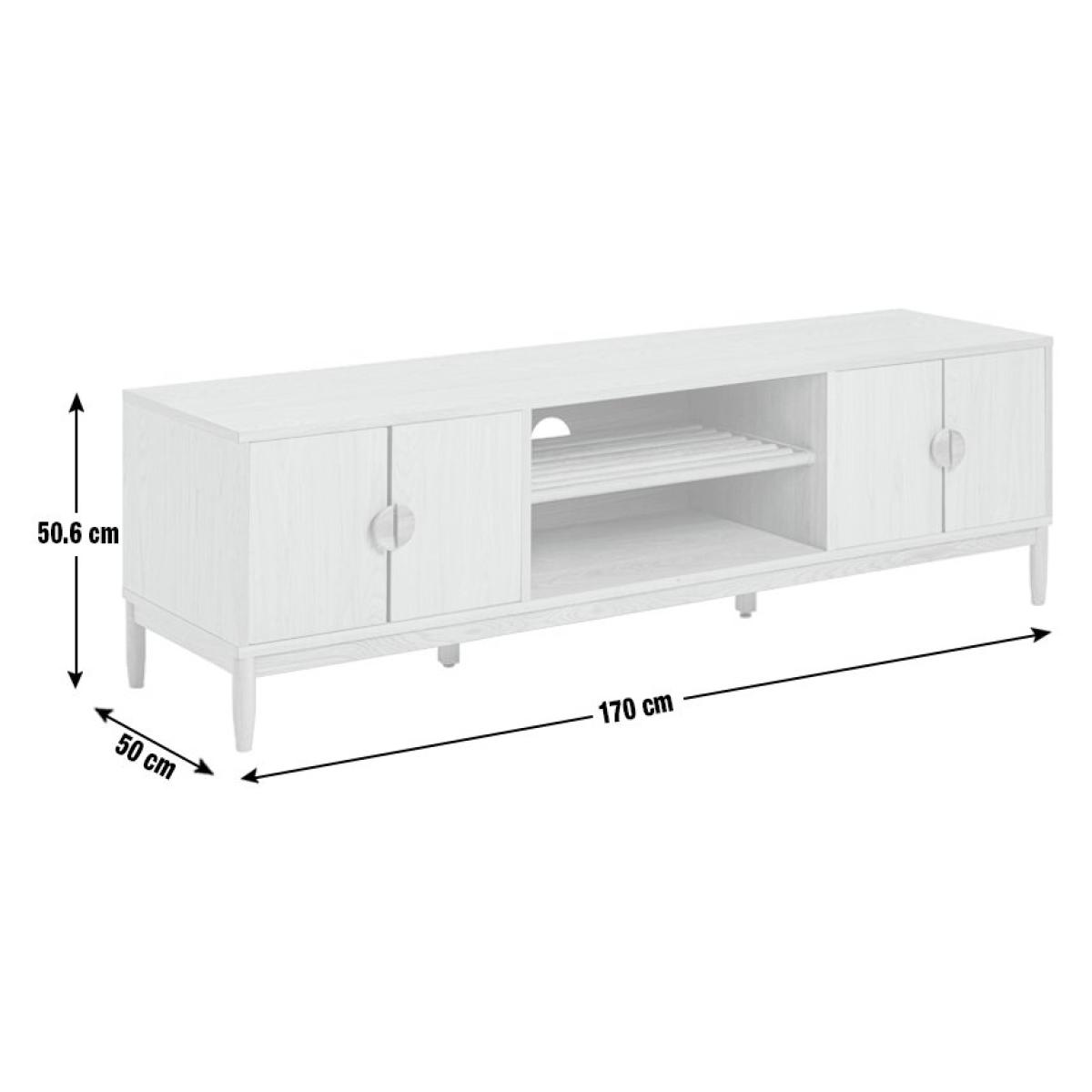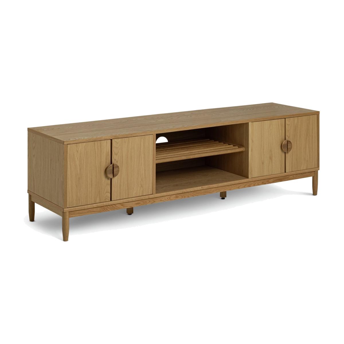 It's showtime. Our Cornelia TV unit provides a smart perch for your latest screen. Finished in a rich oak effect veneer, Cornelia comes complete with hideaway storage space and cable ready cubbies for entertainment tech. Half-moon handles and smooth finish tapered legs give just a hint of vintage. And a rodded entertainment shelf provides passive ventilation. Part of the Cornelia collection. Made from oak and MDF with a painted finish. Size H 50.6, W 170, D 50cm. Weight 38kg. 1 shelf. 4 doors. 4 media storage sections. Largest height of media equipment sections 32cm. Easy cable access. Suitable for screen sizes up to 32in. Maximum weight of TV 50kg. Self-assembly. Package Dimensions: Package 1 dimensions: H25, W85, D56cm. Package 1 weight: 42.5kg. General information: We are excited to be welcoming some of our favourite HOME products into the Habitat range. Your product may arrive in Habitat or HOME packaging.