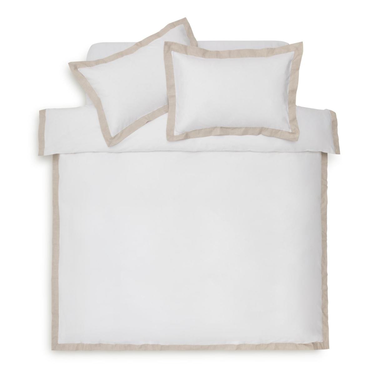 Classically smart duvet set with an elegant edge. There's something about bedlinen with an Oxford border that makes you think of luxury country hotels. Ours is white with a contrasting warm cream edge. Made from 100% cotton percale, this set is softly smooth and designed to last. Loving boutique chic? A textured throw in neutral earthy shades would add a luxe layered look. Finish: percale. 100% cotton, 1006619%. 1006619% , 1006619%, 1006619%. 180 thread count. Set includes 1 duvet cover and 2 pillowcases. Bed size: super king. Length 220cm, Width 260cm. Reversible. Buttons for fastening. Oxford pillowcase (s). Pillow case length 75cm, Width 50cm. Reversible pillowcase (s). Machine washable at 40 C. Suitable for tumble drying.