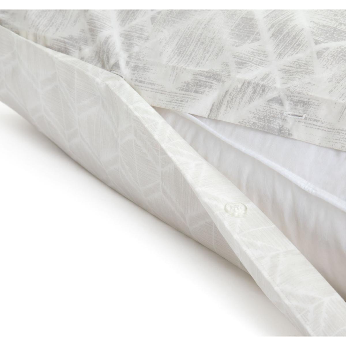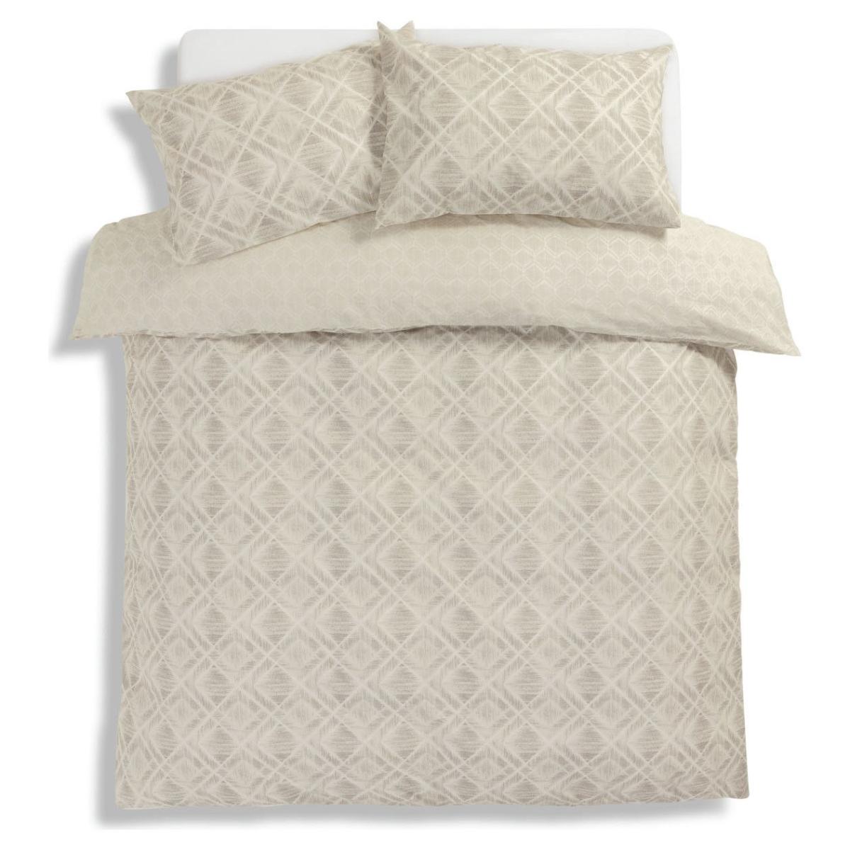 Go glam with our geo print bedding. Subtle and sophisticated, this elegant duvet set will bring a serene style to your space. Made from a 100% cotton, with a soft sheen, the laid-back pallet is ideal for a touch of luxe lounging. Fancy a change? Just flip over for a lighter colour combo. Slip in for a bit of refined relaxation. Match with sumptuous throws and padded cushions with chrome and mirrored accessories for a high-end hotel feel at home. This item carries the STANDARD 100 by OEKO-TEX logo, which means you can be certain that every component has been tested for harmful substances and is therefore harmless to human health. 100% cotton. 200 thread count. Set includes 1 duvet cover and 2 pillowcases. Bed size: double. Length 200cm, Width 200cm. Reversible. Buttons for fastening. Standard pillowcase (s). Pillow case length 75cm, Width 50cm. Reversible pillowcase (s). Machine washable. Suitable for tumble drying.