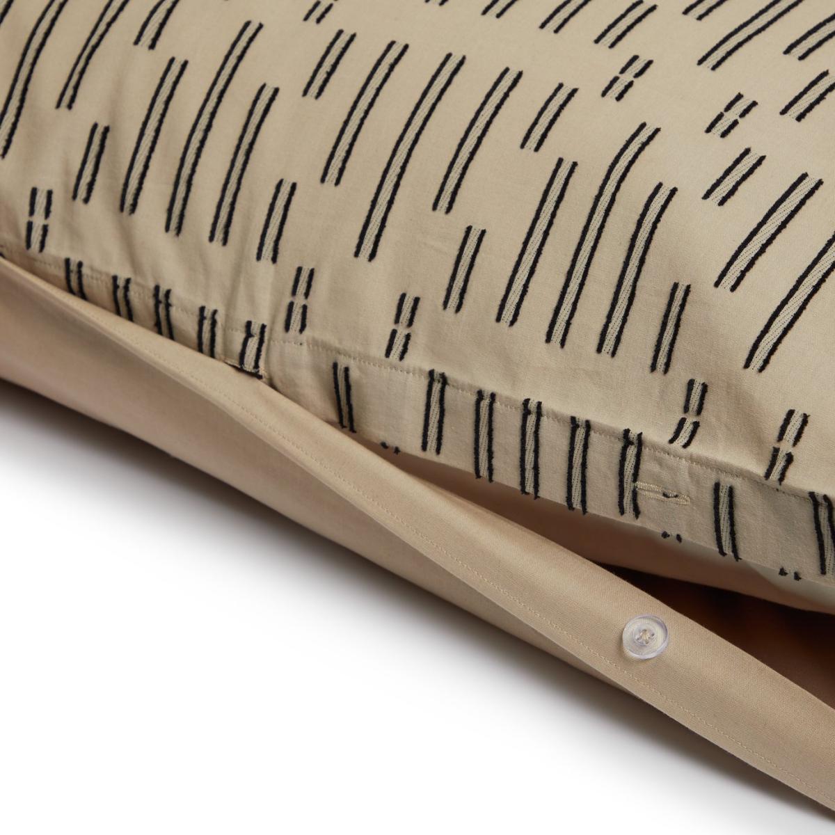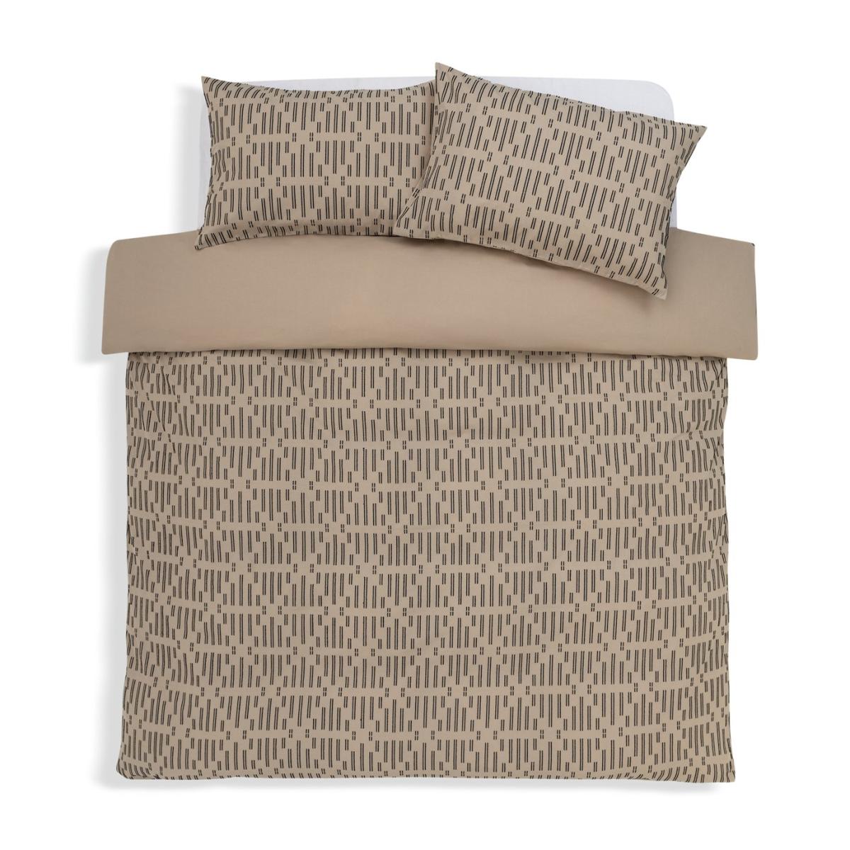 Here's our exclusive scandi-esque clipped stripe duvet set in 100% cotton. We love it. It's even got a plain reverse you can flip over to when you want to dial things down. Now, just add a little ambient lighting, slip in and sleep well. This item carries the STANDARD 100 by OEKO-TEX logo, which means you can be certain that every component has been tested for harmful substances and is therefore harmless to human health. Finish: jaquard. 100% cotton. 150 thread count. Set includes 1 duvet cover and 2 pillowcases. Bed size: double. Length 200cm, Width 200cm. Normal confection edging detail. Buttons for fastening. Standard pillowcase (s). Pillow case length 75cm, Width 50cm. Machine washable. Suitable for tumble drying.
