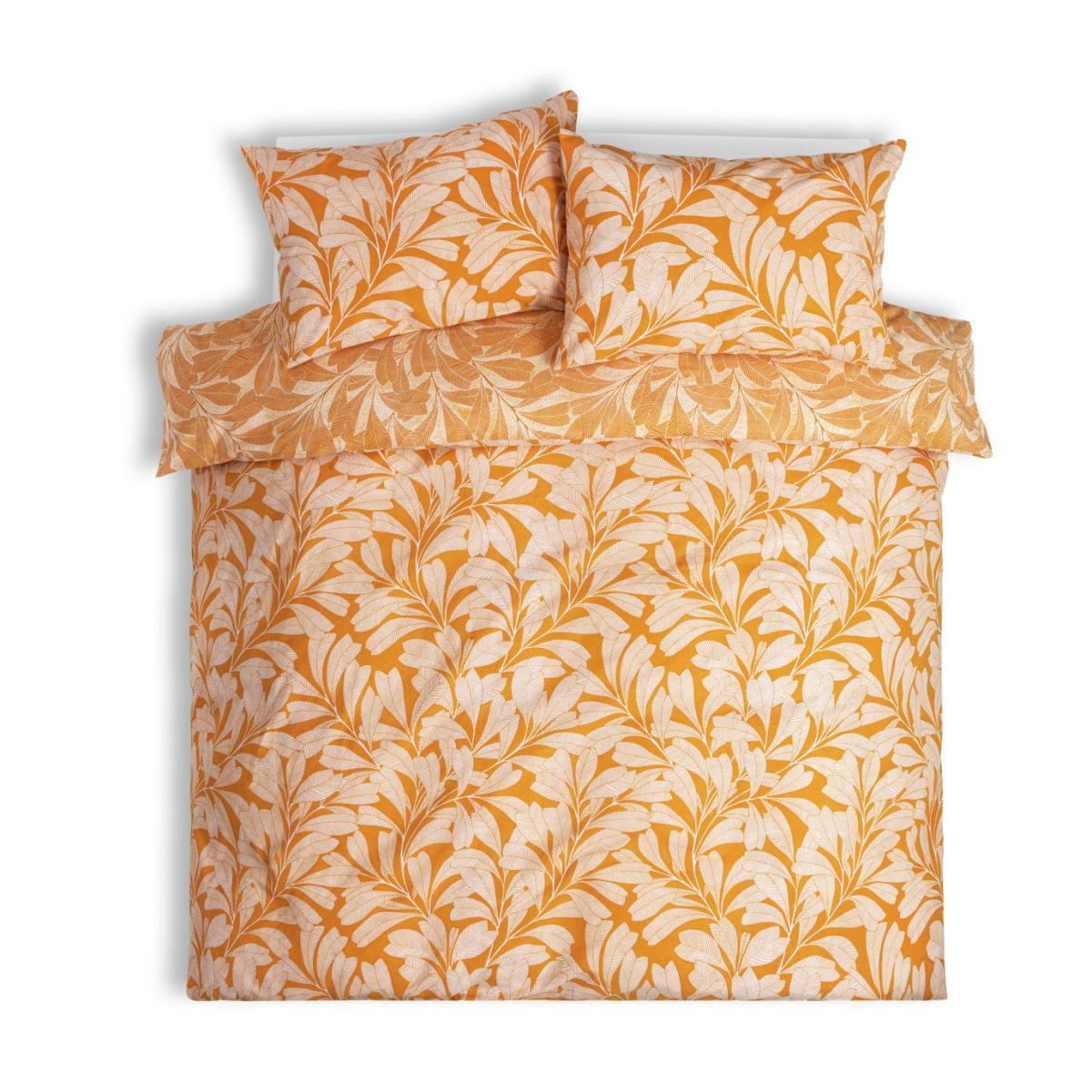 Looking for bold gold bedding? We've got you covered. Our soft and sumptuous single duvet set looks very boutique hotel with its rich linear leaf pattern. And it's woven from 100% cotton, so it helps regulate your temperature for a more comfortable night's sleep. Fancy a subtle change of scenery? Just flip this reversible set over. Artfully artisan. This item carries the STANDARD 100 by OEKO-TEX logo, which means you can be certain that every component has been tested for harmful substances and is therefore harmless to human health. Finish: woven. 100% cotton. 144 thread count. Set includes 1 duvet cover and 1 pillowcase. Bed size: single. Length 200cm, Width 135cm. Reversible. Buttons for fastening. Standard pillowcase (s). Pillow case length 75cm, Width 50cm. Reversible pillowcase (s).