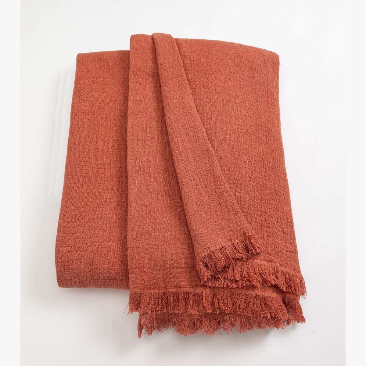 Soft and snuggly that's our terracotta fringed throw. Made in 100% cotton with a textured finish, it's a treat to cuddle up in. Make yourself a cuppa, grab a good book and get cosy.