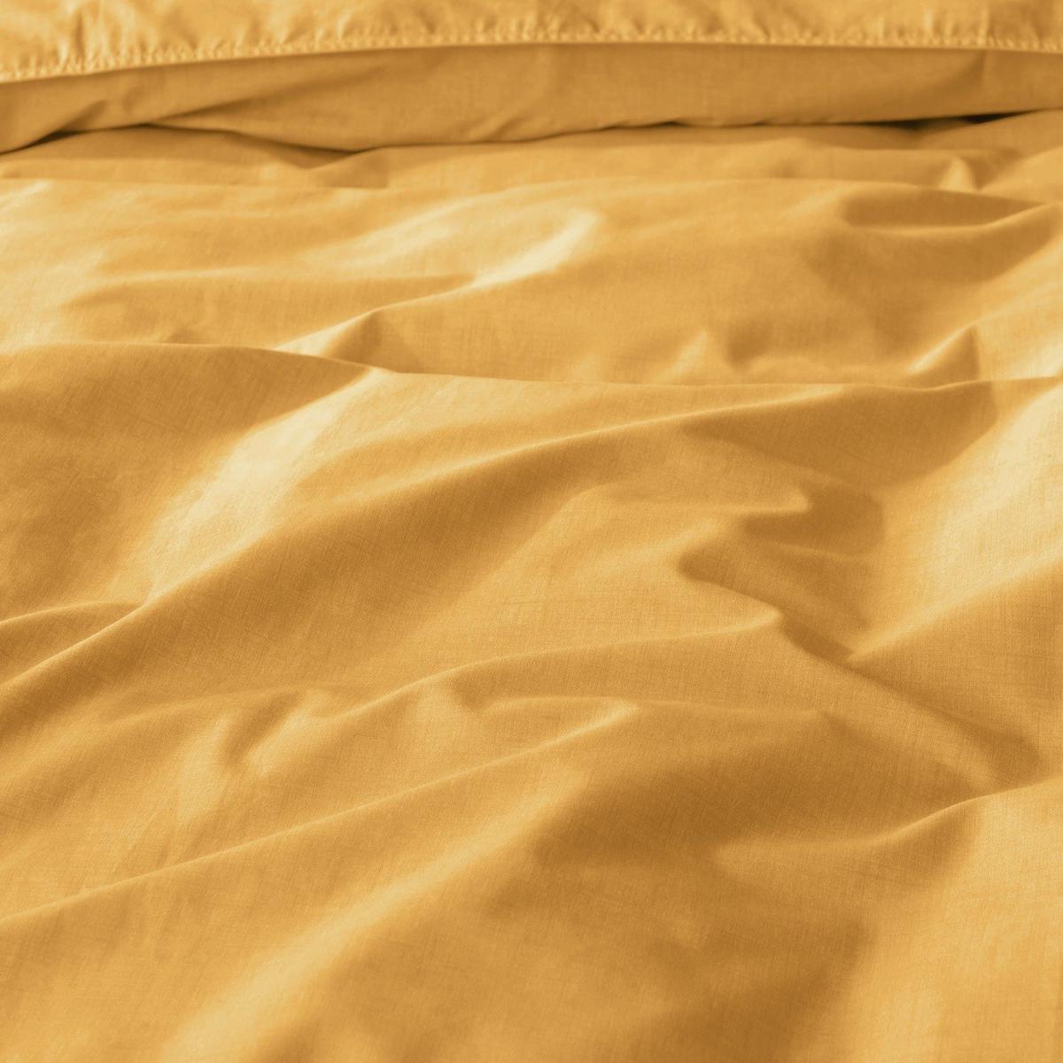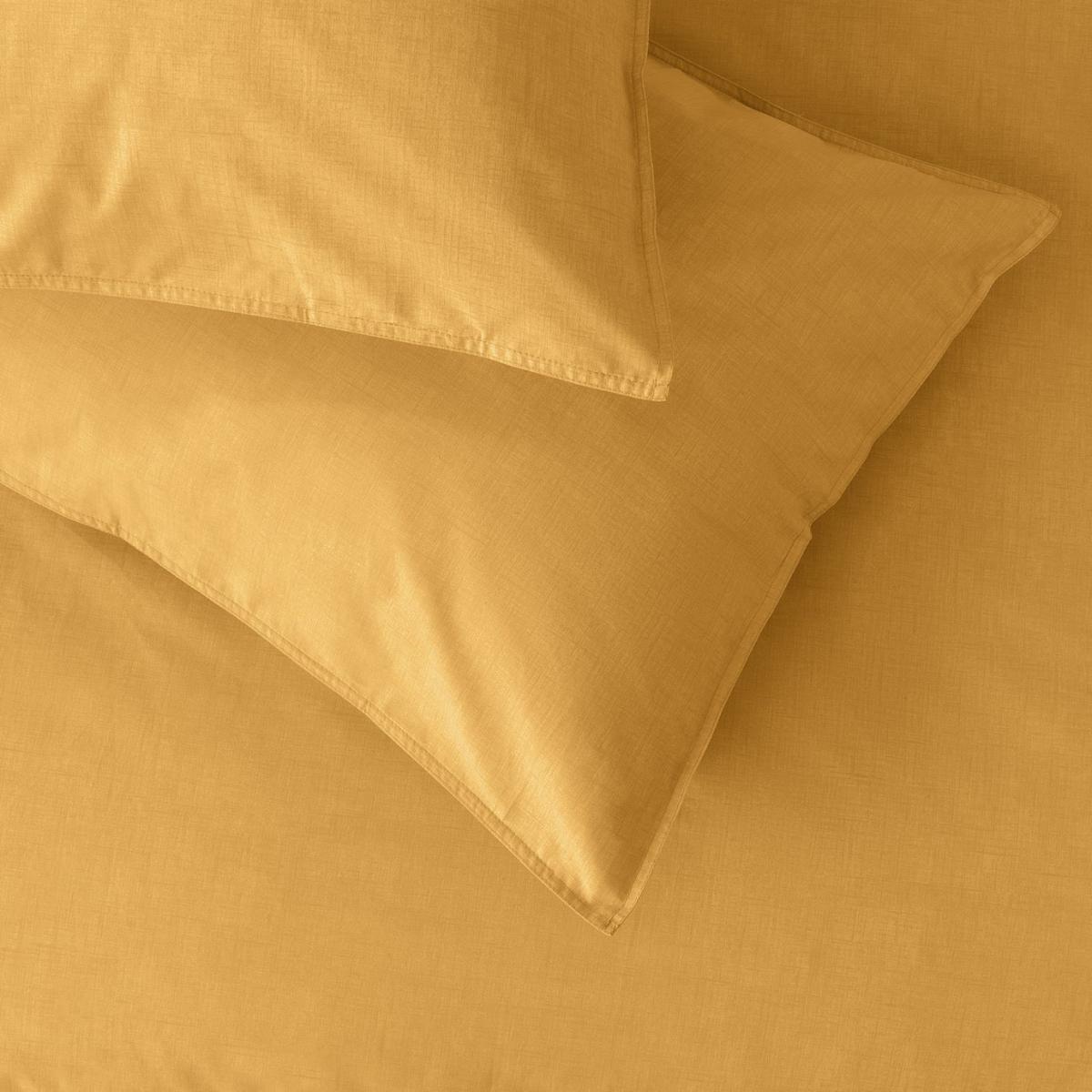 Quality textured pure cotton bedding. Plain and simple. This hot coloured duvet set speaks for itself. The mustard shade instantly adds a bold sunny vibe to your bedroom. Paired with white sheets it has a cheerful freshness that's hard to ignore. This item carries the STANDARD 100 by OEKO-TEX logo, which means you can be certain that every component has been tested for harmful substances and is therefore harmless to human health. Finish: textured. 100% cotton. 144 thread count. Set includes 1 duvet cover and 1 pillowcase. Bed size: single. Length 200cm, Width 135cm. Buttons for fastening. Standard pillowcase (s). Pillow case length 75cm, Width 50cm. Machine washable at 40 C. Suitable for tumble drying.