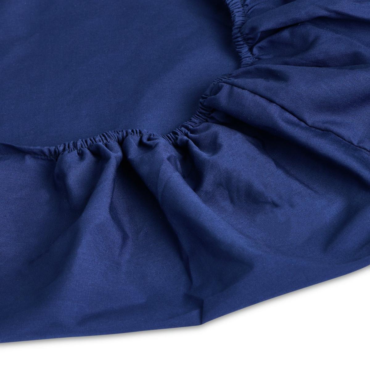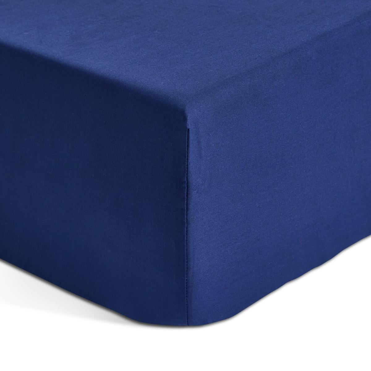Dive into deep navy. Our small double cotton rich fitted sheet is soft, breathable and made to last. Great for speedy bedding changes too, with elasticated corners that tuck in easily. Just pop the edges over the mattress for a crease-free fit. This item carries the STANDARD 100 by OEKO-TEX logo, which means you can be certain that every component has been tested for harmful substances and is therefore harmless to human health. Fabric finish: percale. 60% cotton, 40% polyester. 180 thread count. Small double. Size L190, W120cm. Elasticated corners. Machine washable at 40 C. Suitable for tumble drying.