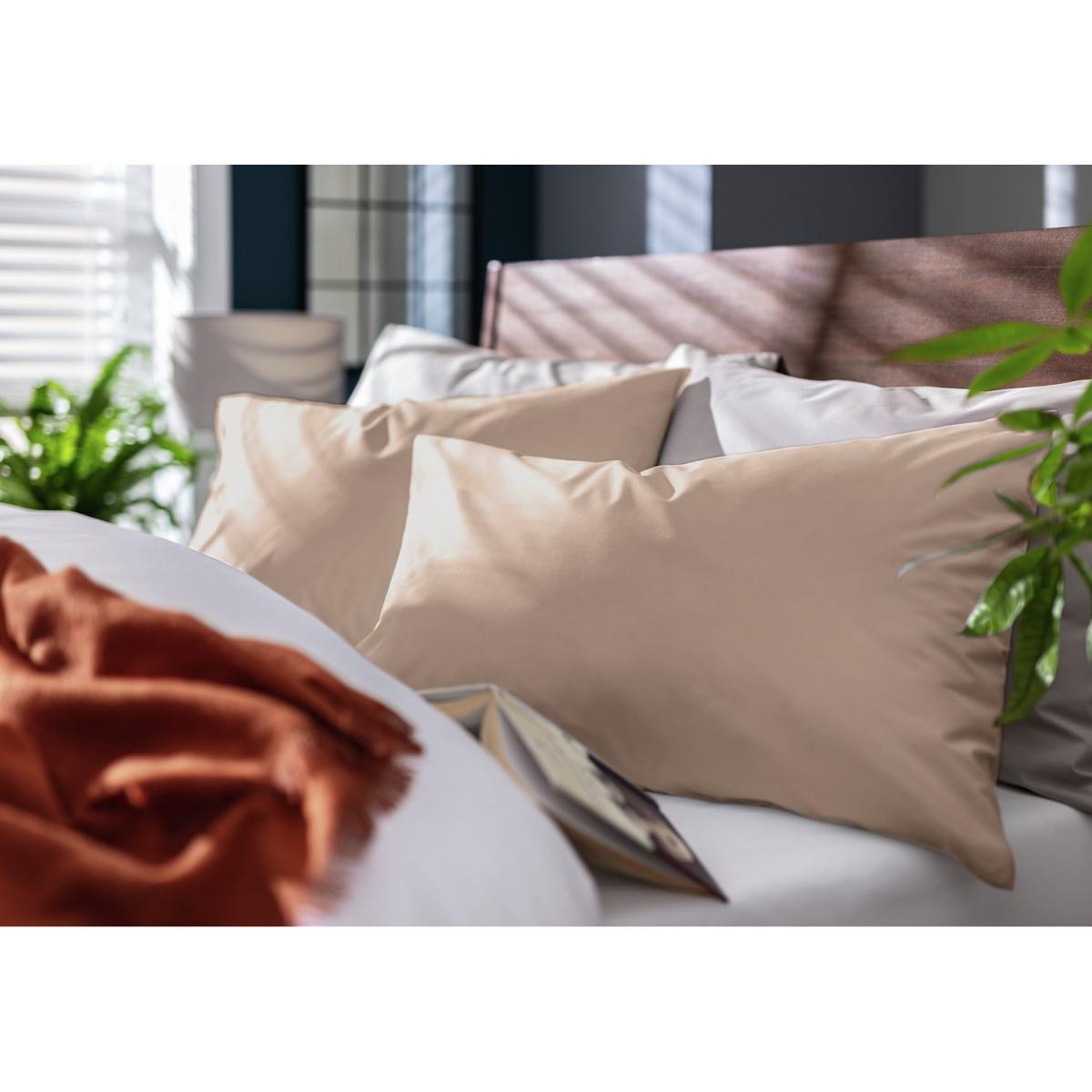 The perfect place to lay your head. This light and airy cotton rich pair of pillowcases come in a fabulous taupe colourway and are easy to care for. This item carries the STANDARD 100 by OEKO-TEX logo, which means you can be certain that every component has been tested for harmful substances and is therefore harmless to human health. 2 pillowcases. Pillowcase style: Standard. Finish: percale. 60% cotton, 40% polyester. 180 thread count. Size L75, W50cm. Machine washable at 40 C. Suitable for tumble drying.