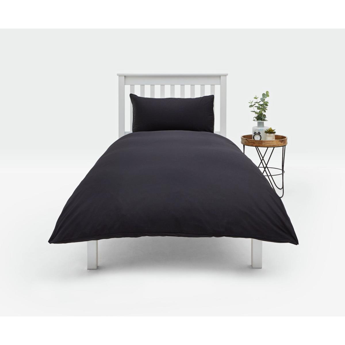 Sleeping is all about taking it easy. Why should caring for your bedding be any different? We've chosen this set as it's made of a cotton and polyester mix, meaning it's super soft and won't need ironing. And when it needs freshening up simply bung it in the washing machine, tumble dry it and replace on the bed. Simple. Picking the perfect colour from our superb selection is the only bit that's difficult! This item carries the STANDARD 100 by OEKO-TEX logo, which means you can be certain that every component has been tested for harmful substances and is therefore harmless to human health. Finish: woven. 40% polyester , 60% cotton. 180 thread count. Set includes 1 duvet cover and 2 pillowcases. Bed size: double. Length 200cm, Width 200cm. Buttons for fastening. Standard pillowcase (s). Pillow case length 75cm, Width 50cm. Machine washable at 40 C. Suitable for tumble drying.