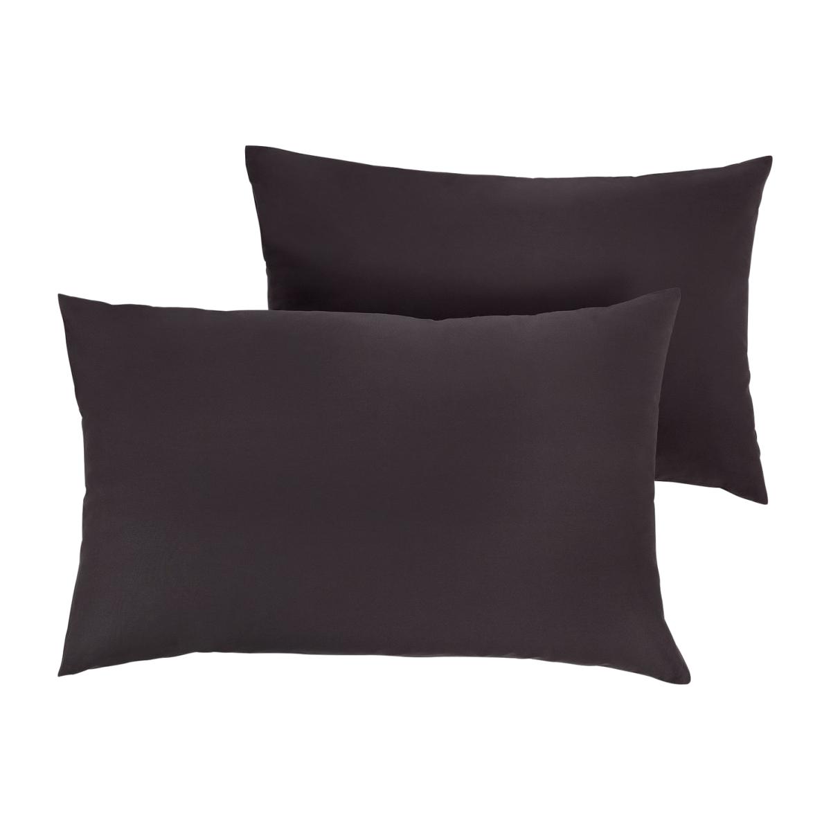 Whether you're looking to inject some character or match your current colour scheme, you can't go wrong with a pair of these cotton rich pillowcases. Soft to the touch and striking in black, they offer a pleasant place to lay your head. Made with cotton and polyester, you won't even need to iron them! This item carries the STANDARD 100 by OEKO-TEX logo, which means you can be certain that every component has been tested for harmful substances and is therefore harmless to human health. 2 pillowcases. Pillowcase style: Standard. Finish: percale. 60% cotton, 40% polyester. 180 thread count. Size L75, W50cm. Machine washable at 40 C. Suitable for tumble drying.