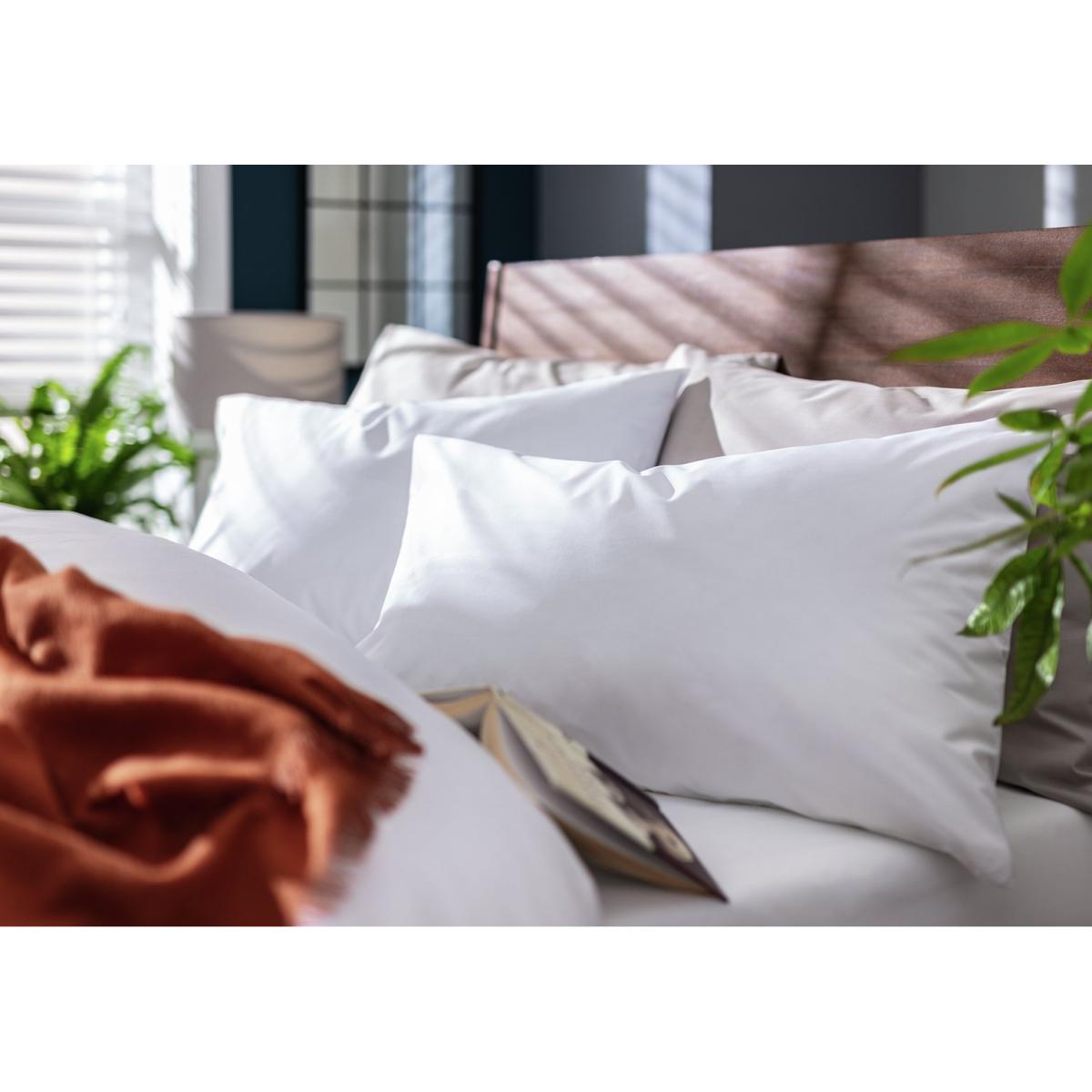 Whether you're looking to inject some character or match your current colour scheme, you can't go wrong with a pair of these cotton rich pillowcases. Soft to the touch and irresistible in colour, they offer a pleasant place to lay your head. Made with cotton and polyester, you won't even need to iron them! This item carries the STANDARD 100 by OEKO-TEX logo, which means you can be certain that every component has been tested for harmful substances and is therefore harmless to human health. 2 pillowcases. Pillowcase style: Standard. Finish: percale. 60% cotton, 40% polyester. 180 thread count. Size L75, W50cm. Machine washable at 40 C. Suitable for tumble drying.