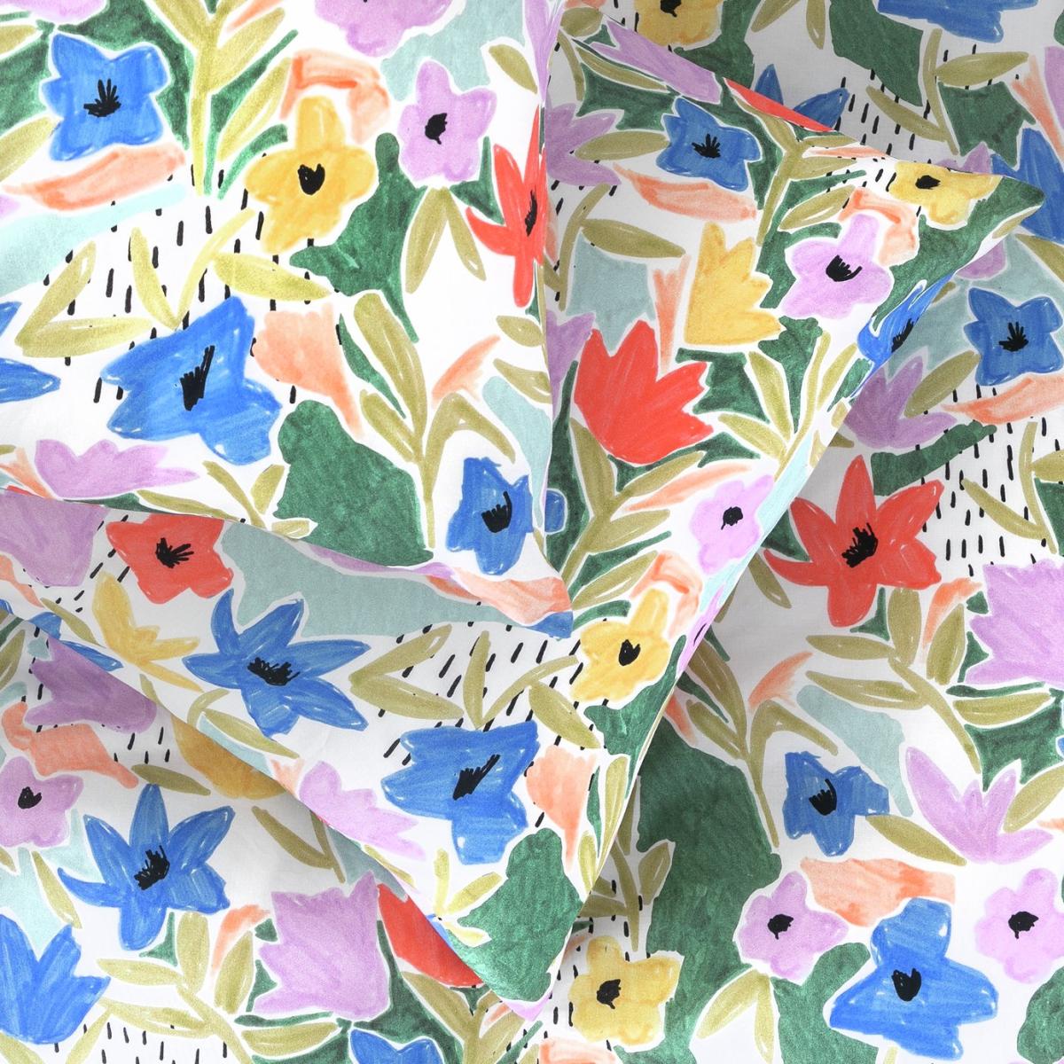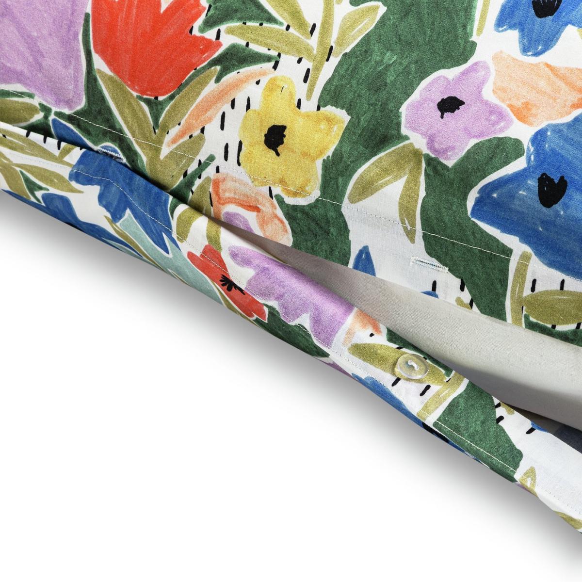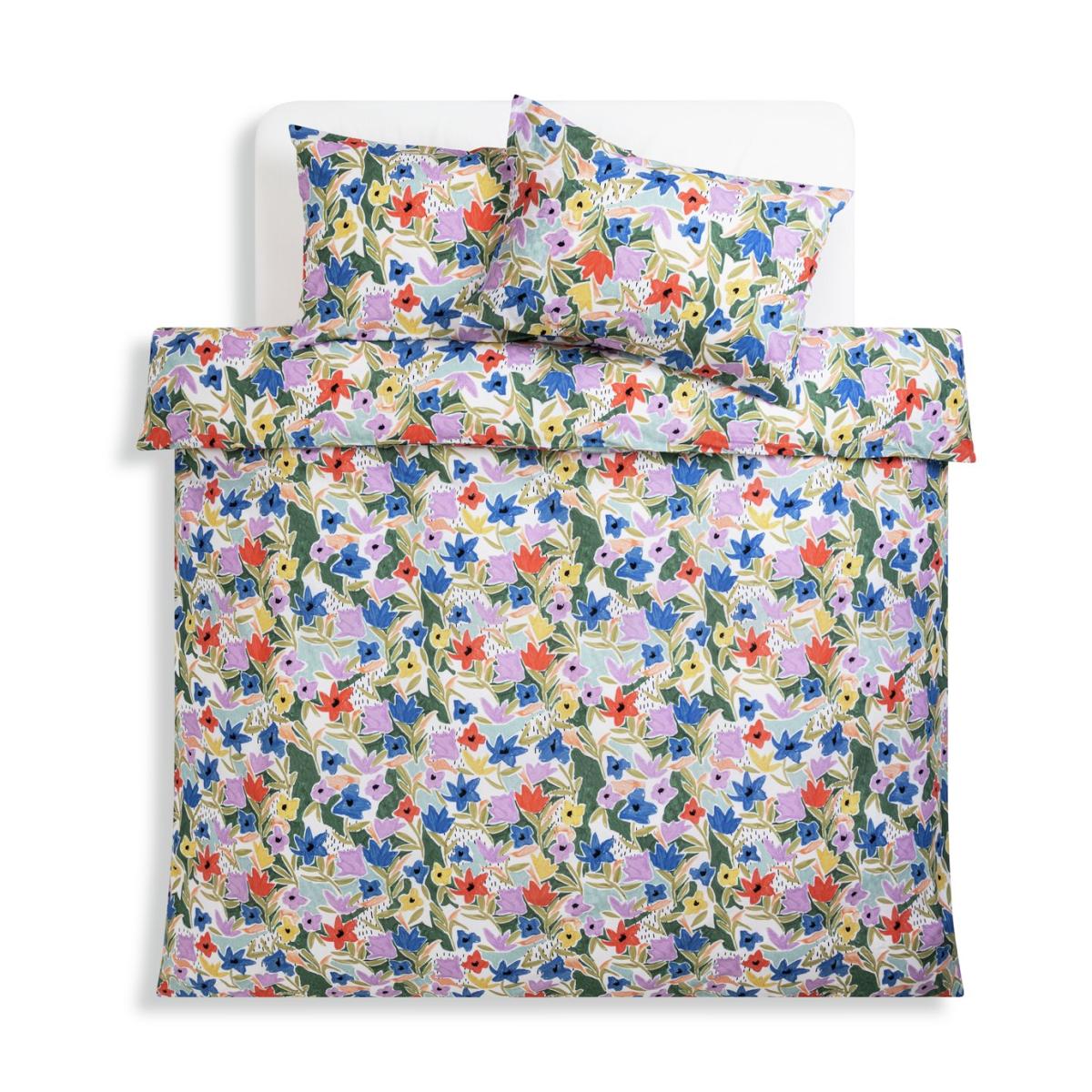 Take some beautiful blooms to bed. In 100% cotton, this colourful bedding set boldly displays its on trend modern floral design. Perfect for adding a burst of contemporary meadow fresh to a room. This item carries the STANDARD 100 by OEKO-TEX logo, which means you can be certain that every component has been tested for harmful substances and is therefore harmless to human health. 100% cotton. 144 thread count. Set includes 1 duvet cover and 2 pillowcases. Bed size: double. Length 200cm, Width 200cm. Reversible. Buttons for fastening. Standard pillowcase (s). Pillow case length 75cm, Width 50cm. Reversible pillowcase (s). Wash before use. Suitable for tumble drying.