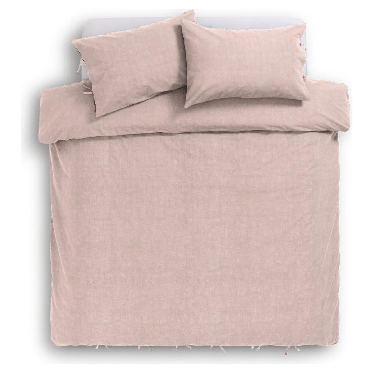 Quality textured pure cotton bedding. Plain and simple. This blush pink duvet set speaks for itself. The gentle pastel shade adds a romantic vibe to your bedroom. Pair with grey sheets for a smart contemporary look. This item carries the STANDARD 100 by OEKO-TEX logo, which means you can be certain that every component has been tested for harmful substances and is therefore harmless to human health. Finish: textured. 100% cotton. 144 thread count. Set includes 1 duvet cover and 2 pillowcases. Bed size: double. Length 200cm, Width 200cm. Standard pillowcase (s). Pillow case length 75cm, Width 50cm. Machine washable at 40 C. Suitable for tumble drying.