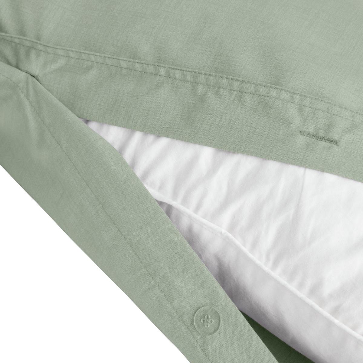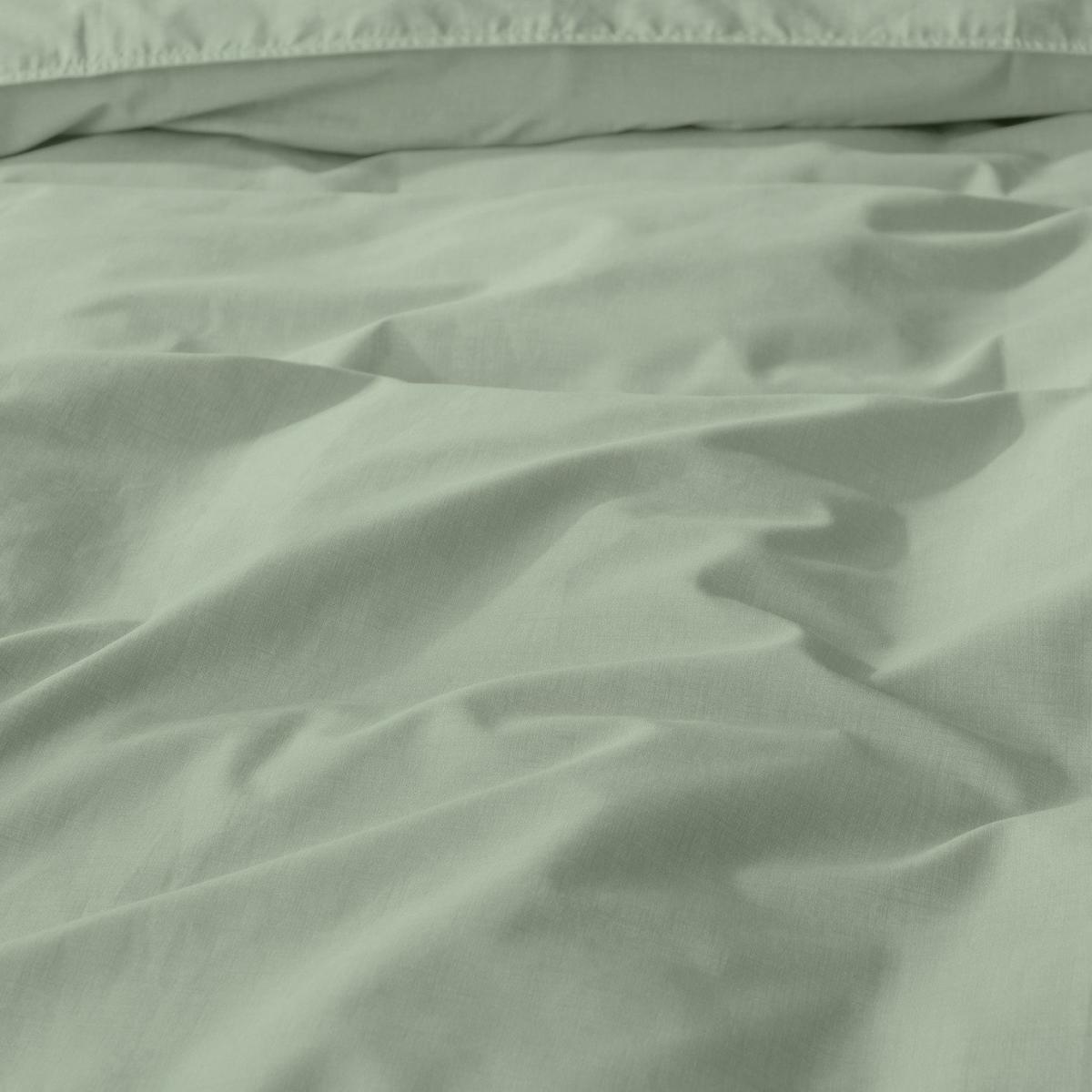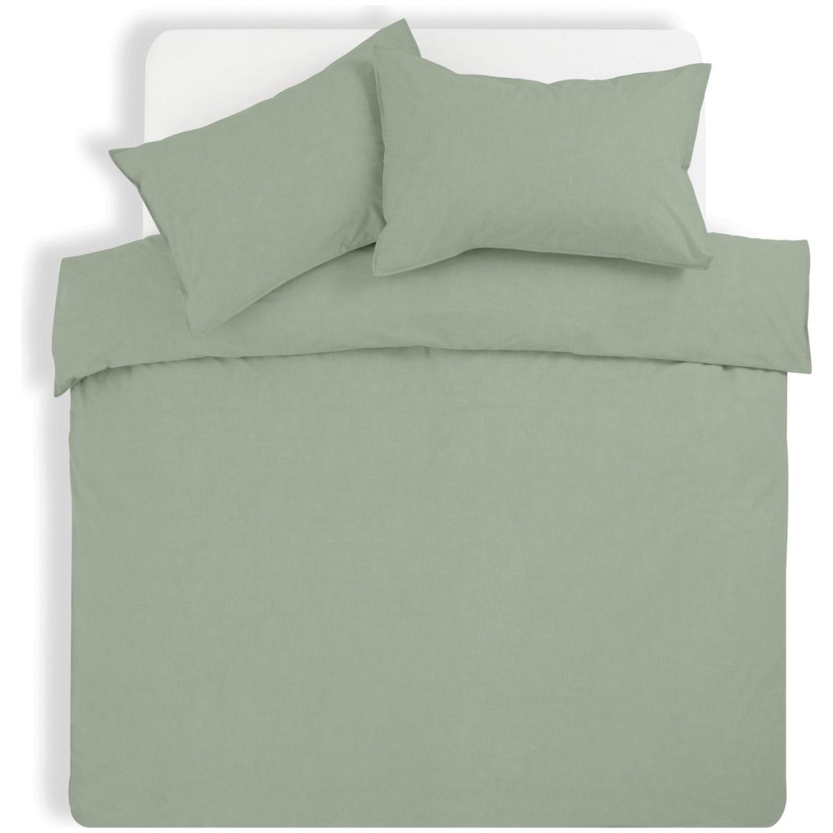 Tastefully textured bedding. Dress your bed in our serene sage green duvet set for some serious, high-end style. Made from 100% cotton it feels naturally good to slip into. This item carries the STANDARD 100 by OEKO-TEX logo, which means you can be certain that every component has been tested for harmful substances and is therefore harmless to human health. Finish: textured. 100% cotton. 144 thread count. Set includes 1 duvet cover and 2 pillowcases. Bed size: super king. Length 220cm, Width 260cm. Buttons for fastening. Standard pillowcase (s). Pillow case length 75cm, Width 50cm. Machine washable at 40 C. Suitable for tumble drying.