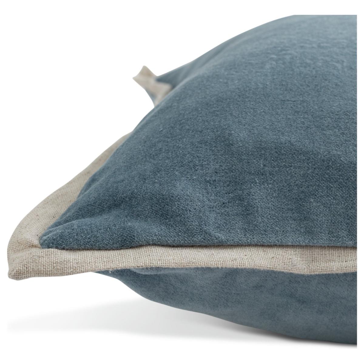Velvety soft, this cushion is a delight to cuddle with. Designed in a blue shade and finished with a matching hem, the soft sheen adds subtle style to any seating. Plump and practical. Zip fastening. Cover 100% Cotton. Filling 100% Recycled polyester. Size L43, W43cm. This cover is machine washable.