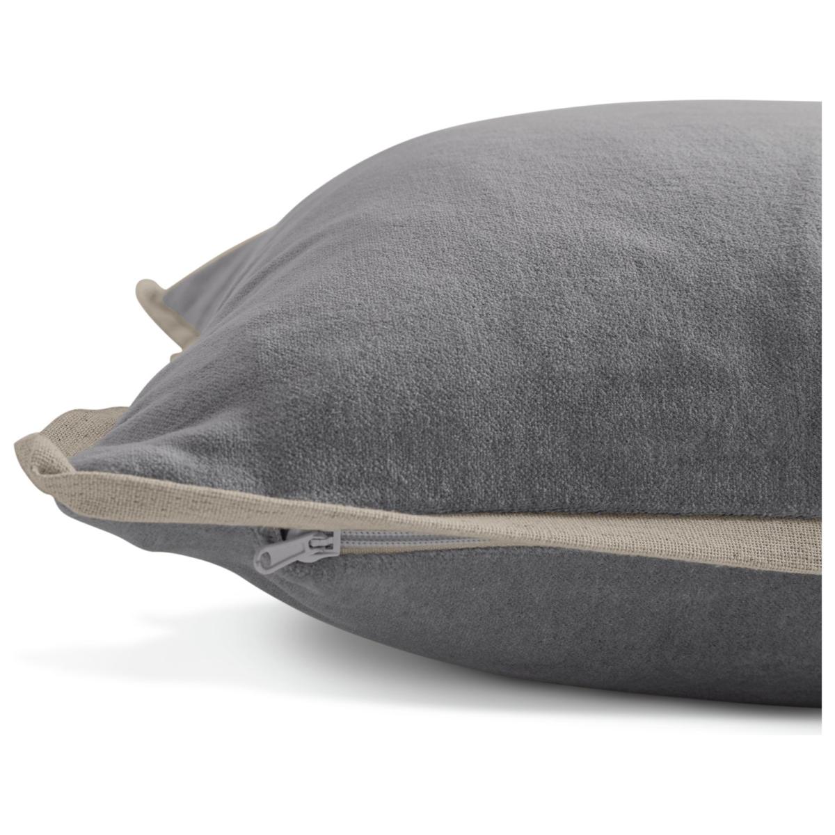Velvety soft, this cushion is a delight to cuddle with. Designed in a charcoal shade and finished with a matching hem, the soft sheen adds subtle style to any seating. Plump and practical. Zip fastening. Cover 100% Cotton. Filling 100% Recycled polyester. Size L43, W43cm. This cover is machine washable.