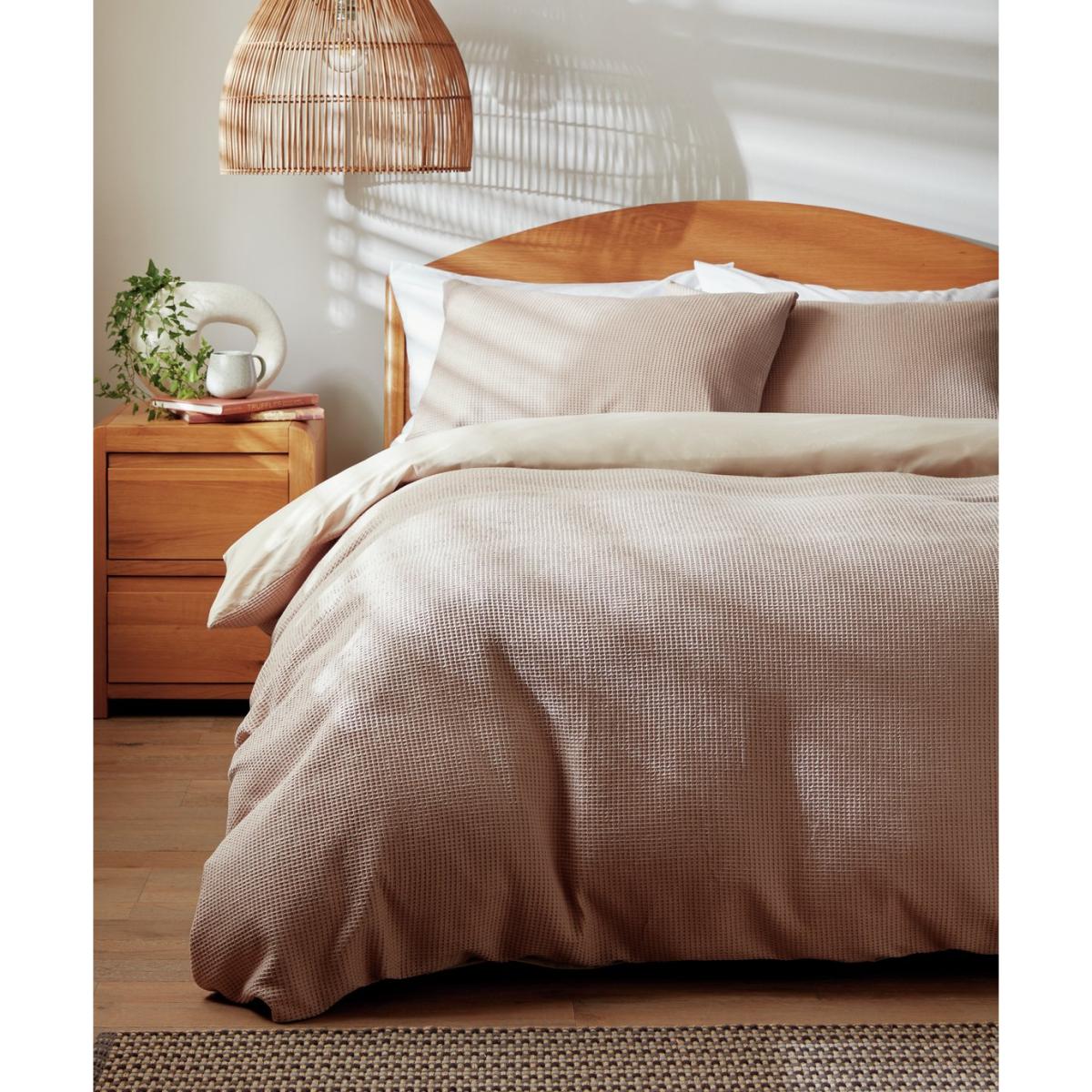 Wonderfully waffly. Create a relaxing bedroom space with our welcoming waffle weave bedding. It's just the job for some dedicated lounging. Made in 100% cotton for a light, easy-care option, this tactile duvet adds a soft layer of sophistication to your room. Fully reversible, choose smooth or textured side up, to suit your mood. Great for good nights and marvellous mornings.