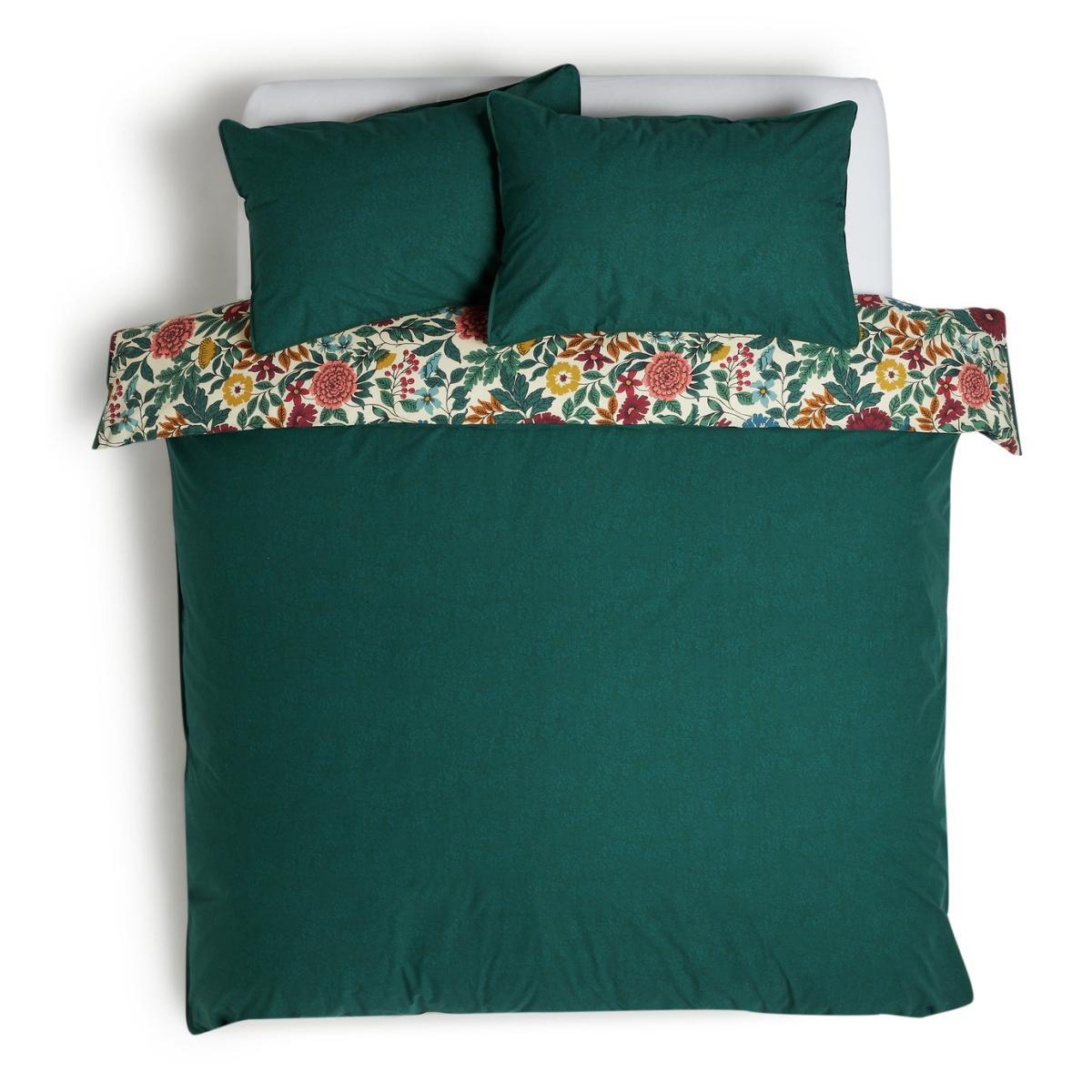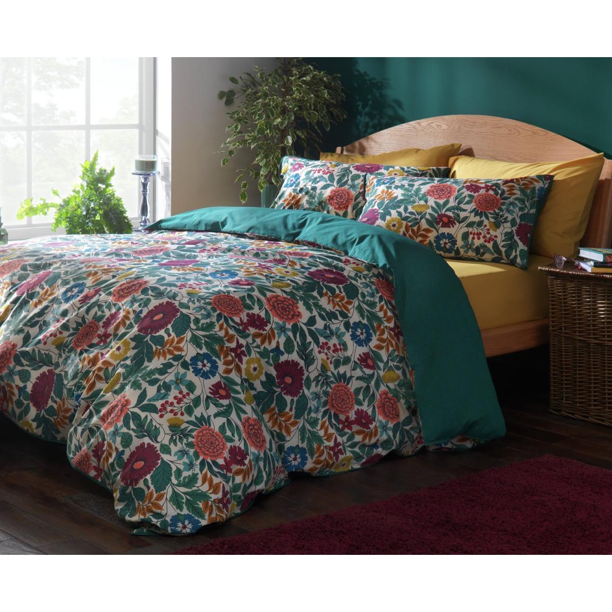 Brighten your bed with bold blooms. This king size duvet set is part of our Country Manor collection and comes with 2 vibrant looks in 1. Colourful flowers on one side and a forest green jacquard on the other. Charmingly chintzy. Made from a poly-cotton blend, it's soft to the touch and easy to care for. Just the ticket for giving your bedroom a cosy, country feel.