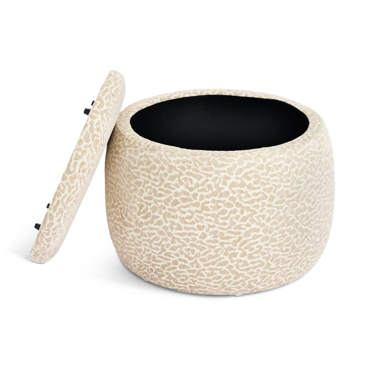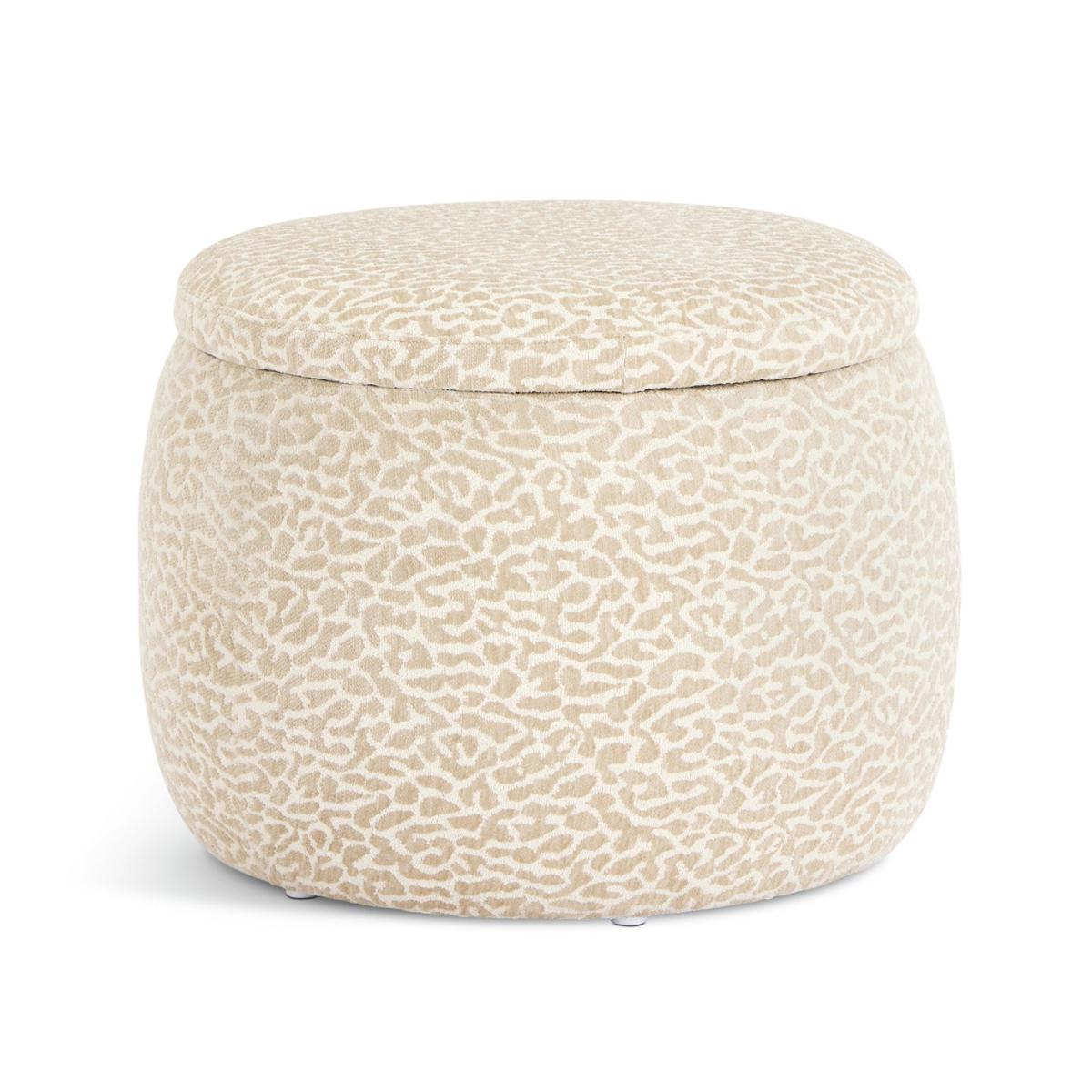 The Cove ottoman is your storage hero. Wrapped in a subtle leopard print, it'll bring a fresh and funky touch to your home. Lift the lid and you've got room for books, toys and throws. Lightweight and easy to move around. Put it to use as extra seating or a casual footrest. Your wish is Cove's demand. Part of the Cove collection. Made from fabric. Can be used as occasional seating. Size H45, W60, D60cm. Weight 11kg. Fully assembled. Storage capacity: 60 litres. Package Dimensions: Package 1 dimensions: H48.5, W64, D64cm. Package 1 weight: 12kg. General information: Manufacturer's 1 year guarantee.