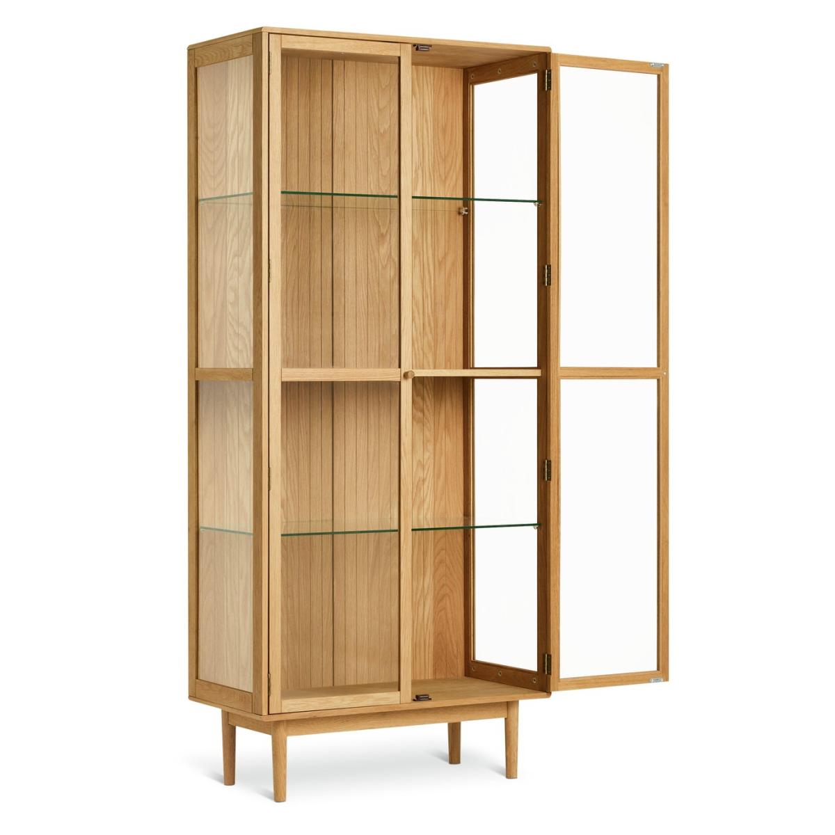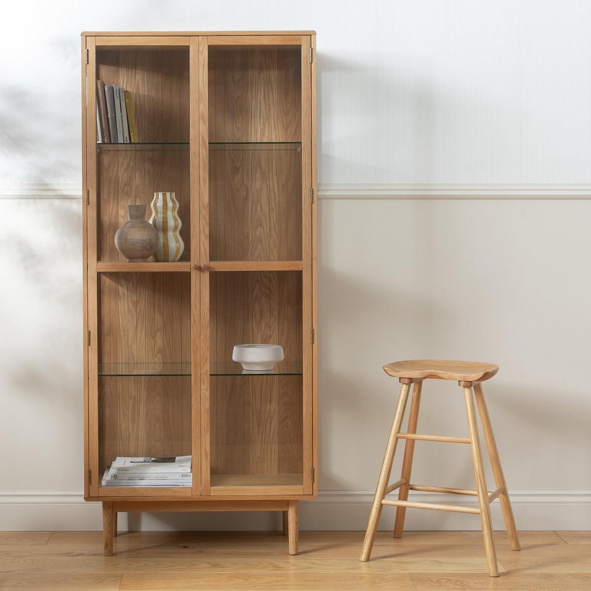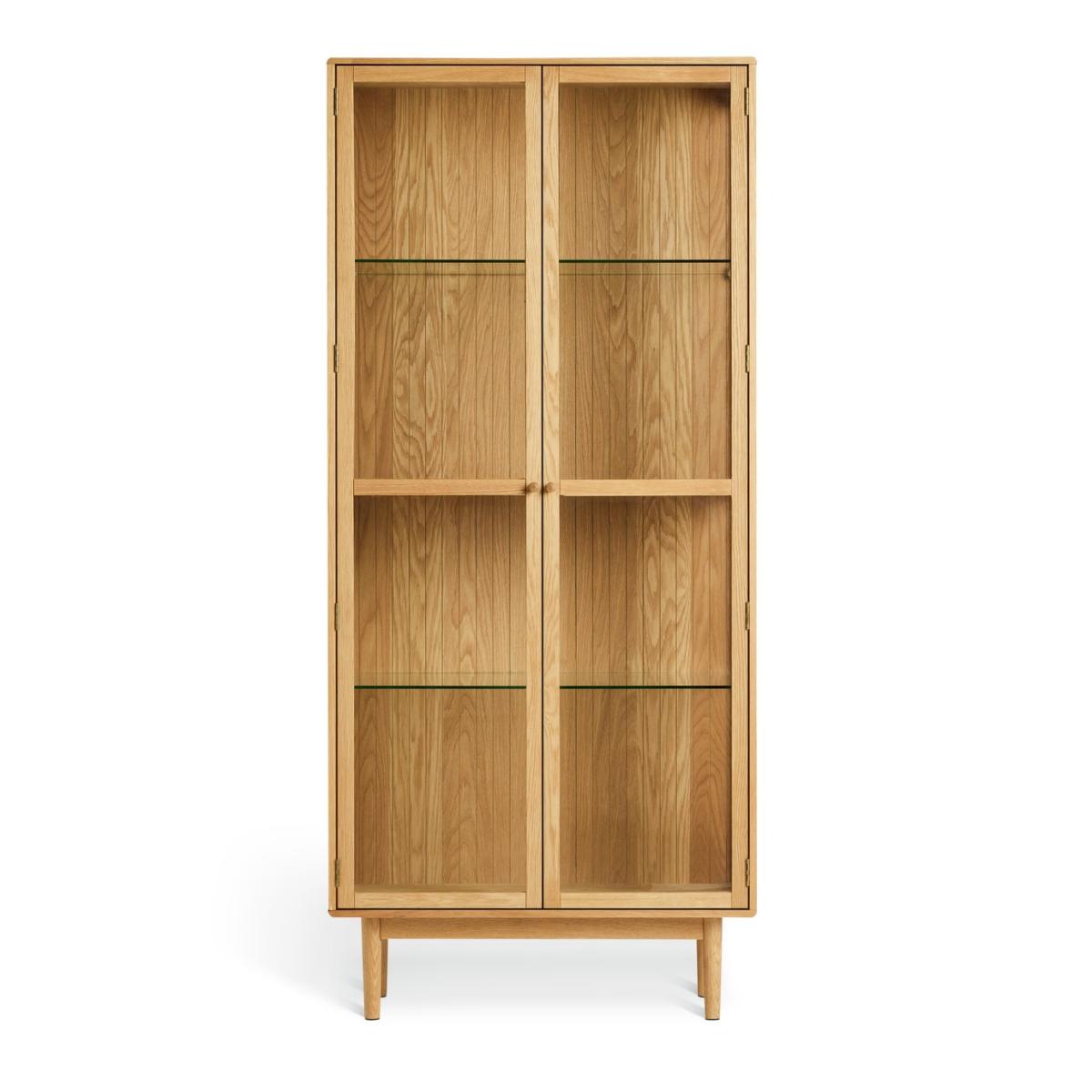 Curate your curiosities. The Crishel Display Cabinet features glass shelving and doors to show off your favourite items in style. With 2 fixed and 2 table shelves, there's plenty of room to keep precious souvenirs, models or ceramics safely on show. Crafted from honey-coloured oak, this piece will sit beautifully in the lounge or dining room. Get ready for the compliments. Part of the Crishel collection. Size H180, W80, D40cm. Weight 54.4kg. Maximum load weight of 110kg. 4 shelves made from glass including 2 fixed shelves 2 adjustable shelves. 2 doors made from glass. Oak solid wood handles. Self-assembly - 2 people recommended. If this product is over 60cm in high it must be securely attached to the wall to prevent over turning. (fixing included). Package Dimensions: Package 1 dimensions: H13.5, W50, D90cm. Package 1 weight: 20.3kg. Package 2 dimensions: H10.7, W50, D169.5cm. Package 2 weight: 34.1kg. General Information: By choosing FSC certified products, you are supporting responsible management of the world's forests. Manufacturer's 2 year guarantee.