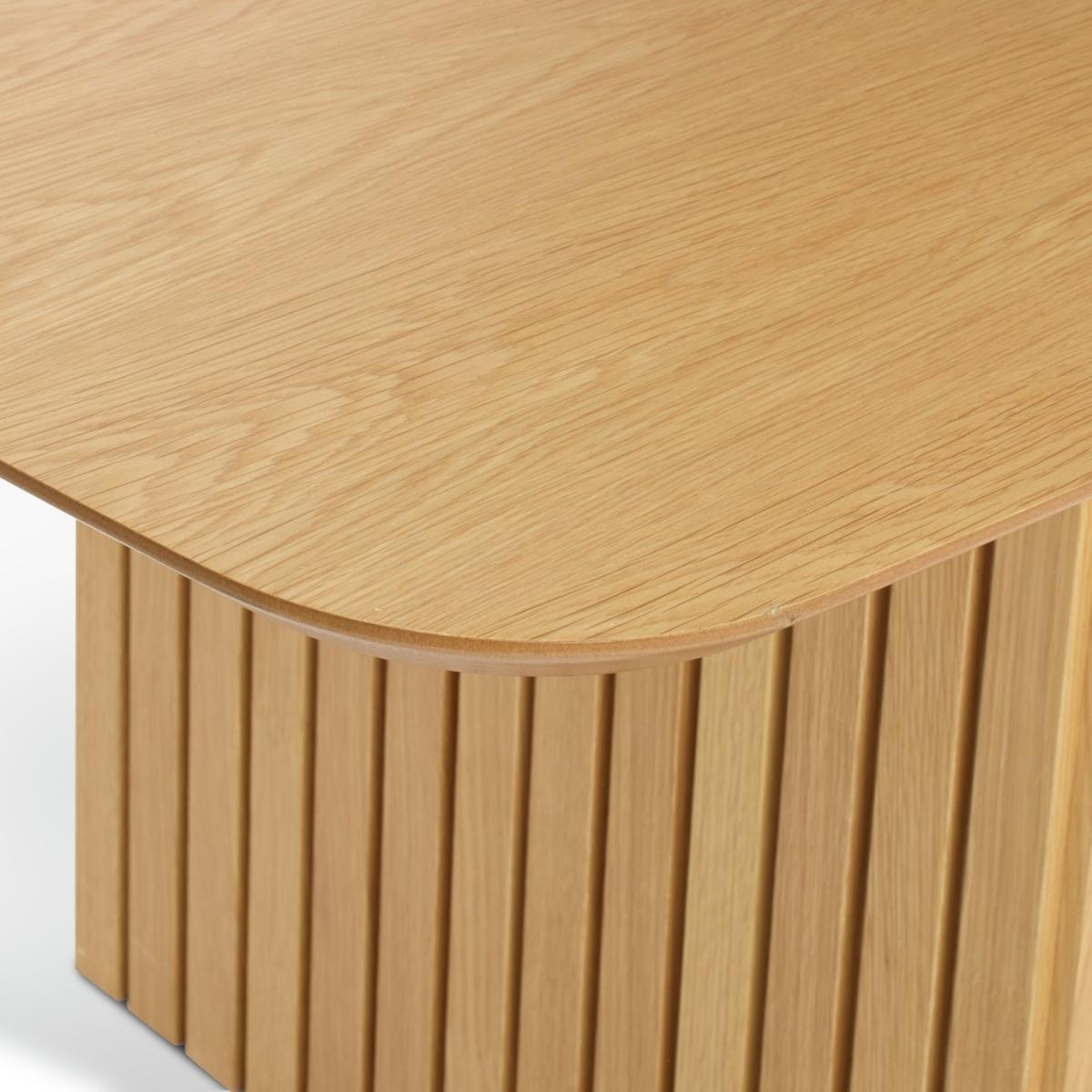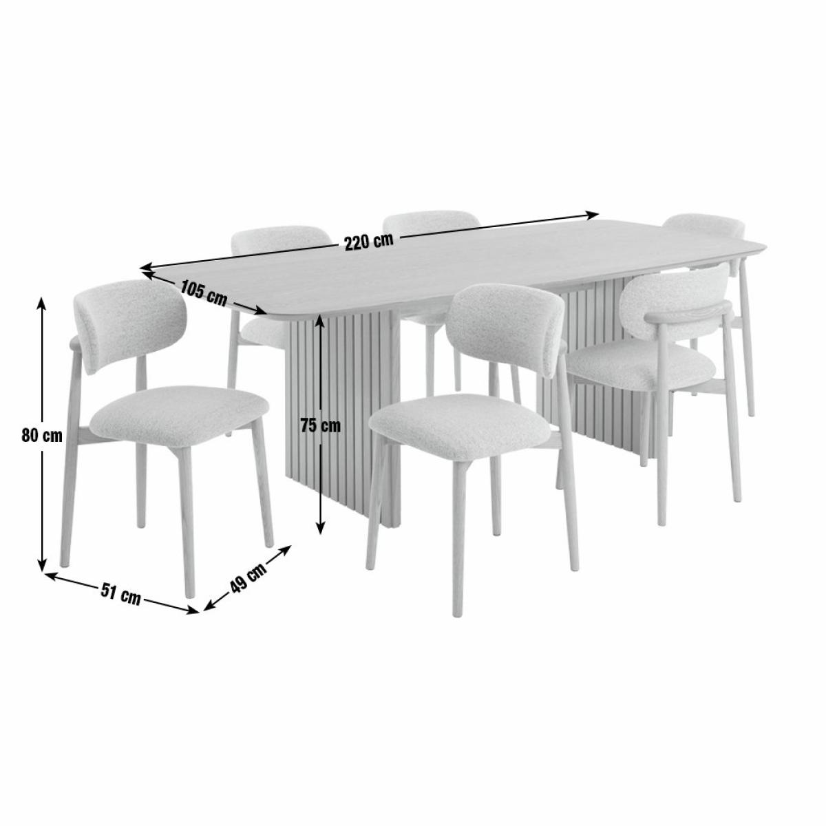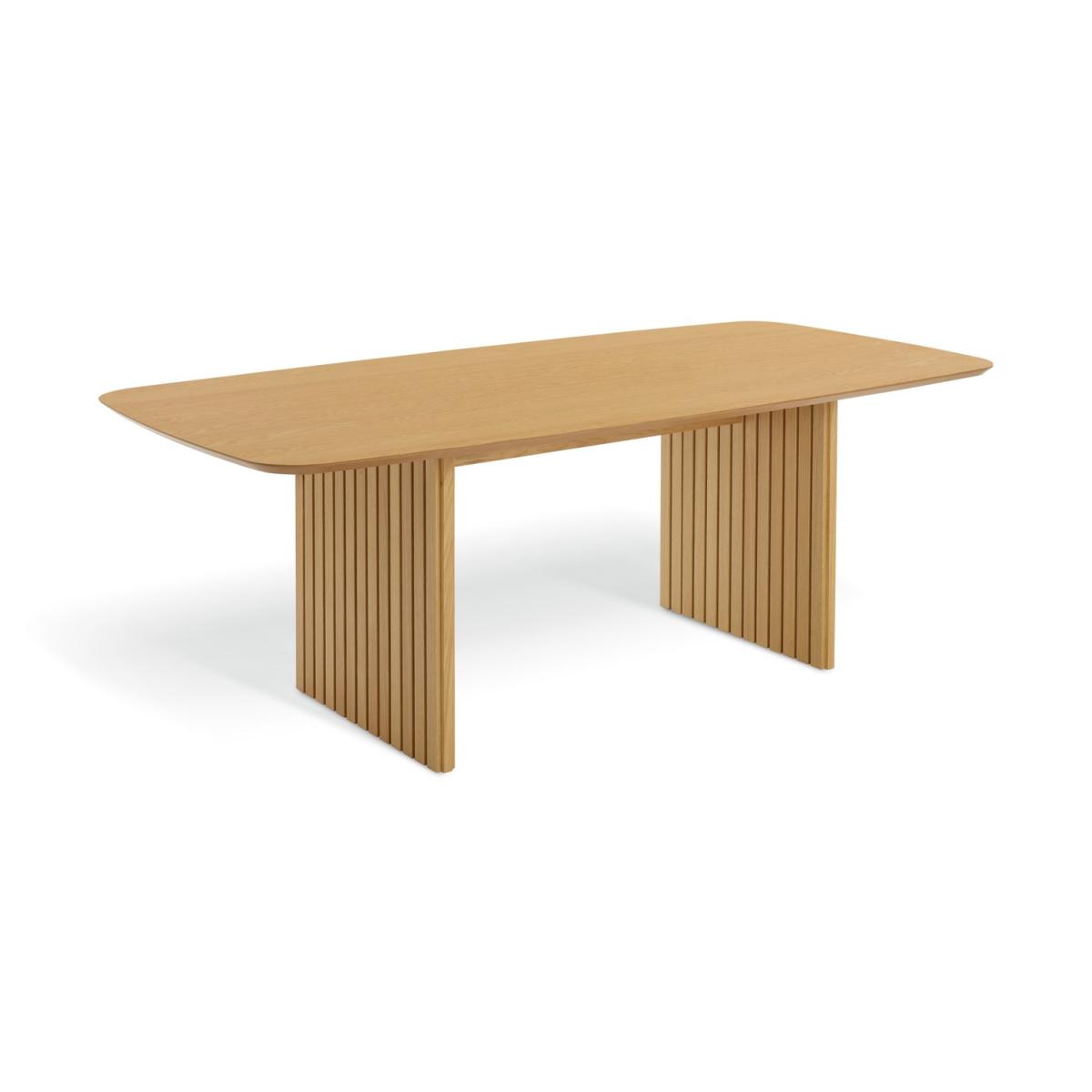 Sleek and slatted. Crafted from oak veneer, our Crishel table transforms everyday dining into something special. Two sculptural legs hold the design with confidence. Add 6 Arona chairs with gently curved backrests, padded seats and turned oak legs. Classic build with modern comfort all finished in a soft, natural tone. You're all set for long lunches and late night chats. Tuck in. Part of the Crishel collection. Table: Table size H75, W105, L220cm. Oak veneer table with oak veneer legs. Oak table top finish. Self-assembly - 2 people recommended. Chair: Includes 6 chairs. Size of each chair H80, W49, D51cm. Seat height 48cm. Oak frame with oak legs. Fabric seat pad. Self-assembly. Maximum user weight per chair 110kg. Individual chair weight 13.5kg. Package Dimensions: Table package 1 size H8, W230.5, D49.5cm. Table package 2 size H13, W76, D83.5cm. Individual chair package size H27, W65, D77.5cm. General information: Manufacturer's 1 year guarantee. Dust or wipe with a damp cloth only. By choosing FSC certified products, you are supporting responsible management of the world's forests.