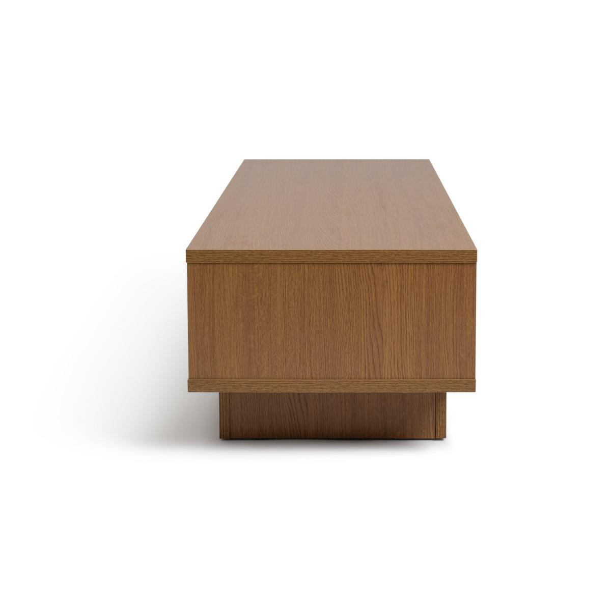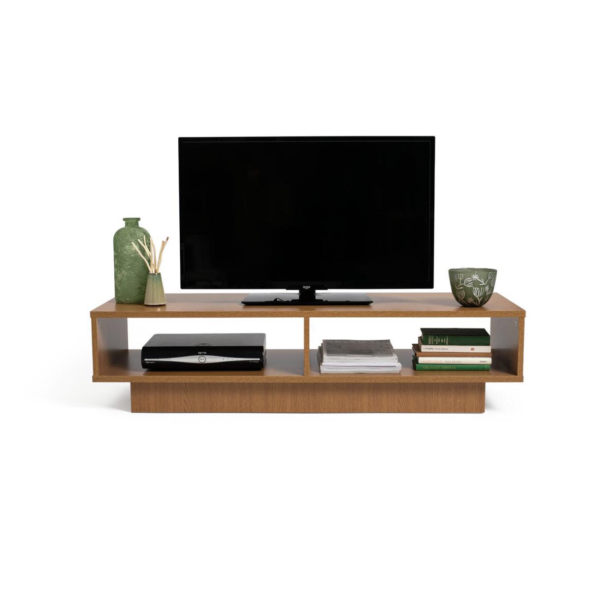 I really like this TV stand because of its versatile oak effect and modern, grid-like design. It works particularly well in contemporary and Scandinavian-inspired interiors, adding warmth without overwhelming the space. Practical styling tips include using the open shelving to display books, decorative objects, or some indoor plants for a lived-in feel. It’s also a great piece for keeping clutter out of sight, so pairing it with closed storage options nearby can help maintain a tidy look. When styling, keep accessories minimal and consider a bowl or tray on top for small essentials, letting the natural wood finish and clean lines do the talking.
