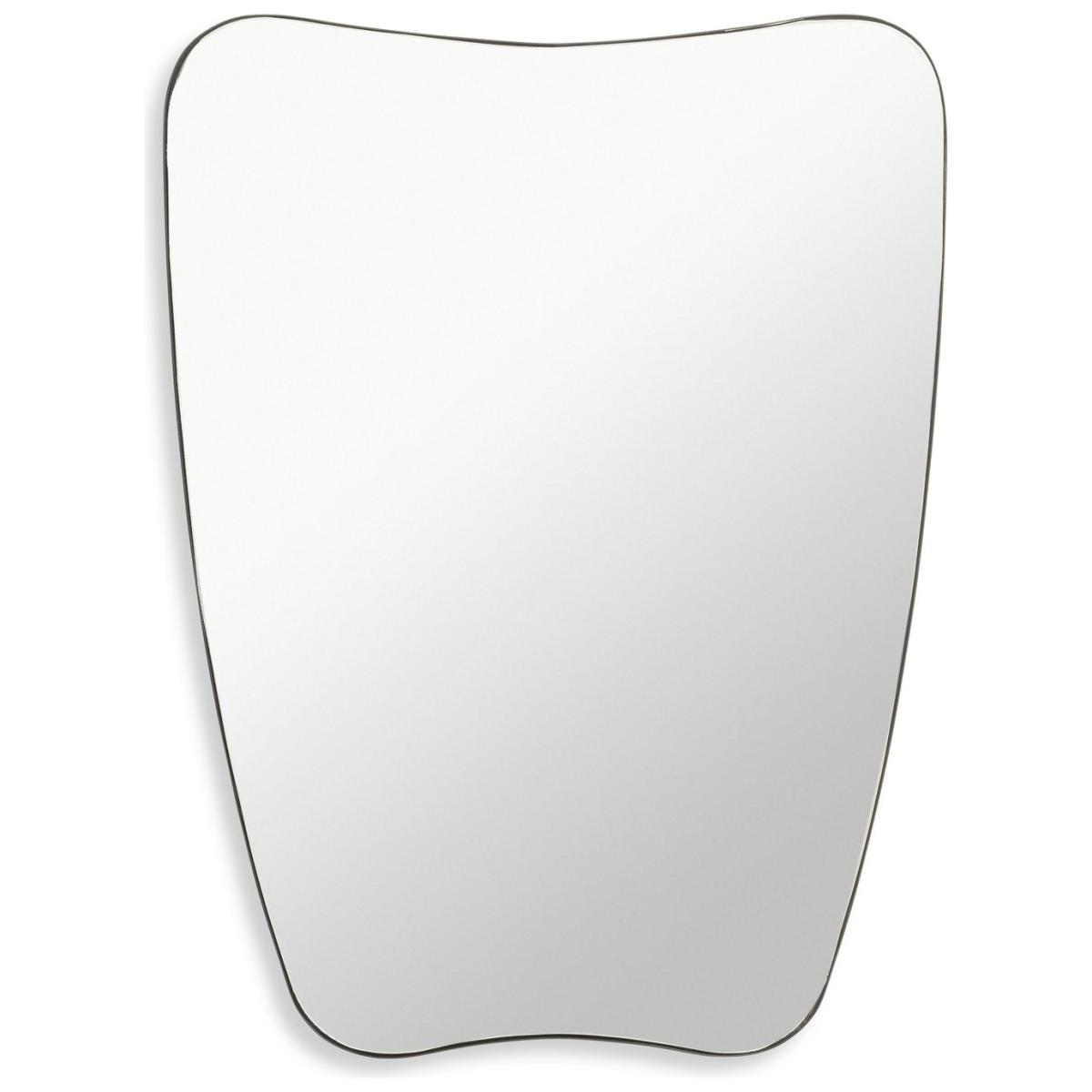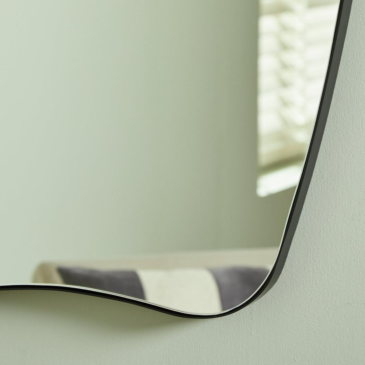 Create a modern focal point with this curvaceous wall mirror. The black steel frame emphasises the distinctively mid-century inspired shape. An easy piece to notice and admire. Comes ready to hang. Size H80, W60, D2.5cm. Frame material: Metal. Wall mounted mirror. Total weight: 4.45kg.