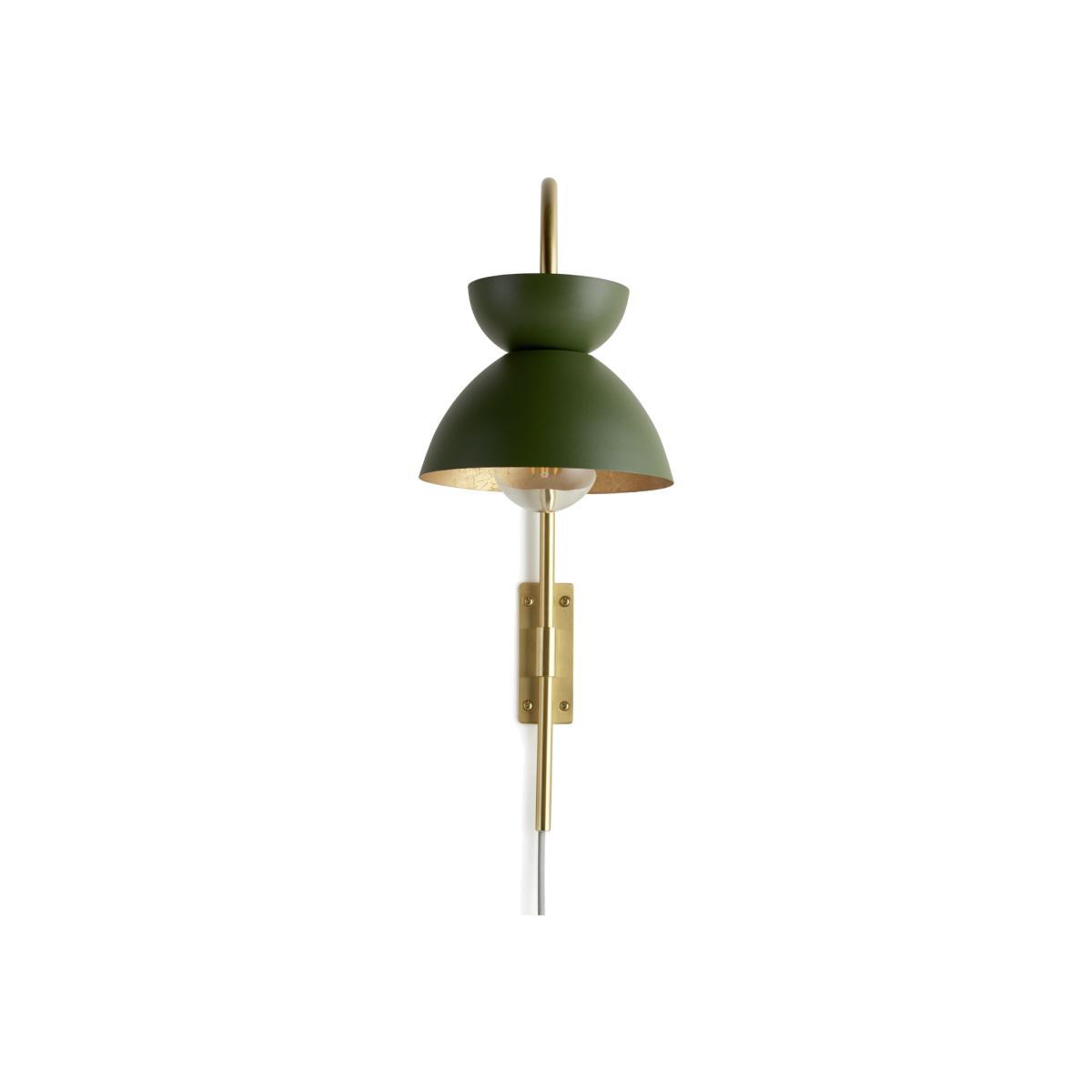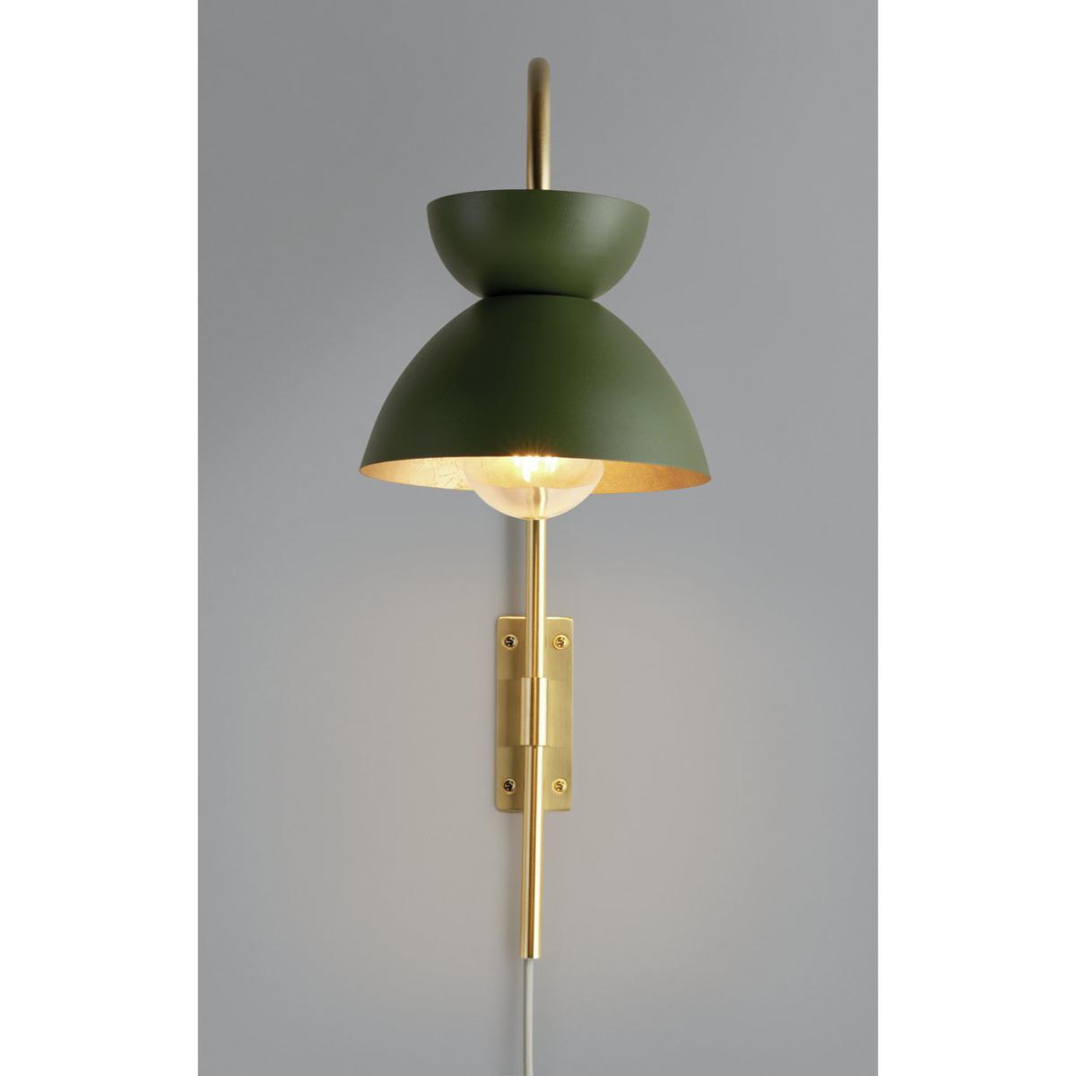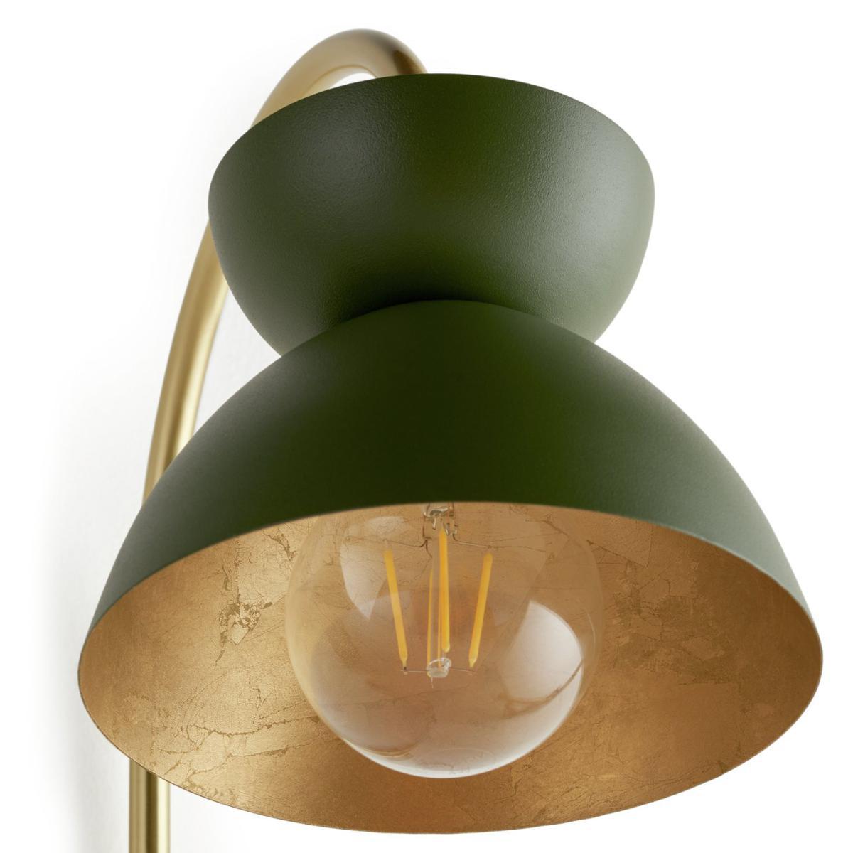 Glam and glow. Our elegant wall lamp brings a touch of modern luxury to the lounge or bedroom. An eye-catching two-tier shade in olive green contrasts beautifully with its golden inner surface. And that marbled effect? Gorgeous. Brass fixtures add to its luxe, show home feel. Simply mount on a wall, pop in a bulb, and relax in its cosy, contemporary ambience. Switch on the style. Love this look? Match with more metallic accents and vibrant pieces in our collection. Dimensions: Size H50, W33.5, D18cm, Diameter 18cm. Bulb Information: Bulbs required 1 x globe E27 edison bayonet LED (not included). Recommended maximum wattage: 40 watts. General Information: Brass. IP rating 20 - not suitable for bathroom use. Packed flat. Product is hard-wired into electrics. Manufacturer's 2 year guarantee.