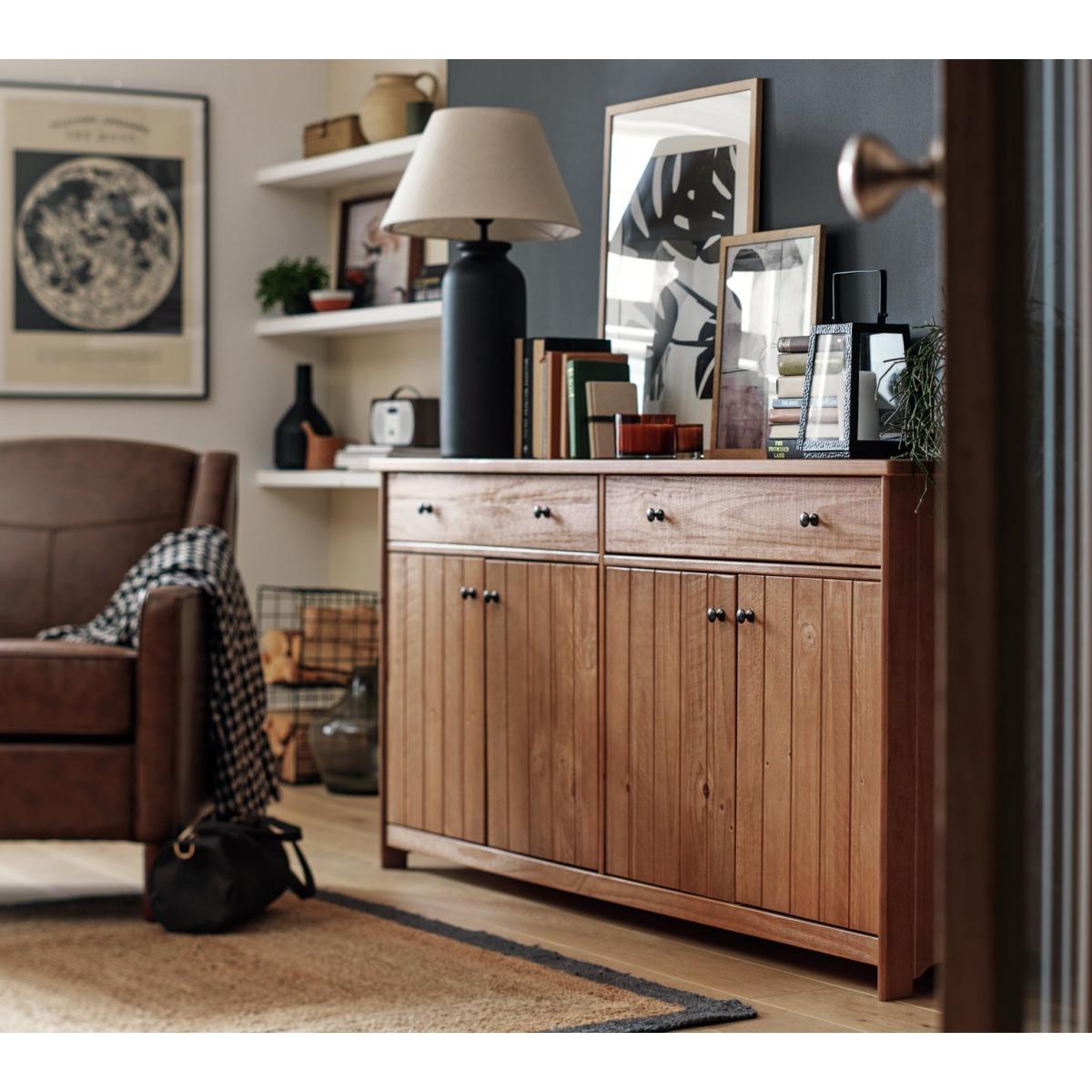 I really like this sideboard for its classic, versatile design and warm pine finish, which adds a cosy, natural touch to any interior. It works particularly well in rustic, coastal, or Scandinavian-inspired spaces, where its understated charm complements light, airy décors. Practical styling tips include using the top surface for decorative baskets or a mix of vases and candles, while the drawers and cabinets are ideal for storing dining essentials, linens, or even office supplies to keep everything organised. Its neutral tone makes it adaptable, so pairing it with textured textiles, metal accents, or colourful accessories can help create a balanced and inviting look.