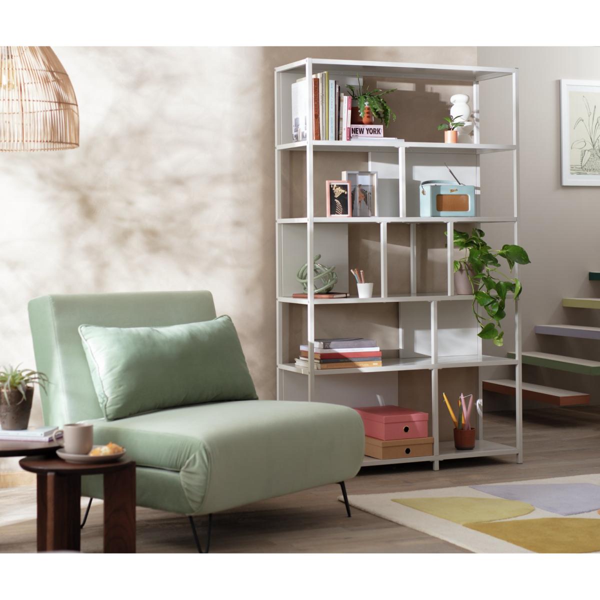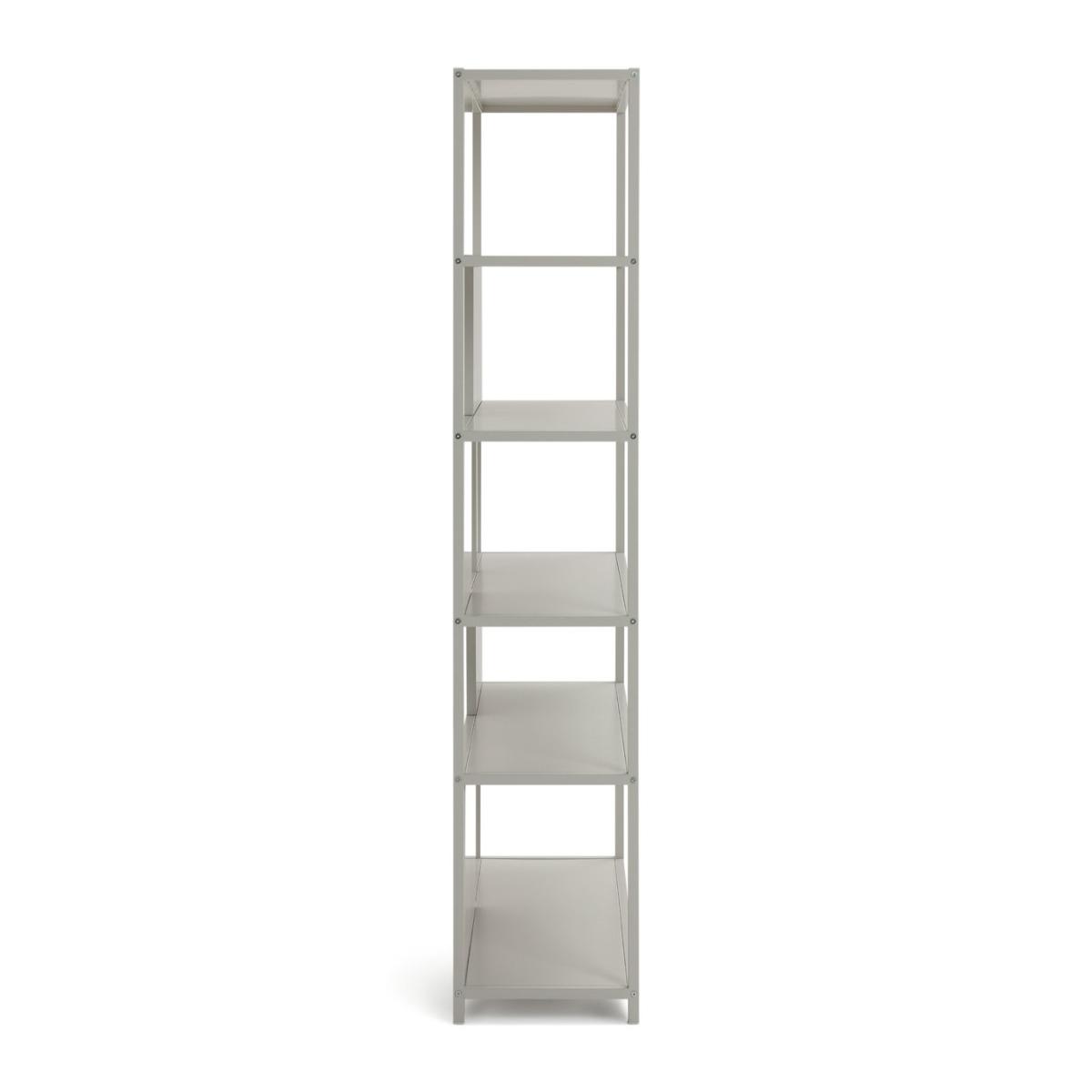 Open and inviting with a contemporary offset design, our Habitat exclusive Deon metal bookcase brings a minimalistic charm to a room. The grey metal frame has 5 large shelves for storing and displaying books, photos and other collectables. Metal backboards add to the eye-catching style. It's modern industrial with a homely edge. A few faux plants dotted amongst the shelves will bring a naturally lush interest all year round. Part of the Deon collection. Made from steel with a painted finish. 5 fixed shelves. Packed flat - 2 people recommended. If this product is over 60cm high it must be securely attached to the wall to prevent overturning (fixings included). Dimensions: Size H180, W107, D35cm. Weight 36.2kg. Internal shelf space: H 38.5, W 103, D 31cm. Wall fixing recommended. Recommended maximum load per shelf: 20kg. Package dimensions: Package 1 dimensions: H17.5, W40, D187cm. Package 1 weight: 39.17kg. General Information: We are excited to be welcoming some of our favourite HOME products into the Habitat range. Your product may arrive in Habitat or HOME packaging.