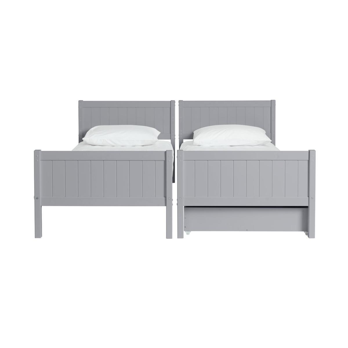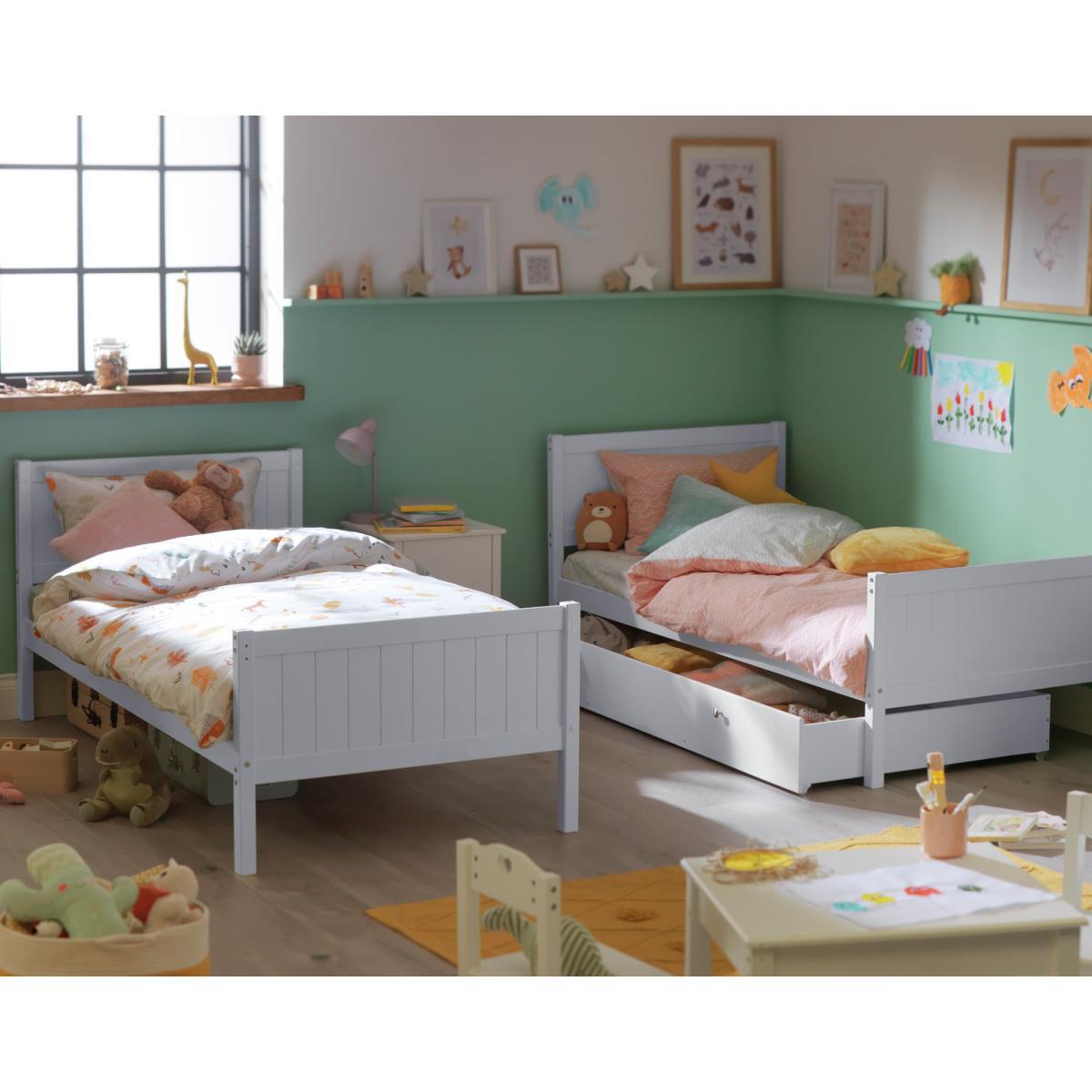 Solid pine and designed to last, this detachable bunk bed with storage is a sturdy and versatile choice your kids will love. It separates into 2 single beds, and the full-width drawer with its durable castors makes brilliant use of that underbed space! In a simple and timeless style, this painted version has reversible head and footboards, so you can choose either a panelled effect or smooth. As singles, the ground clearance is identical on both beds so they'll be the same height side by side.