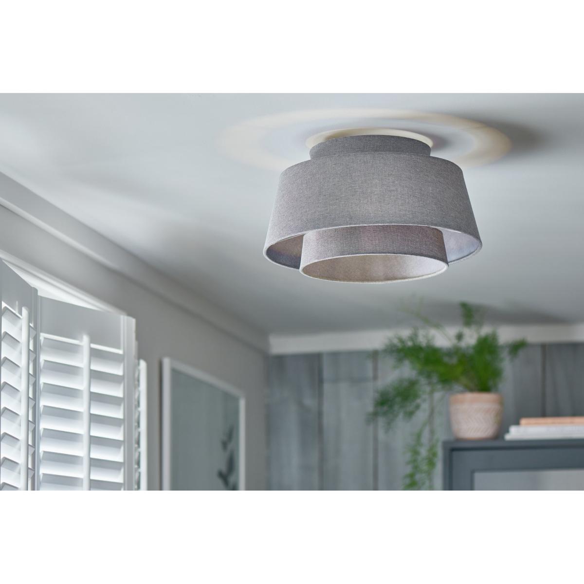 Texture and structure go hand in hand. The Dione textured ceiling light features a dramatic 2-tiered design encased in luxurious linen. Make a subtle statement in your living room, hallway or bedroom. It's cool, contemporary and timeless.