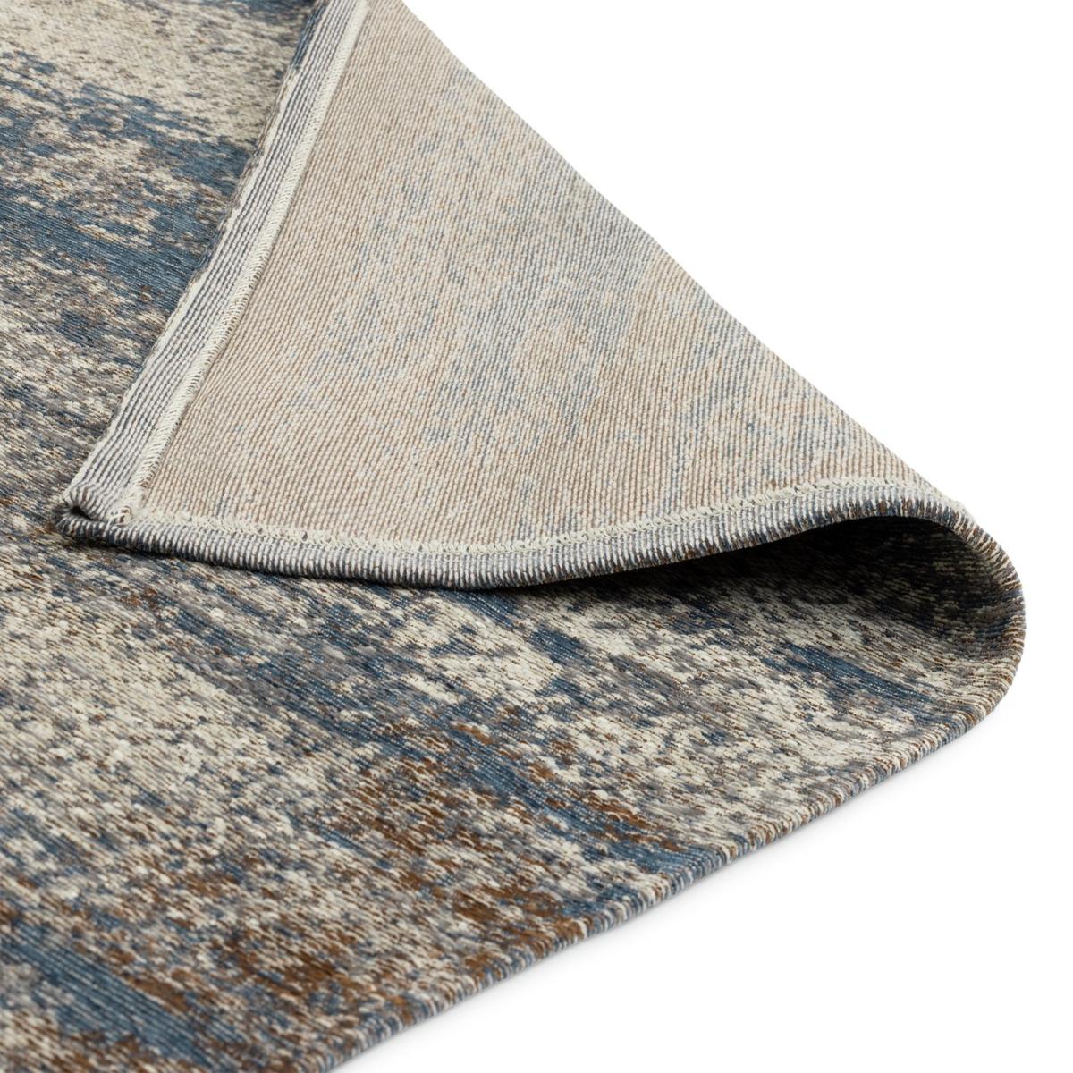 A contemporary rug with a distinctive distressed design. Soothing muted colours form an abstract pattern that's subtly soothing. Lightweight and easy to move, it has a woven, non-slip backing. Made in Turkey. Easy to keep clean its washing machine friendly. It is recommended to take it to a professional laundry service due to the size of the rug, or ensure the laundering appliance is large enough for the rug. Made in Turkey. 78% polyester, 13% regenerated cotton, and 9% viscose. Woven non-slip backing. 30C machine washable. Size L120, W170cm. Blue Abstract design. General Information: We are excited to be welcoming some of our favourite HOME products into the Habitat range. Your product may arrive in Habitat or HOME packaging.