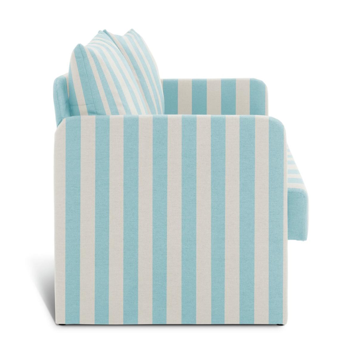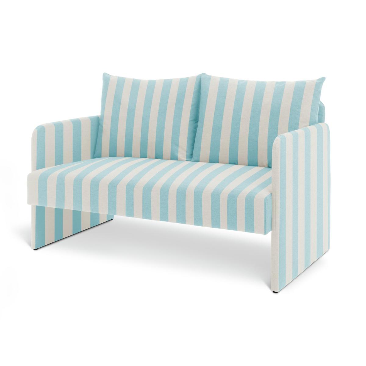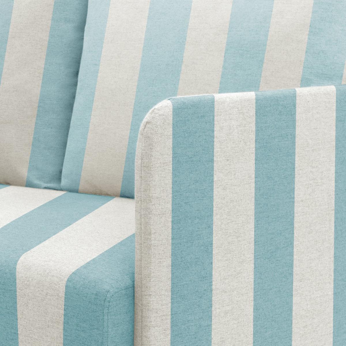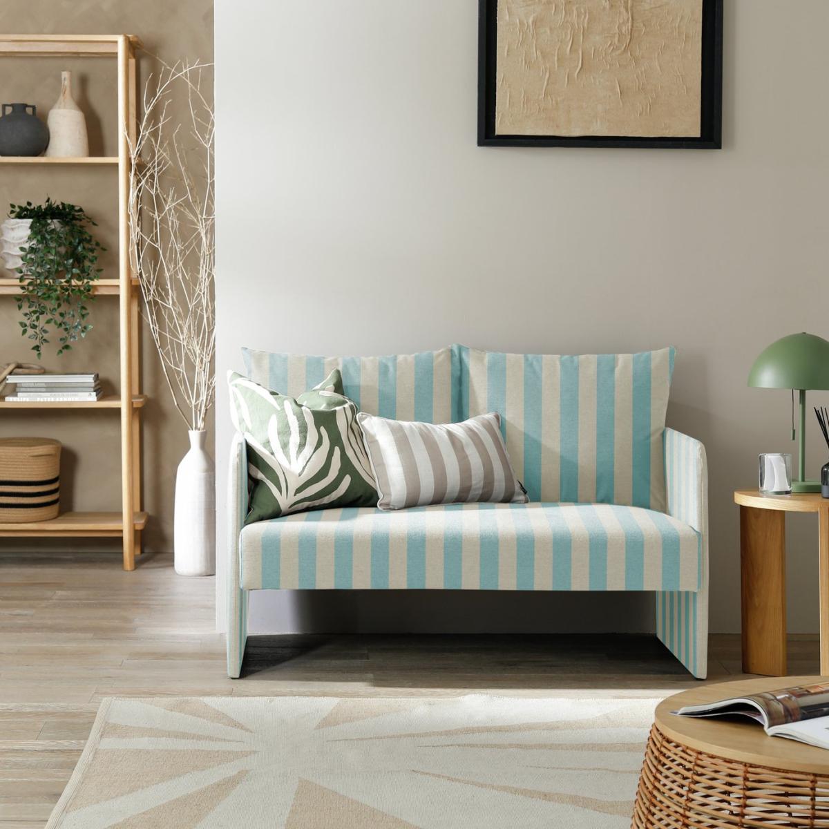 Keep it compact with this smart Dixon sofa in a box. Upholstered in a stripe flat weave, it's great for busy households. With foam-fibre wrapped seats and plump removable back pads, this 2-seater is big on cushion comfort. Plus, it comes neatly packaged in one box, making it even easier to set up. Part of the Dixon collection. Material: Made from 100% polyester. Metal feet - blue and white. Fixed seats with foam fibre wrap filling. Removable cushion(s) with fibre filling. Free fabric swatch available on this line. Dimensions: Size H80, W120, D70cm. Floor to seat height: 40cm. Depth of seat: 45cm. Height of seat back: 40cm. Width of seating area between arms: 115cm. Height of arm rest: 60cm. Weight: 23kg. Packaged dimensions: Package size H20, W120, D66cm. General information: FSC certified meaning the materials used for this product are responsibly sourced. Professional clean only. Plump cushions regularly to maintain shape. Self-assembly. Maximum individual user weight: 110kg. Manufacturer's 2 year guarantee.