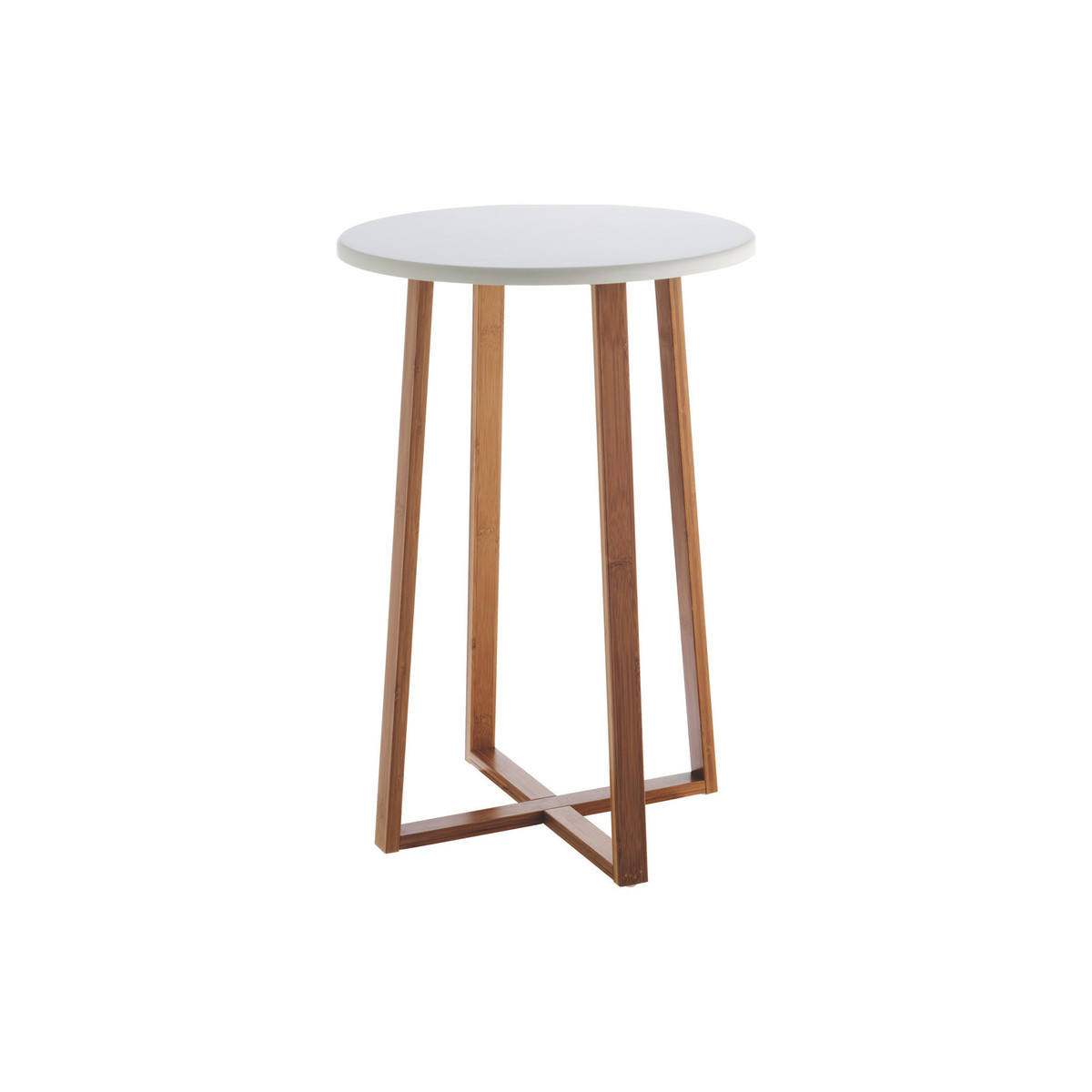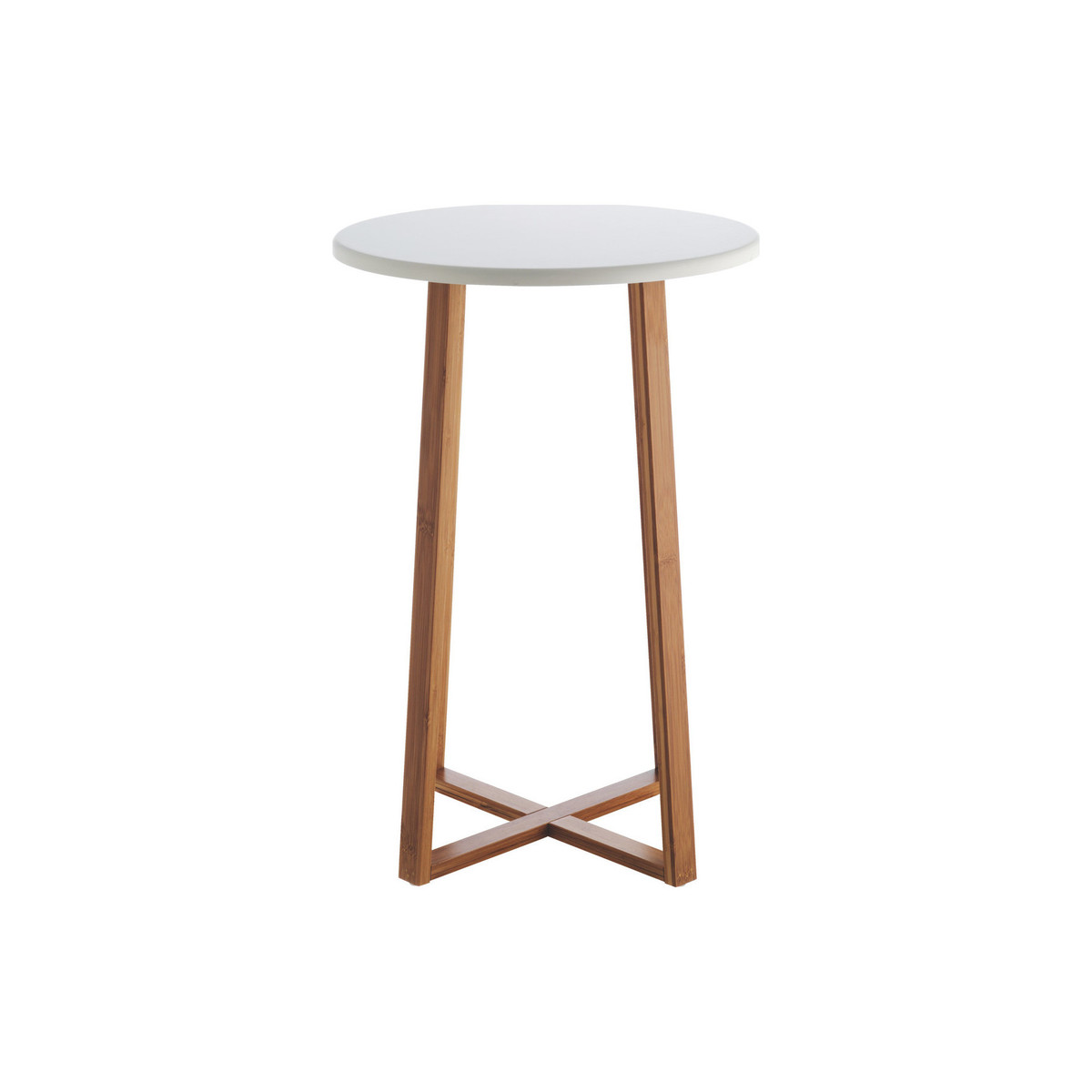 I love this tall side table because of its clean, minimalist design and the natural warmth it adds through the bamboo legs. It works particularly well in Scandi or modern interiors, where its simple form complements both neutral palettes and bolder colour schemes. Practical styling tips include using it as a bedside table with a small lamp and a couple of favourite books, or pairing it with indoor plants for a fresh, organic vibe. The white top makes it versatile, allowing it to blend seamlessly with various colour schemes and furniture styles, while the bamboo legs add a tactile, natural element to the space.