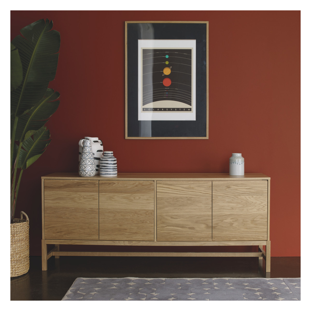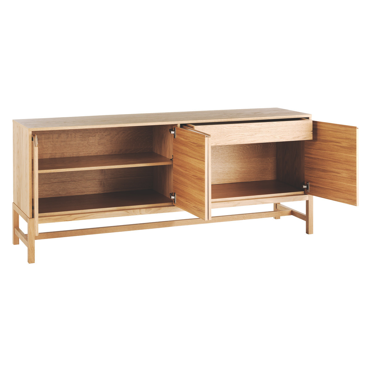 The Drio oak 4 door sideboard is a streamlined, contemporary design that provides generous storage, with 1 adjustable shelf and a concealed drawer.