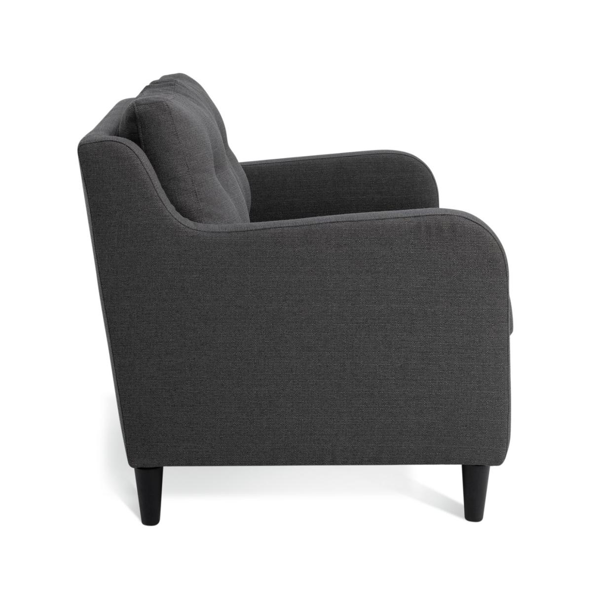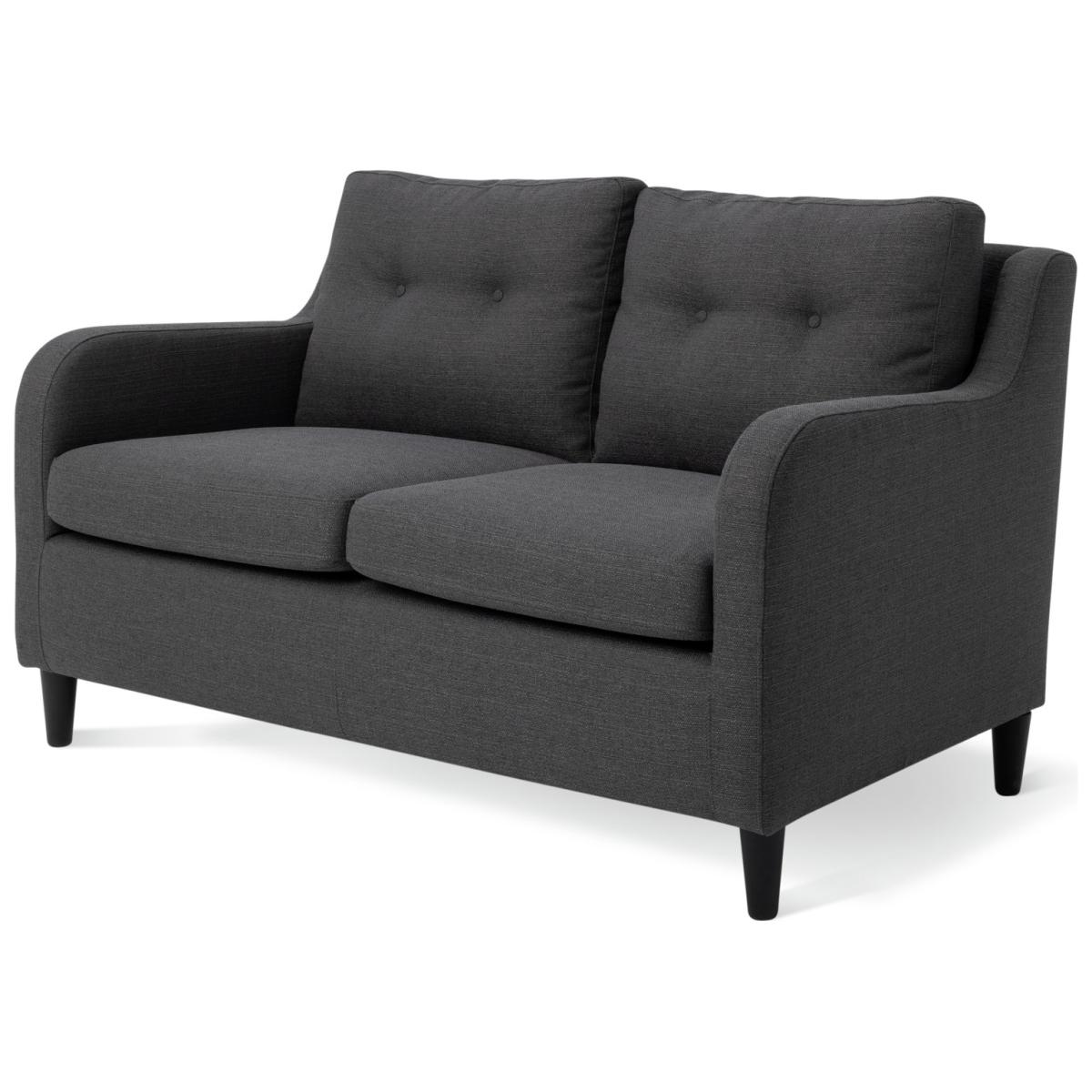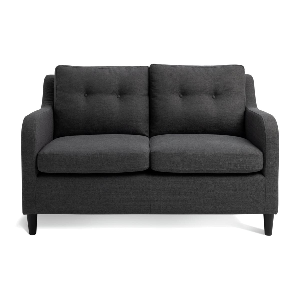 Enjoy a dash of Dylan's Danish-inspired retro design. Bring home some scandi heritage with our relaxing 2 seater sofa. Sink back into the comfy cushions and gently curved arm rests. Upholstered in rich charcoal fabric, with smart double button detailing. Elevated by black wooden feet for a modern silhouette. The cushions and seats are removable and easy to keep plumped up and in tip top shape. Part of the Dylan collection. Material: Made from 100% polyester. Wooden feet. Removable seats with foam fibre wrap filling. Removable cushion(s) with fibre filling. Dimensions: Size H84, W138, D90cm. Floor to seat height: 47cm. Depth of seat: 57cm. Height of seat back: 40cm. Width of seating area between arms: 120cm. Height of arm rest: 63cm. Weight 37.5kg. Professional clean only. Plump cushions regularly to maintain shape. Minimal assembly - just add feet. Maximum individual user weight 110kg. Packaged dimensions: Package size H68, W140, D92cm. FSC certified meaning the materials used for this product are responsibly sourced. General information: We are excited to be welcoming some of our favourite HOME products into the Habitat range. Your product may arrive in Habitat or HOME packaging. Manufacturer's 10 year frame guarantee.