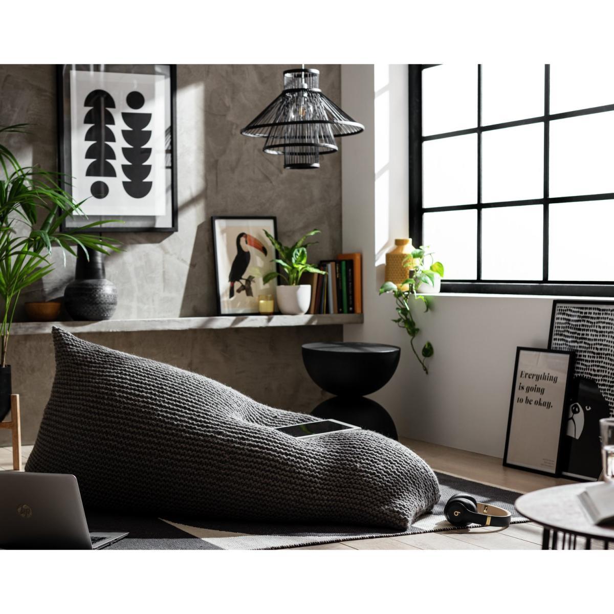 Splay on grey. Our knitted bean bag makes a comforting addition to your lounge. Woven in wool, it's naturally warm and snuggly all over. Great as an extra seat for guests, pick it up and plop it wherever you like. Sink in with a good book or take movie night to the next level. Now that's cosy.