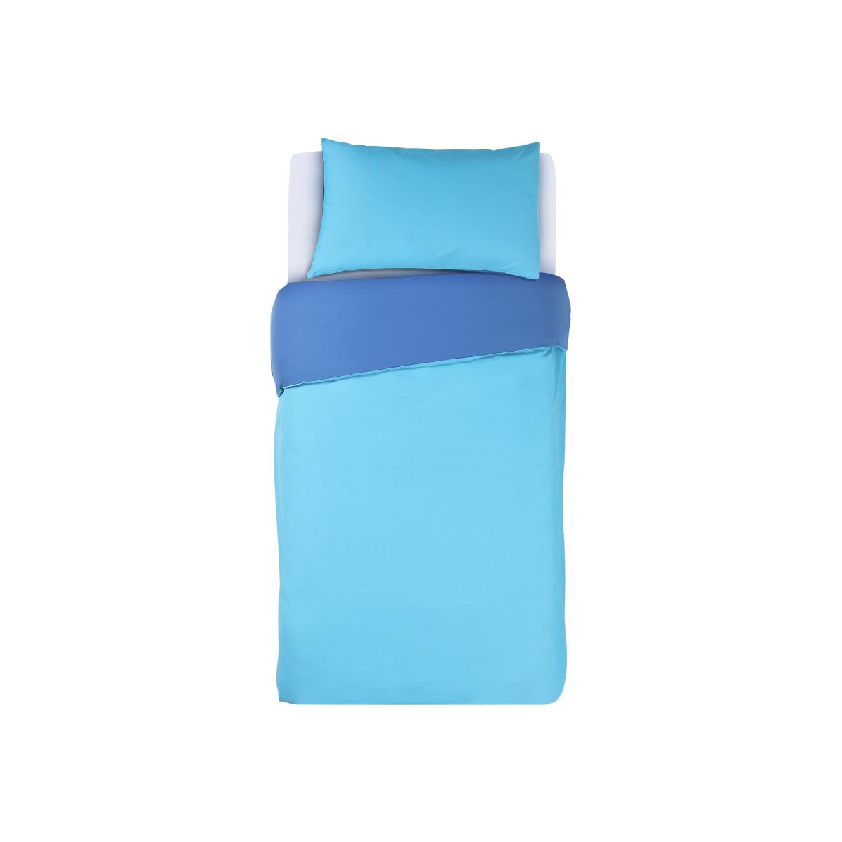 A great way to refresh your bedding, this Habitat single duvet cover set offers exceptional value for money. It comes in a vibrant shade of Crystal Blue on one side and an attractive Ink Blue on the reverse; giving you two great choices. Both bright shades will add an energetic burst of colour to your bedroom. This item carries the STANDARD 100 by OEKO-TEX logo, which means you can be certain that every component has been tested for harmful substances and is therefore harmless to human health. Finish: woven. 52% polyester , 48% cotton. 144 thread count. Set includes 1 duvet cover and 1 pillowcase. Bed size: single. Length 200cm, Width 135cm. Reversible. Buttons for fastening. Standard pillowcase (s). Pillow case length 75cm, Width 50cm. Machine washable at 40 C. Suitable for tumble drying.