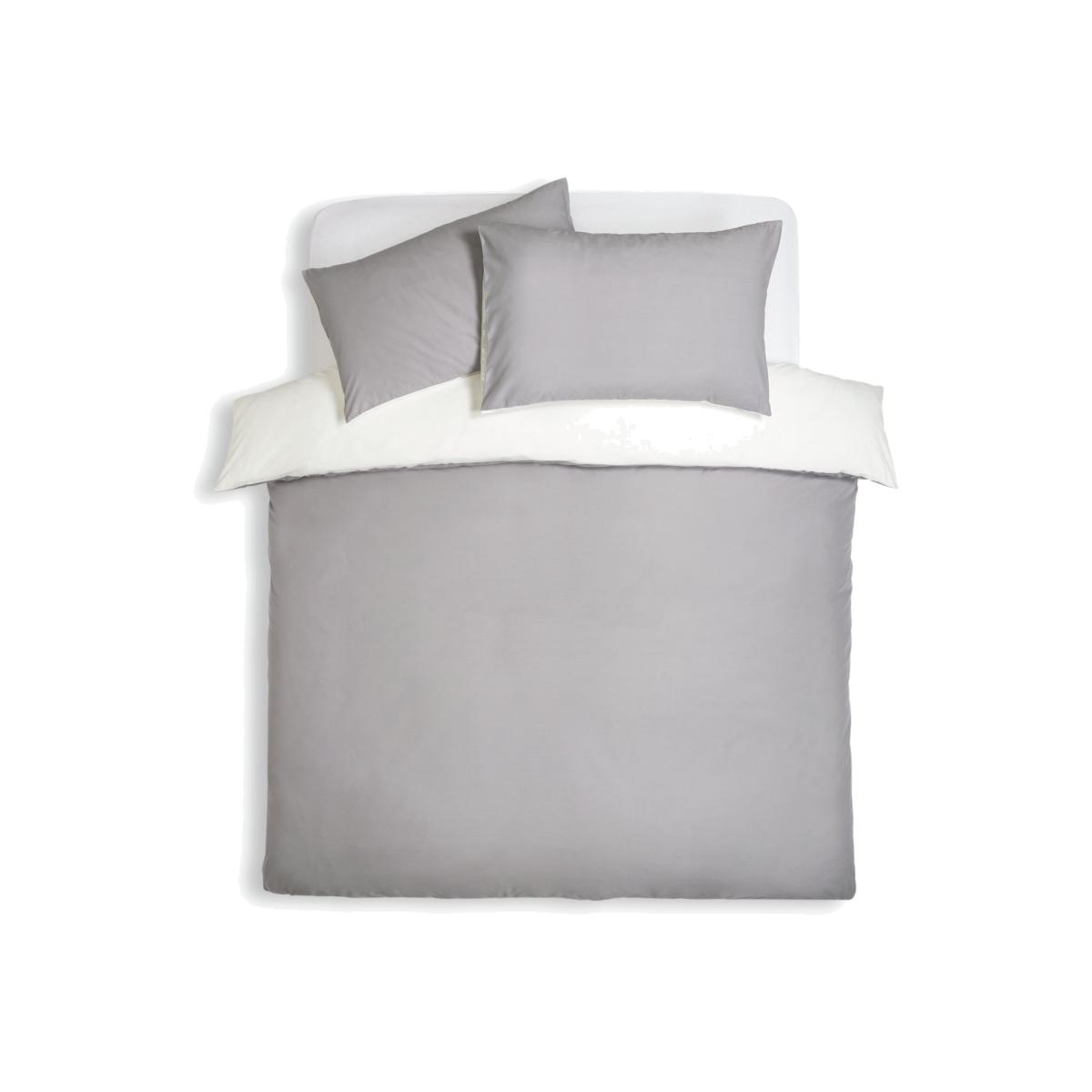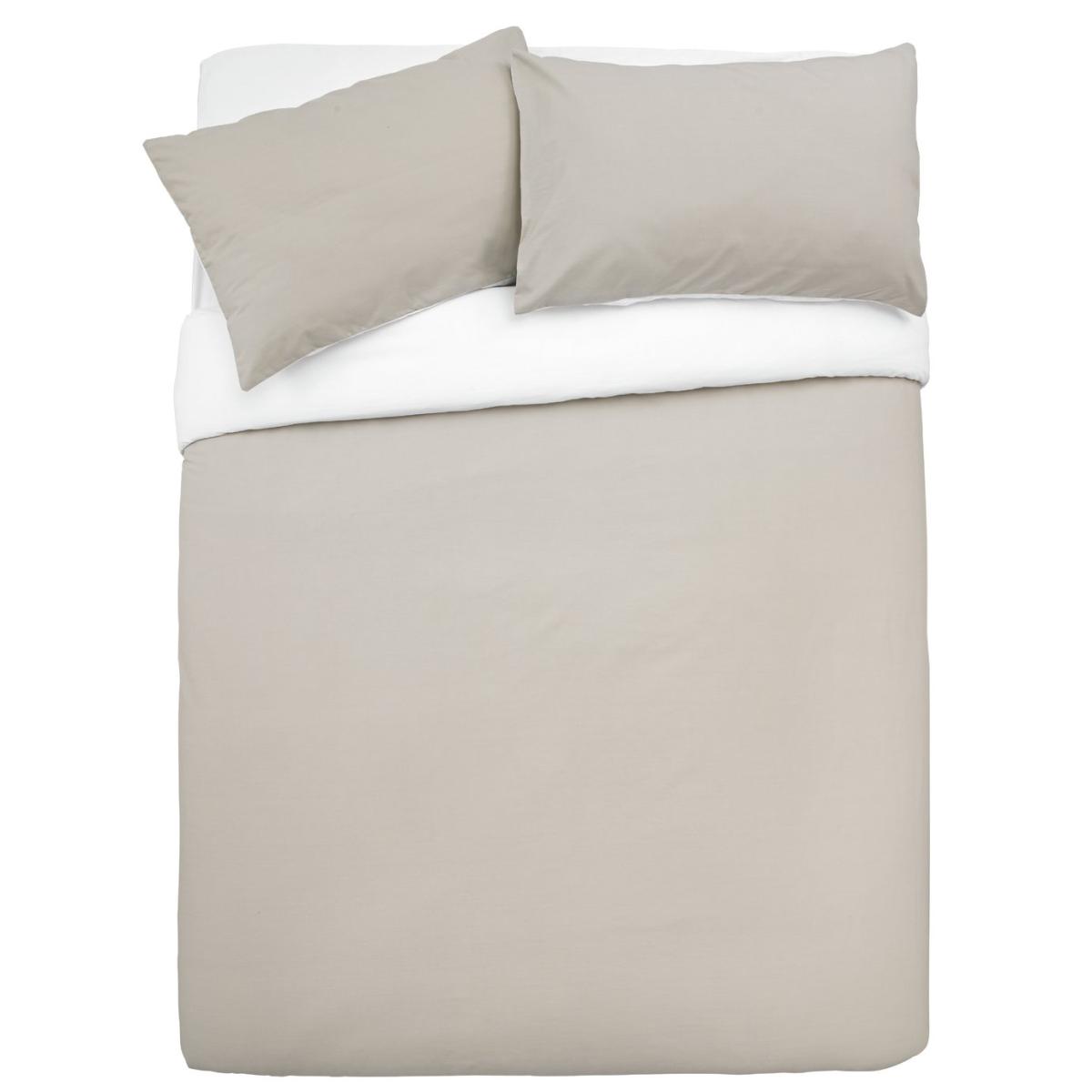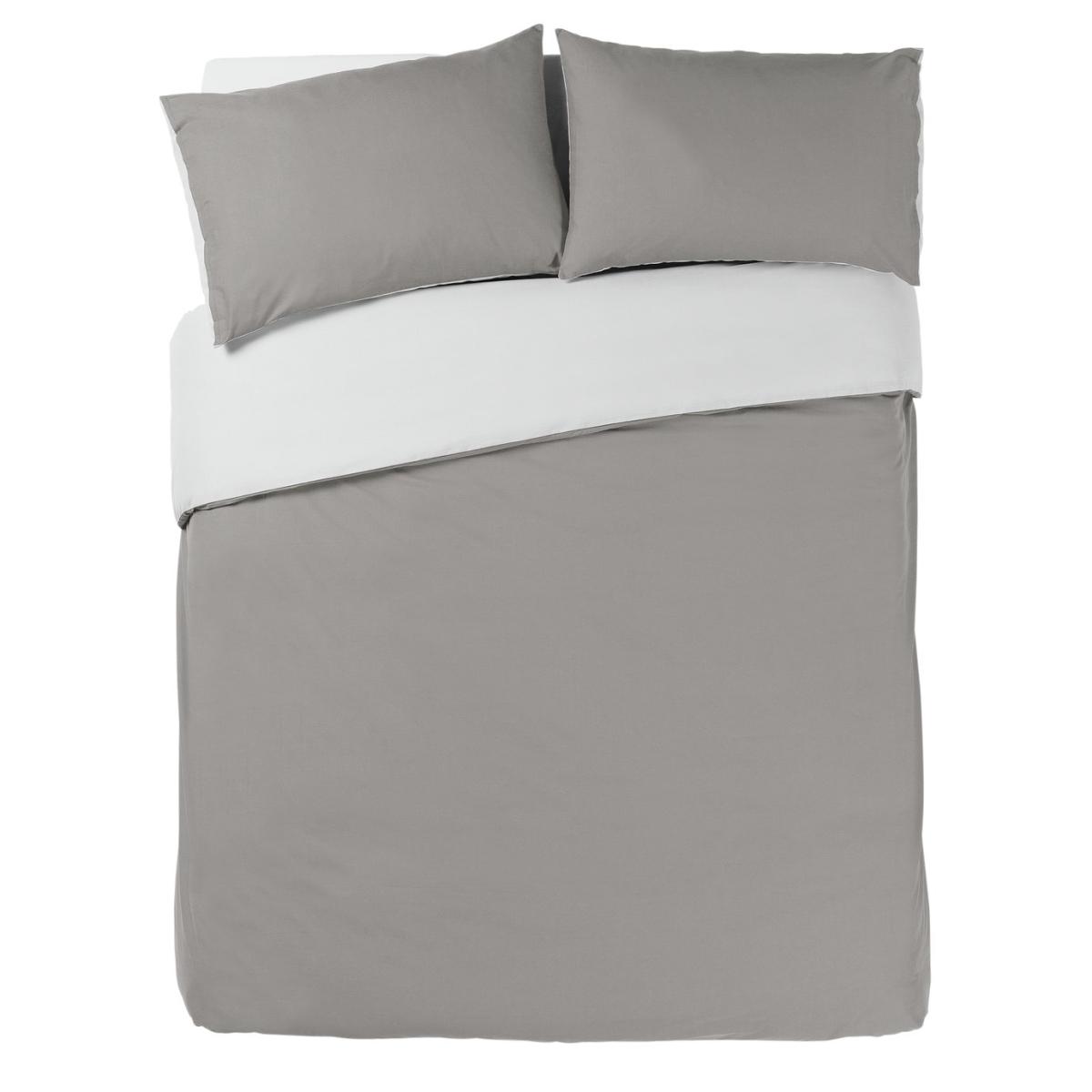 A great way to refresh your bedding, this Argos Home double duvet cover set offers exceptional value for money. It comes in a delightful shade of Flint Grey on one side and a clean, crisp Super White on the reverse, giving you two great choices. Its plain, minimalist design provides a calming effect for your bedroom; the perfect atmosphere for relaxing. This item carries the STANDARD 100 by OEKO-TEX logo, which means you can be certain that every component has been tested for harmful substances and is therefore harmless to human health. Finish: woven. 52% polyester , 48% cotton. 144 thread count. Set includes 1 duvet cover and 2 pillowcases. Bed size: double. Length 200cm, Width 200cm. Reversible. Buttons for fastening. Standard pillowcase (s). Pillow case length 75cm, Width 50cm. Machine washable at 40 C. Suitable for tumble drying.