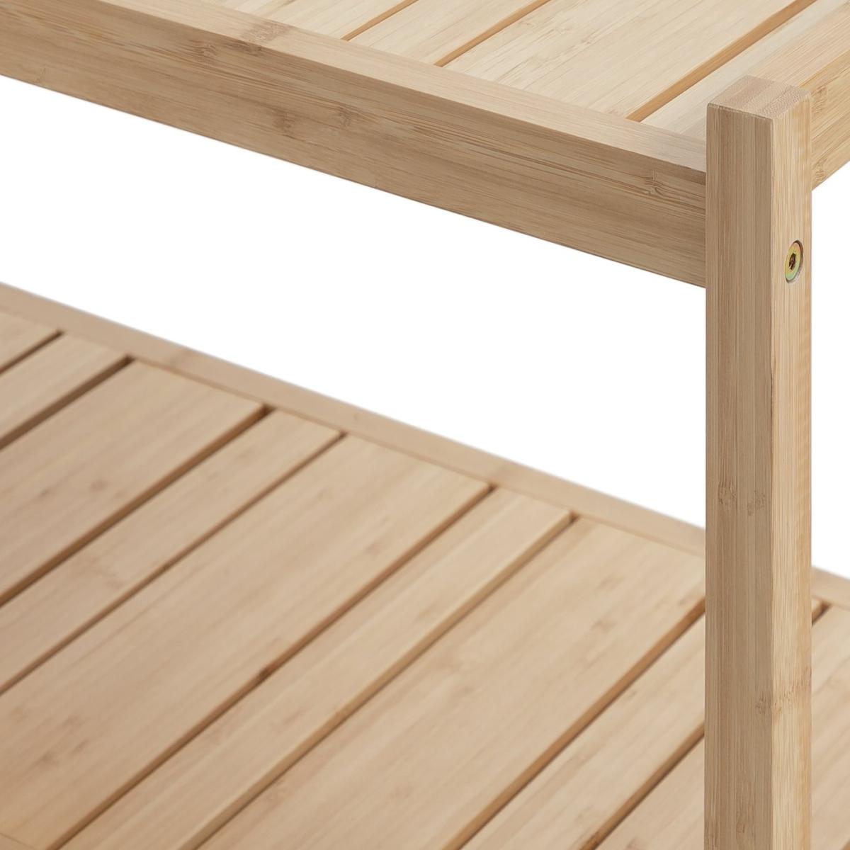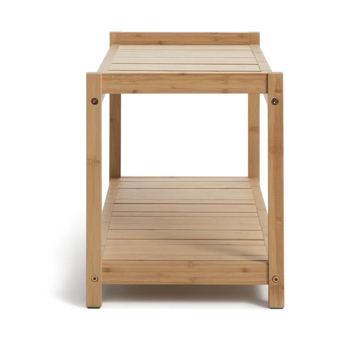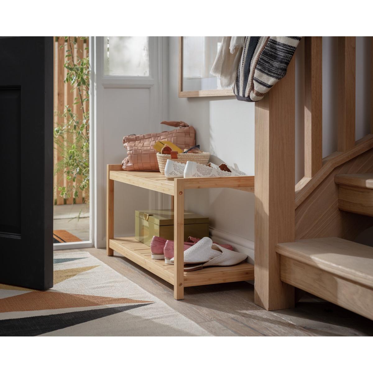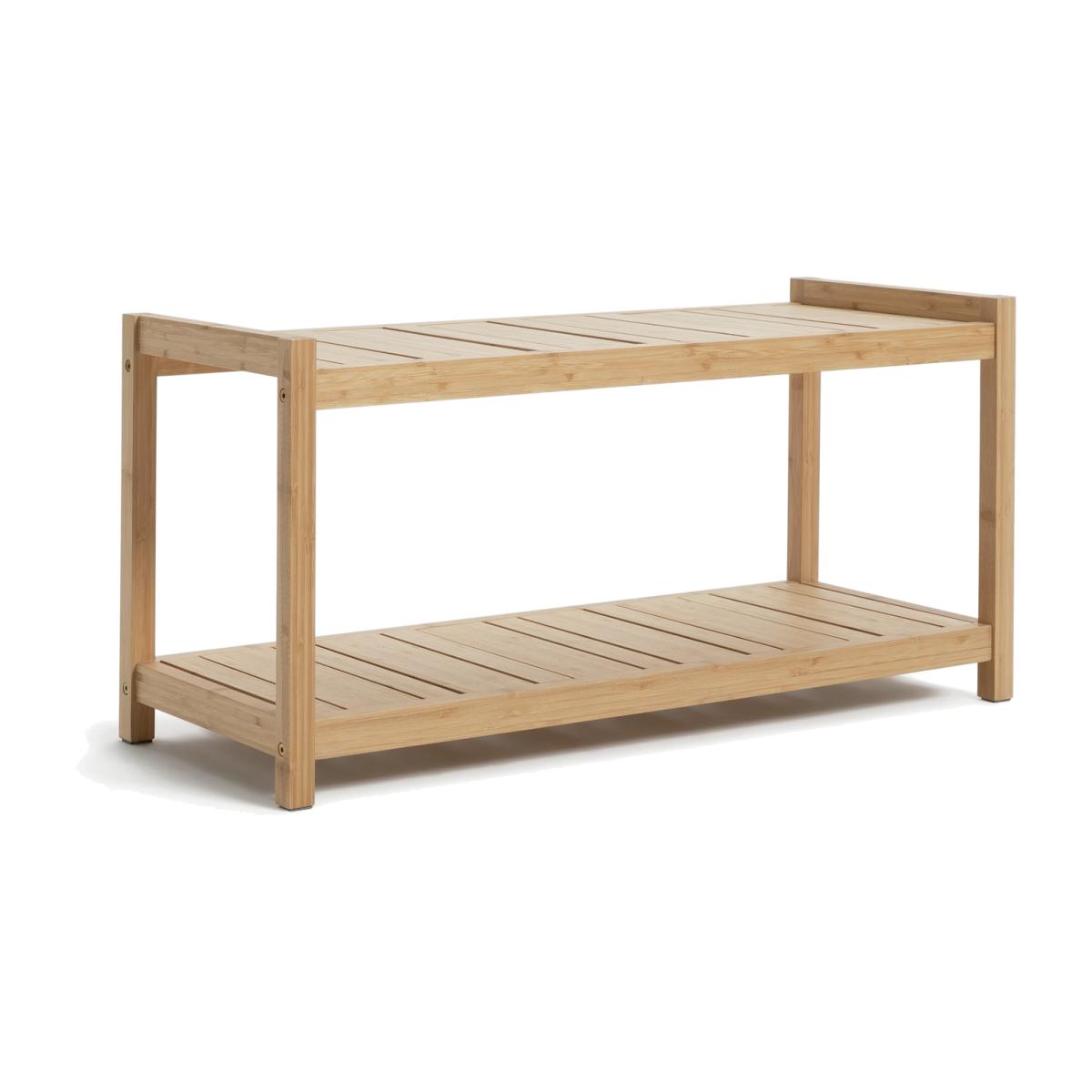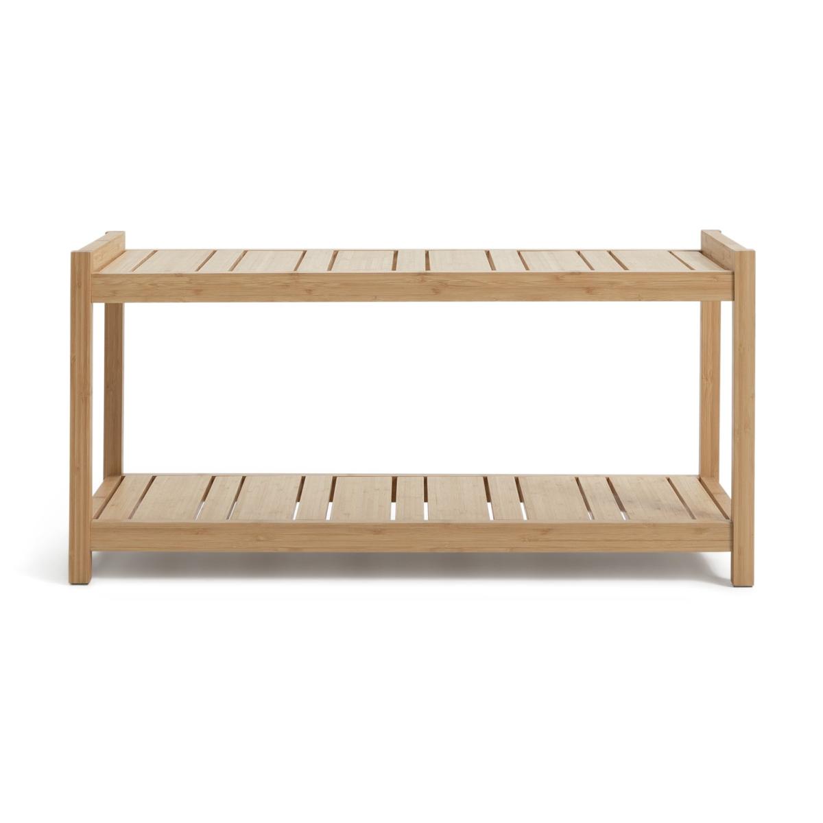 Sustainable storage. Tidy up and keep your shoes in order. Made from bamboo, our Eave shoe rack features 2 shelves that will hold at least 6 of your favourite pairs. A raw natural finish brings a rustic flavour to your home. Simply charming. In the mood to de-clutter? Check out our additional storage solutions. Part of the Eave collection. Made from bamboo. Stores an average of 6 pairs of shoes. Up to maximum shoe size 112. 2 fixed shelves. Size H38, W78.2, D31.5cm. Weight 4.4kg. FSC certified. Self-assembly. Package Dimensions: Package 1 dimensions: H12, W83, D37.5cm. Package 1 weight: 5.5kg.