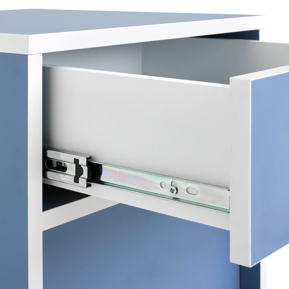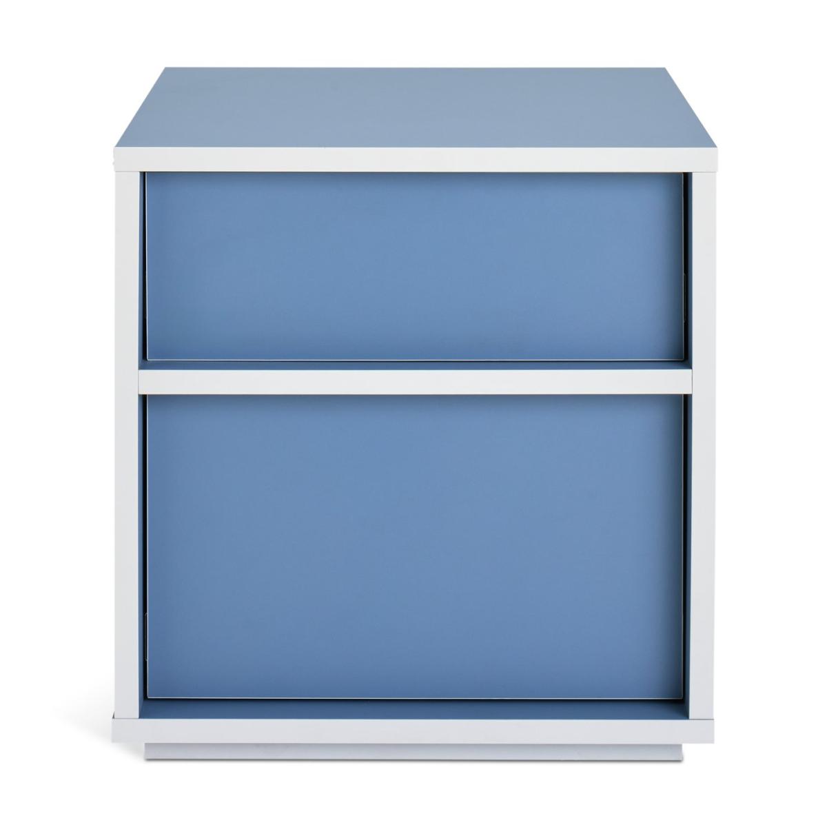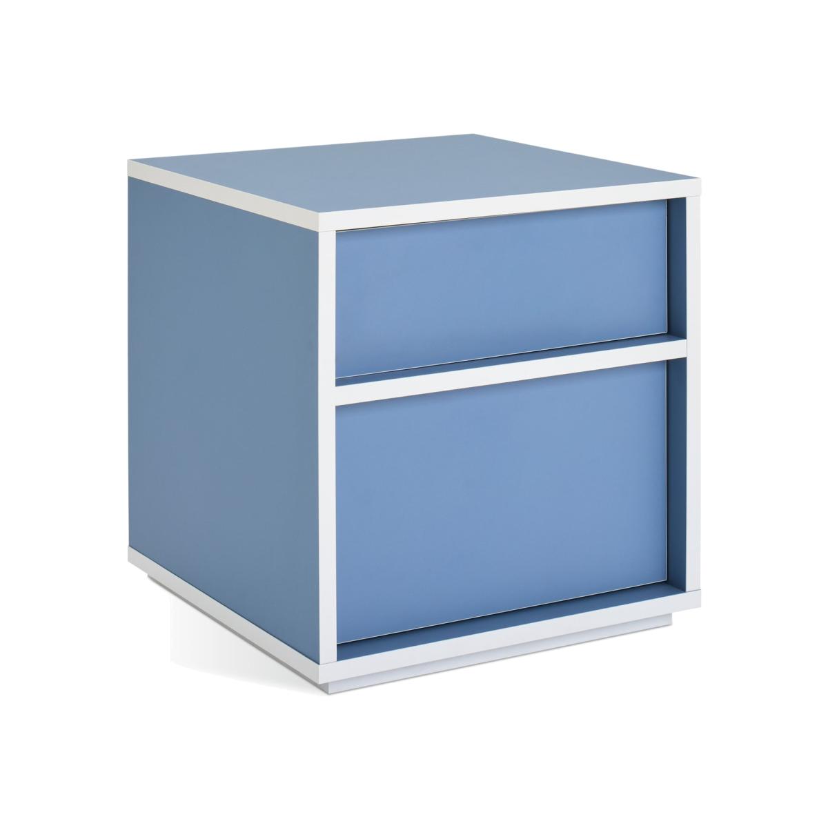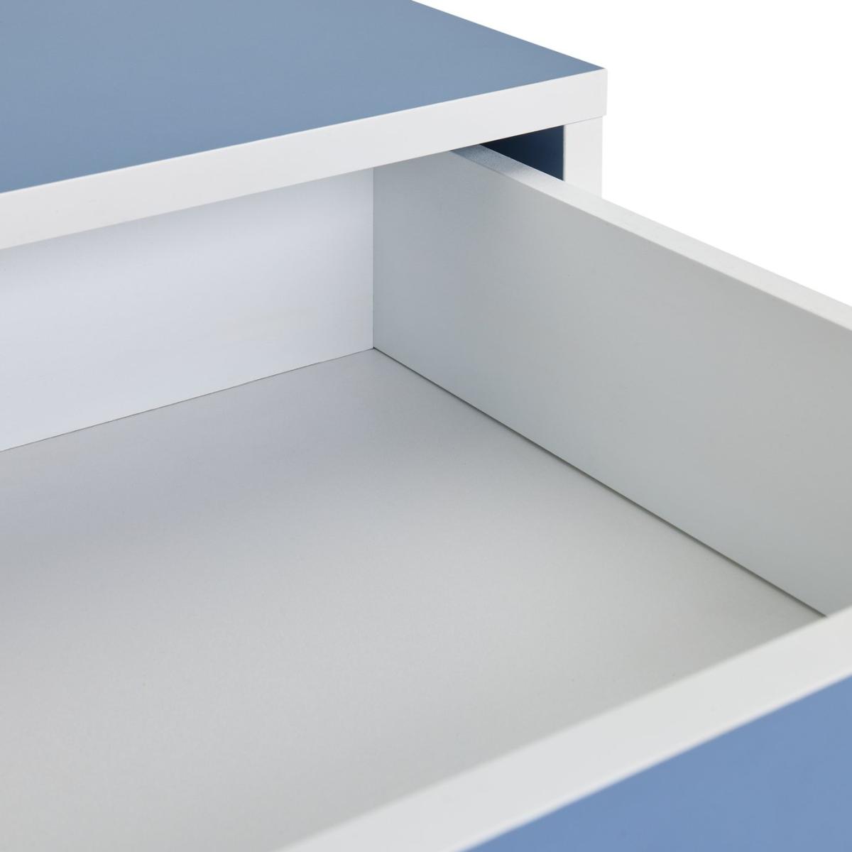 Scandi inspired in calming white and blue tones, Edale is a winner. With 2 drawers, this unit provides lots of room to tuck away essentials, leaving a clear, calm and restful environment at bedtime. The Inset drawers, push to open drawers and white contrasting edges add design details to a minimalist range. Part of the Edale collection. Made of particleboard. 2 drawers with metal runners. Self-assembly (includes wall fixings). If this product is over 60cm high it must be securely attached to the wall to prevent overturning. Dimensions: Size H41.3, W40, D40cm. Internal drawer H8.5, W31.6, D35cm. Weight 12.2kg. General information: FSC certified meaning the materials used for this product are responsibly sourced. Manufacturer's 2 year guarantee.