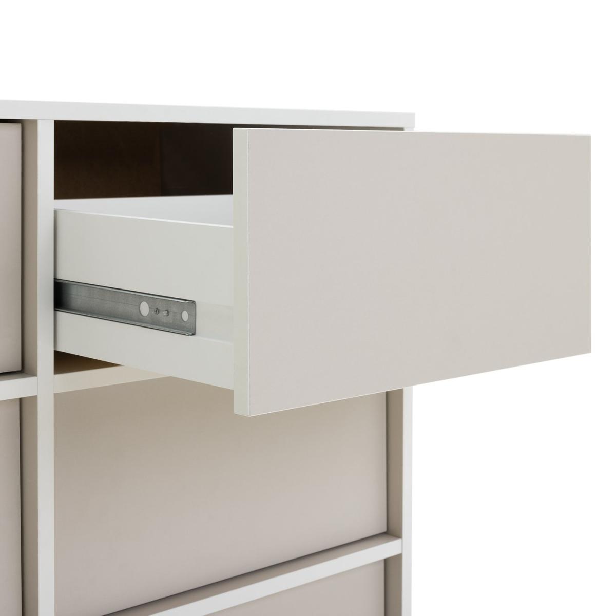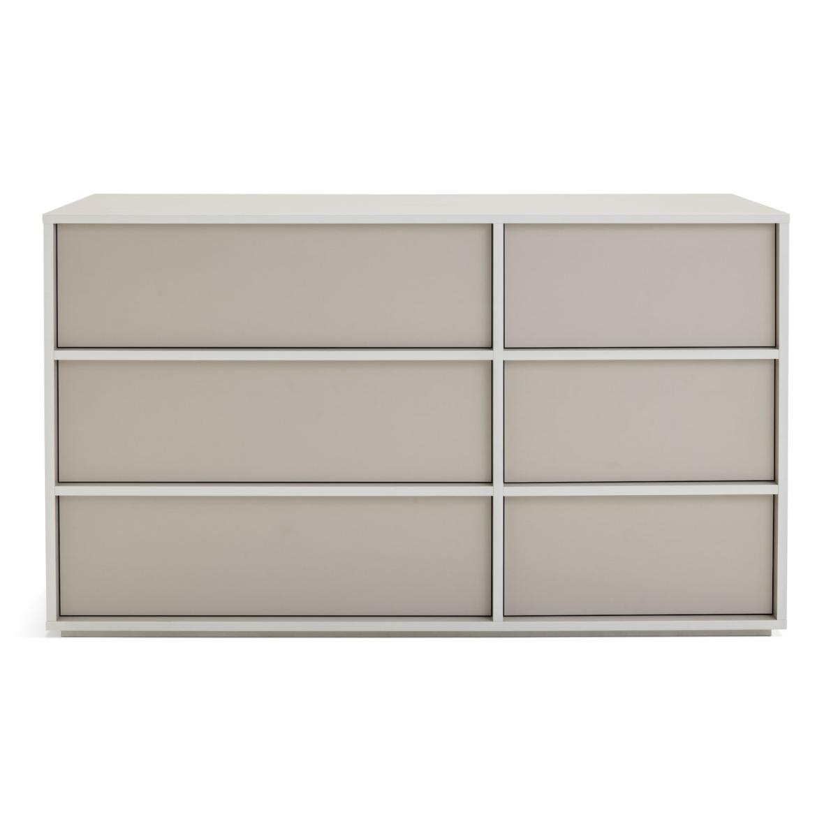 Scandi inspired to bring order to busy bedrooms, Edale is a winner. In calming white and putty tones with 6 deep drawers, it will swallow up toys and daily clutter post play, leaving a clear, calm and restful environment. Part of the Edale collection. Made of particleboard and particleboard. 6 drawers with metal runners. Self-assembly - 1 person recommended (includes wall fixings). If this product is over 60cm high it must be securely attached to the wall to prevent overturning. Dimensions: Size H80.5, W112, D42.2cm. Internal drawer H12.5, W39.4, D35cm. Large internal drawer H12.5, W65.5, D35cm. Weight 47kg. Package Dimensions: Package 1 dimensions: H13.3, W81.3, D49.3cm. Package 1 weight: 21.5kg. Package 2 dimensions: H10.5, W129.3, D43.2cm. Package 2 weight: 27.5kg. General information: FSC certified meaning the materials used for this product are responsibly sourced. Manufacturer's 2 year guarantee.