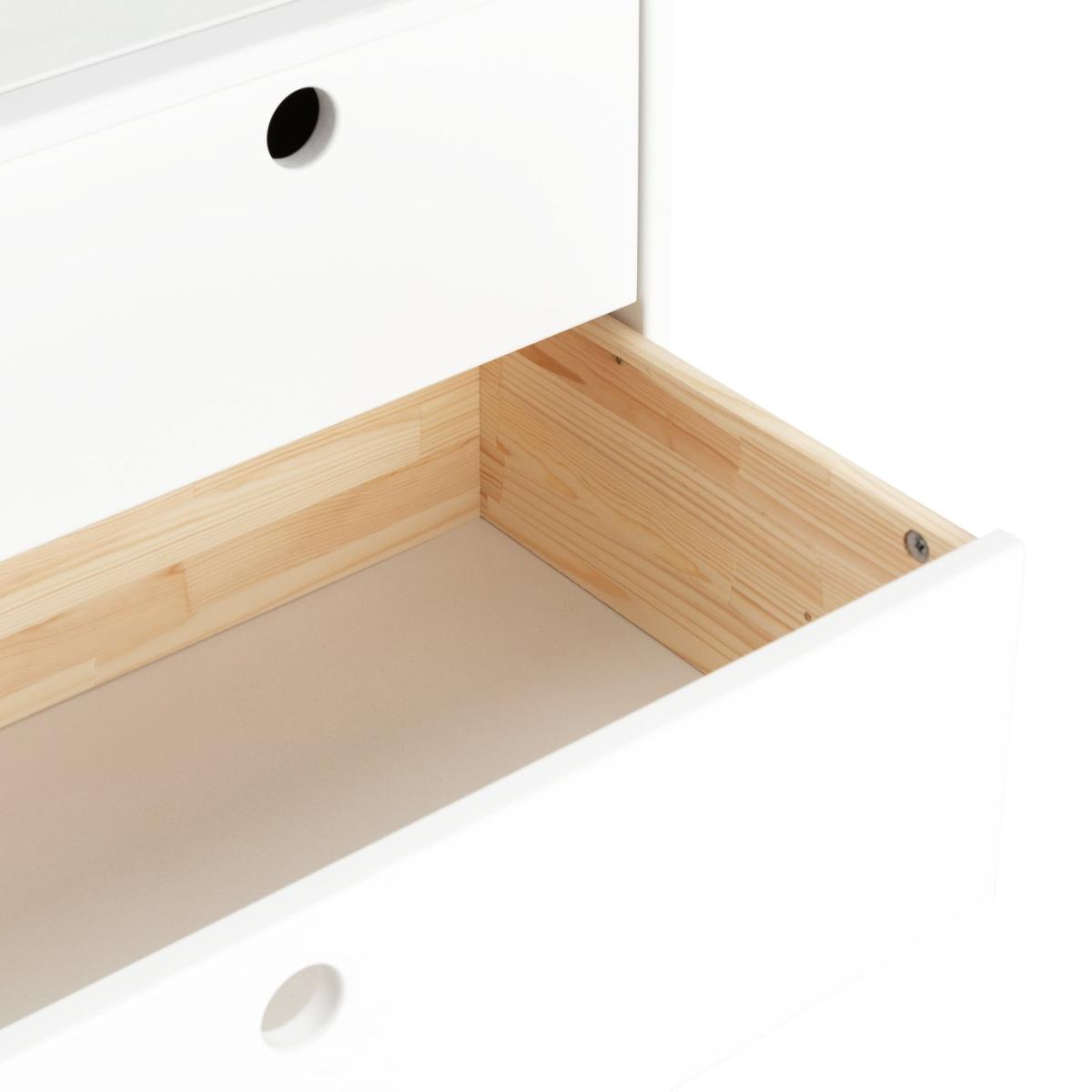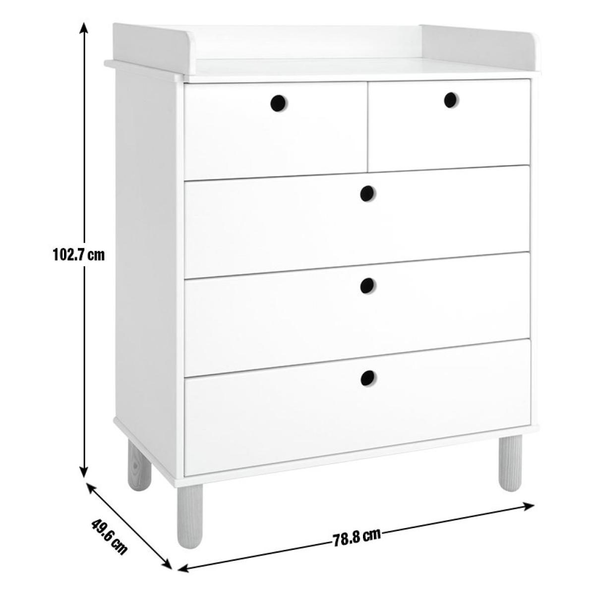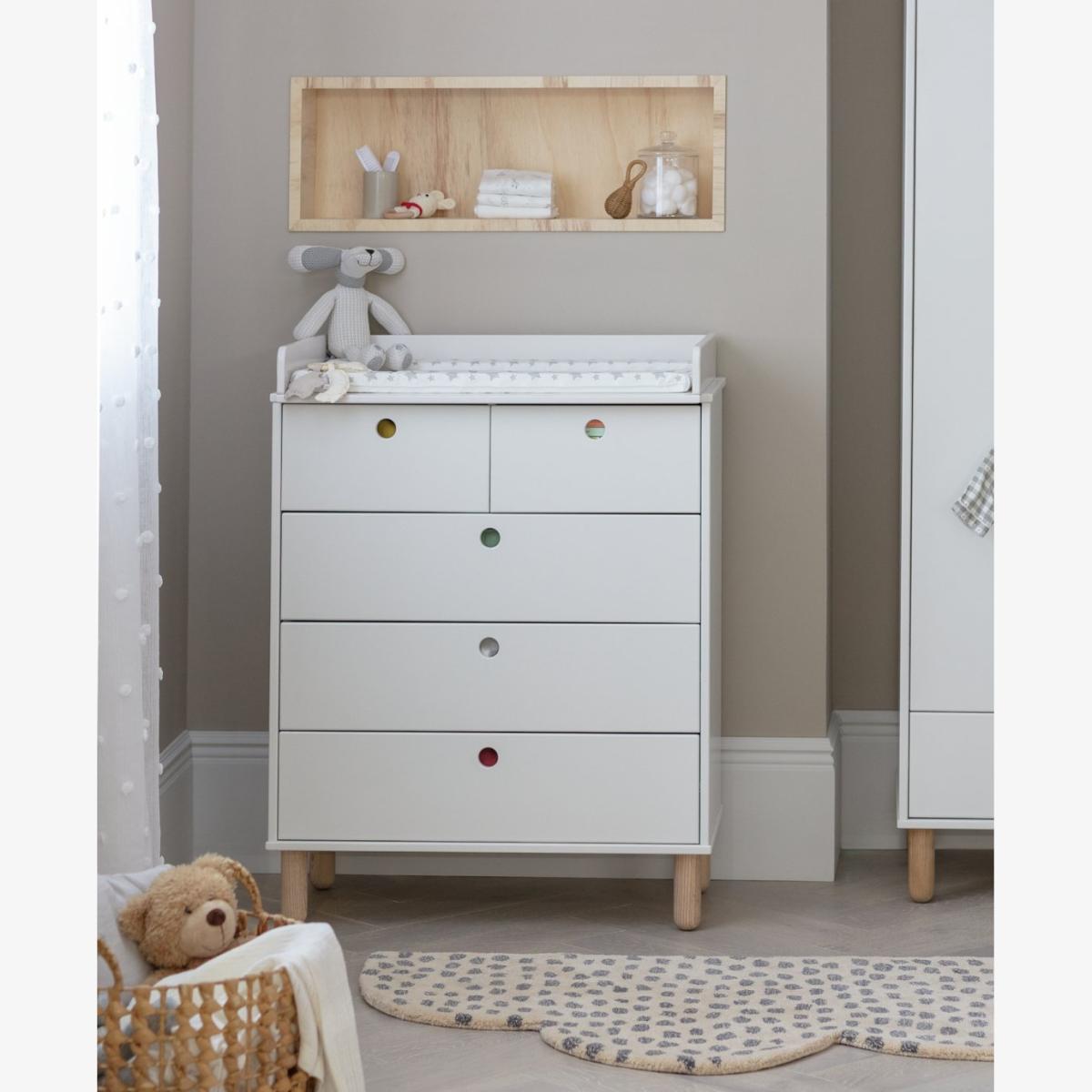 Our Eden chest of drawers is a must have for new parents. Made in solid pine with a built-in changing area on top, that lifts off when baby grows out of it. Leaving you with a fabulous chest of 3 large and 2 half drawers, all deep and spacious on easy glide metal runners. Plenty of room for wipes and nappies and later toddlers clothes and toys. Cut out handles make it easy for young ones to use as they grow. Tested to the latest safety regulations, they comply with British and European safety standards. A good all rounder for the nursery. Part of the Eden collection. Made of solid wood and pine. Additional handles not included. 5 drawers with metal runners. Packed flat - 1 person recommended (includes wall fixings). If this product is over 60cm high it must be securely attached to the wall to prevent overturning. Dimensions: Size H102.7, W78.8, D49.6cm. Internal drawer H15.3, W32.5, D33.6cm. Large internal drawer H15.3, W71.6, D33.6cm. Weight 37.9kg. Package Dimensions: Package 1 dimensions: H20.8, W41.4, D87.7,. Package 1 weight: 38.9kg. General information: We are excited to be welcoming some of our favourite HOME products into the Habitat range. Your product may arrive in Habitat or HOME packaging. Manufacturer's 2 year guarantee.