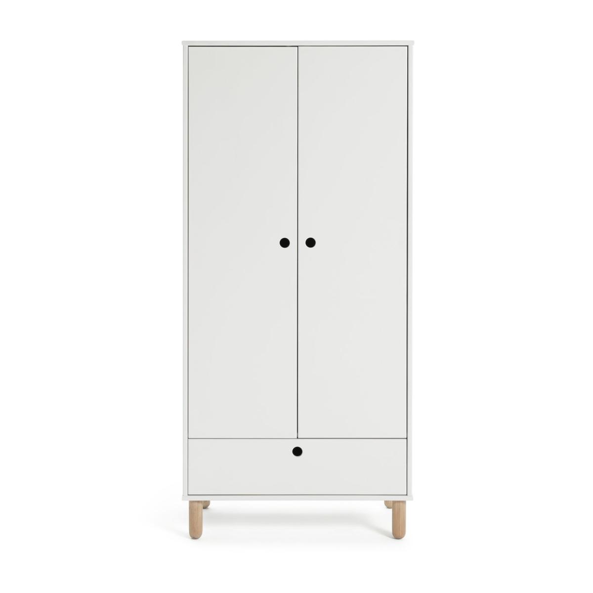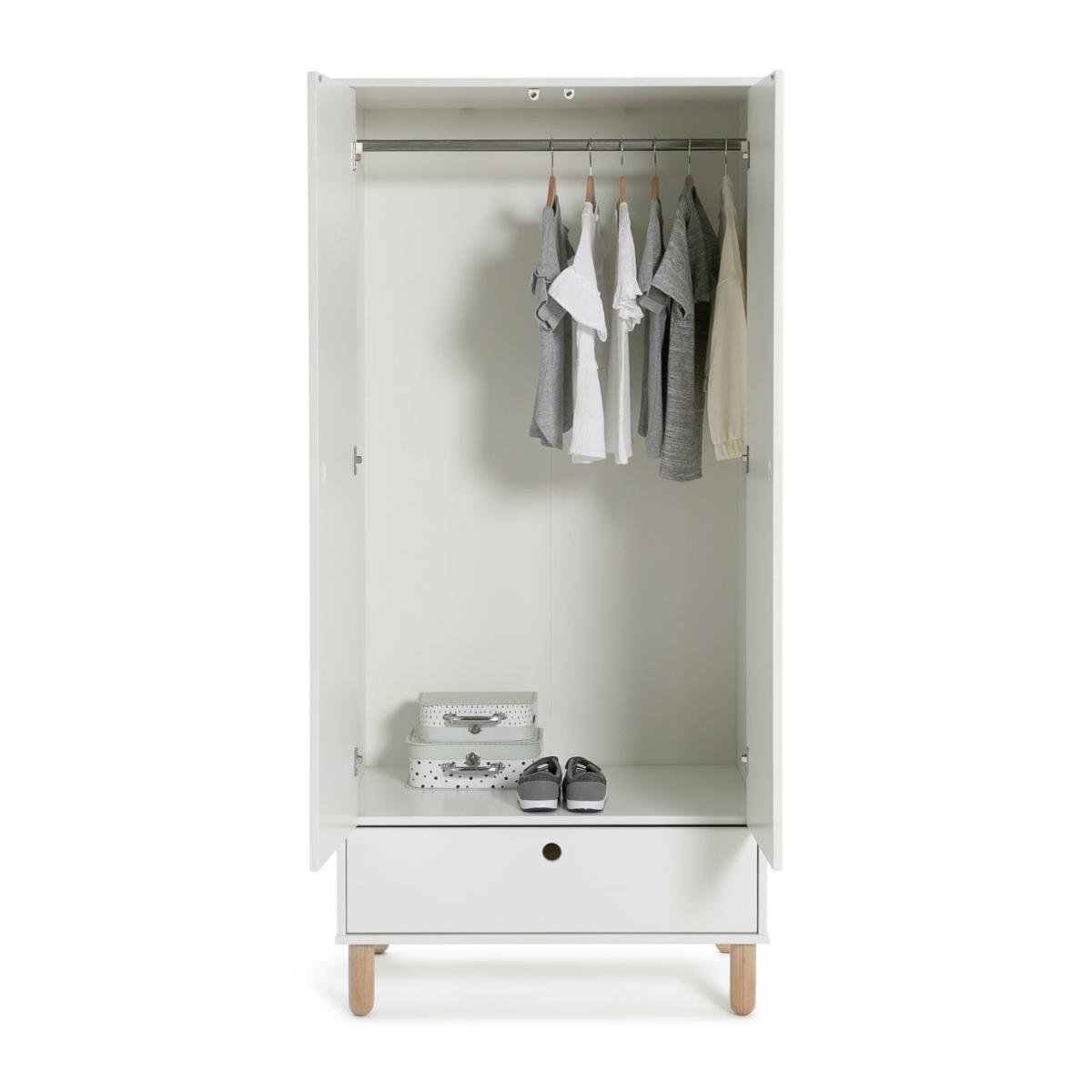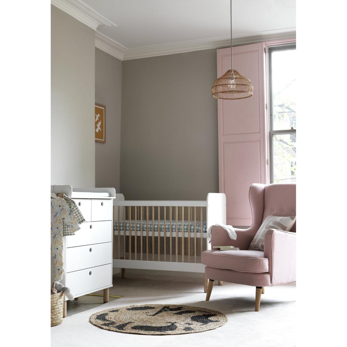 Our Eden nursery furniture set is a must have for new parents. A cot, wardrobe, changing table and storage chest. The changing top lifts off once your baby grows, leaving a fab 5-drawer chest with plenty of storage. While the airy cot is suitable from birth and offers adjustable mattress levels. High to keep your newborn in easy reach. Low as baby learns to sit and stand. A clever set that you can update with the growth of your baby. Cut out handles make the drawers and wardrobe easy for young fingers to use. Made in solid pine with ash wood detail and finished in fresh white. Part of the Eden collection. Wardrobe: Size H170, W78.8, D53cm. Internal hanging space H142.8, W74.1, D51cm. 1 fixed hanging rail. Rail holds up to 15kg. Wardrobe has 2 doors and 1 drawer. Packed flat - requires 2 people (wall fixings included). Weight 56kg. Chest of drawers: Size H102.7, W78.8, D49.6cm. Internal drawer size H15.3, W32.5, D33.6cm. Packed flat - requires 1 person (wall fixings included). Weight 37.9kg. Bed: Cot bed. Size H98.2, W66.2, L123.3cm. Mattress not included. Weight 26.9kg. General information: Made from MDF and pine. If this product is over 60cm high it must be securely attached to the wall to prevent overturning. Additional handles not included. We are excited to be welcoming some of our favourite HOME products into the Habitat range. Your product may arrive in Habitat or HOME packaging. Manufacturer's 1 year guarantee.