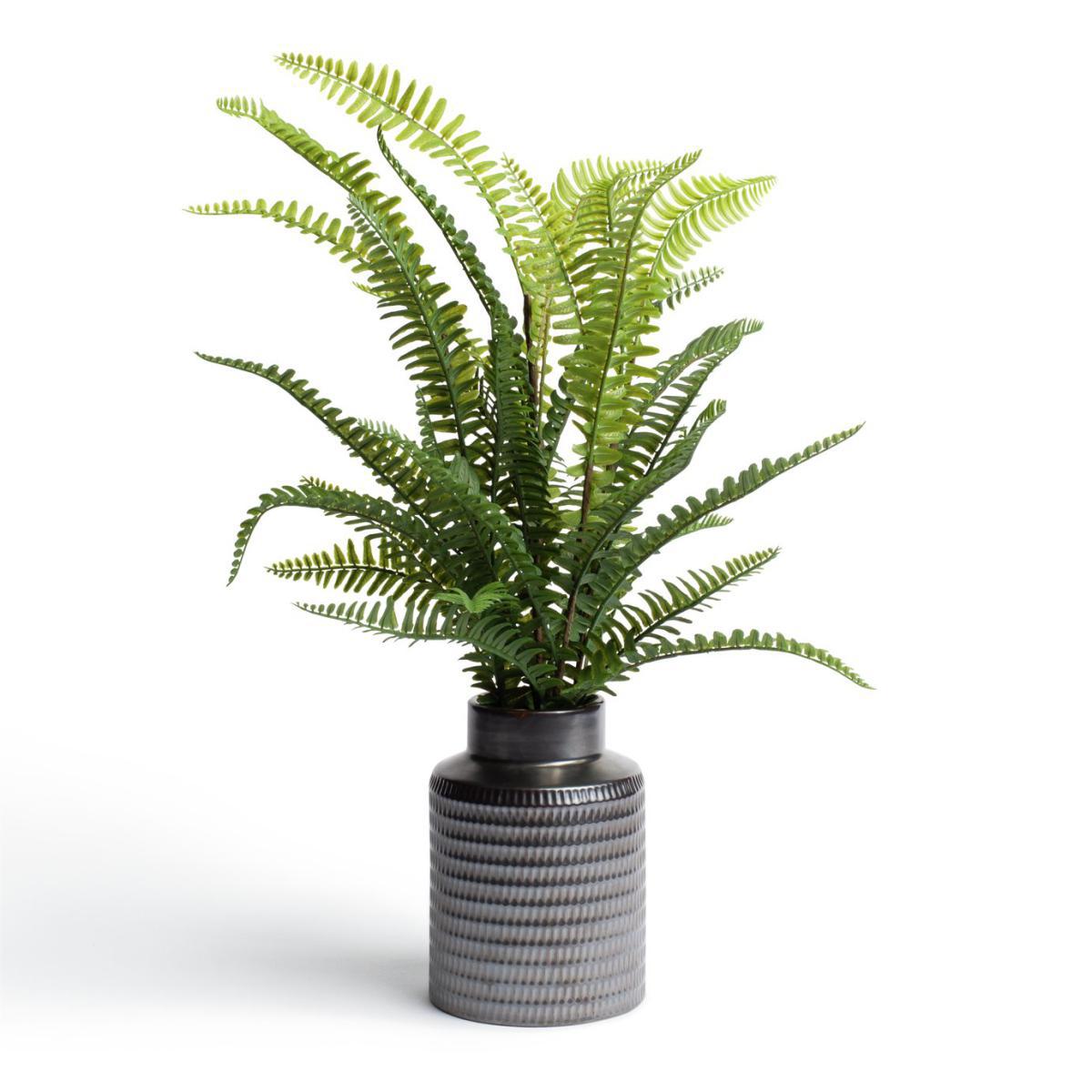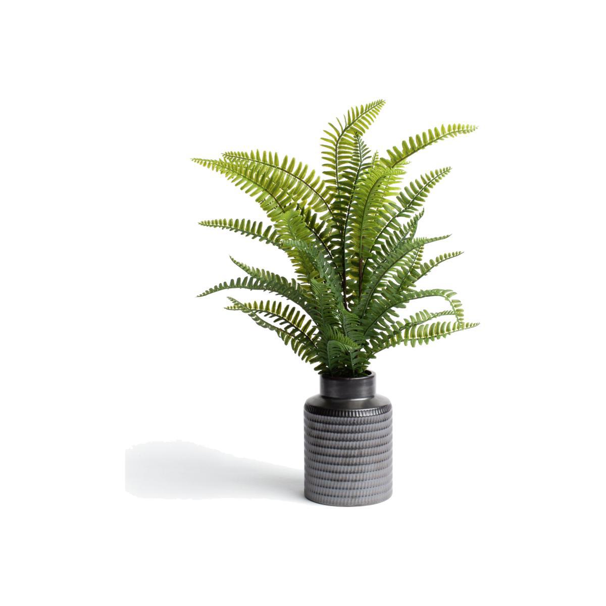 Is this the definition of everlasting love? Our remarkably convincing botanical fern. You buy it once, you keep it forever. Colour palettes can change with the season. But your big beautiful faux fern remains as naturally luscious as the day you brought it home. And no watering, no feeding, no hassle. It comes in its own handsome slate grey ribbed ceramic pot. Move it around to match your decor. Bring a dark corner to life. It's happy to oblige. You don't need a hot house, cool is cool. It's even happy kept on your patio. That's love for you.